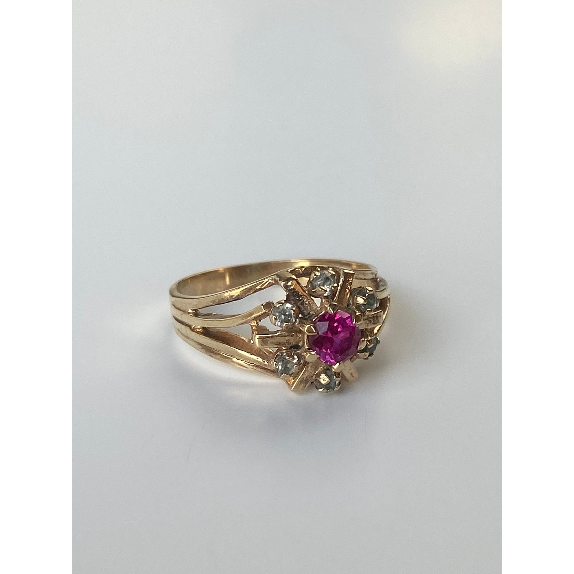 Vintage Solid 10k Yellow Gold Pink Spinel Clear Quartz Halo Ring - Size 5.75