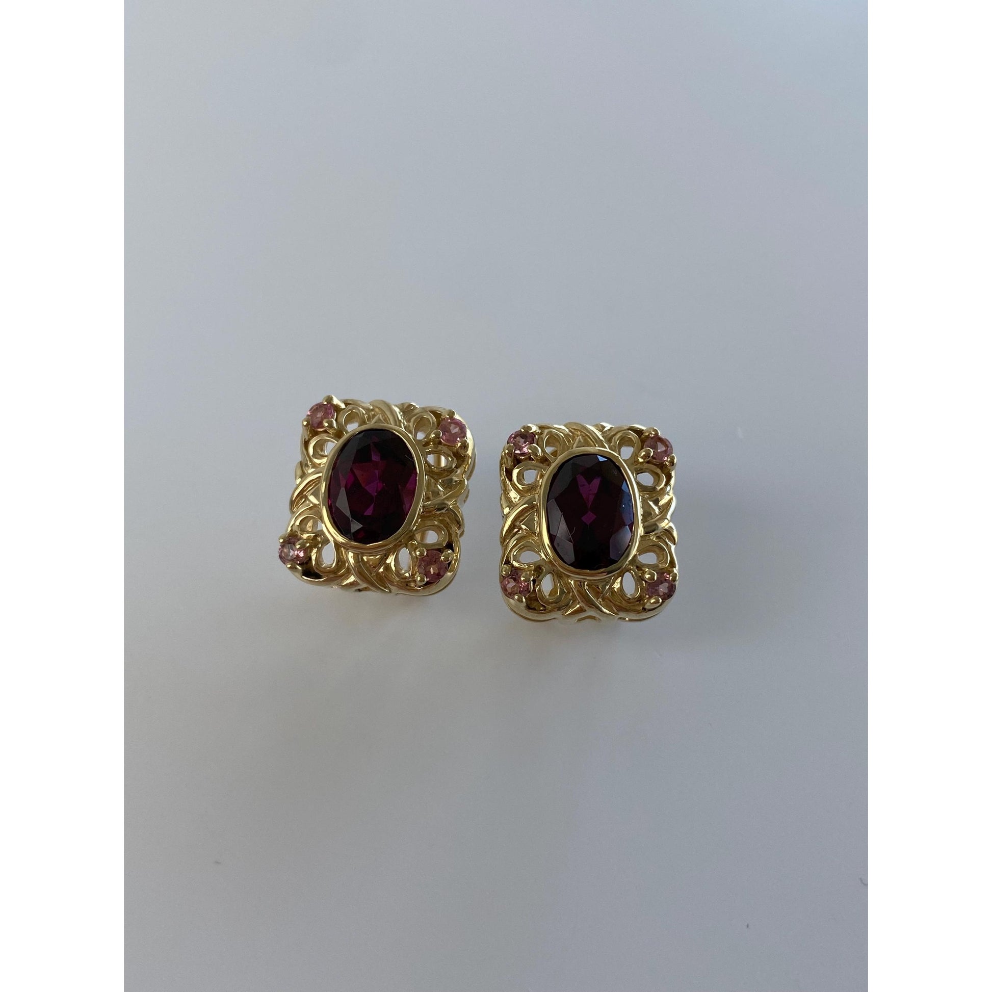 Vintage Solid 10k Yellow Gold Pink Tourmaline Cubic Zirconia Stud Earrings