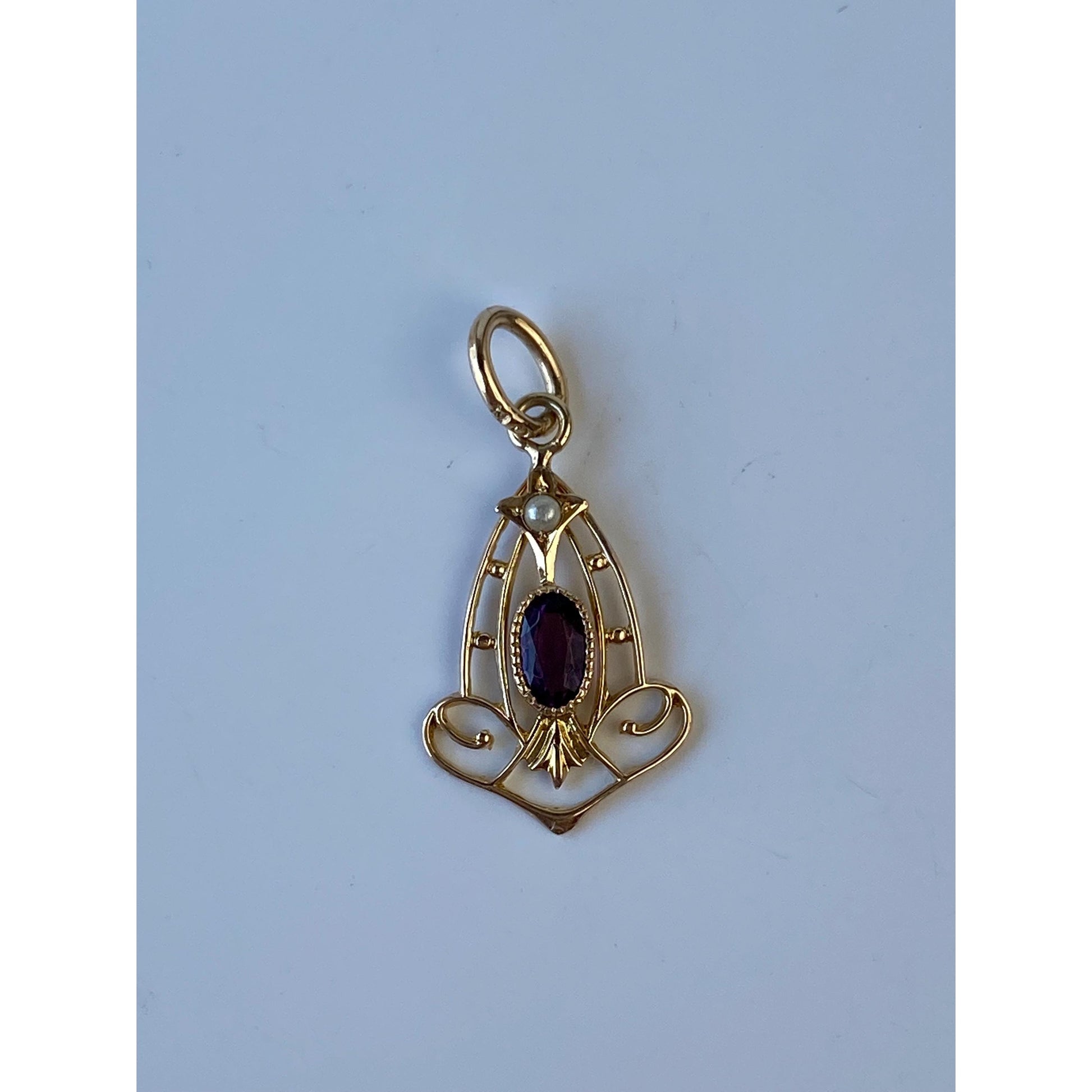 Vintage Solid 10k Yellow Gold Purple Cubic Zirconia Seed Pearl Stick Pin Conversion Charm
