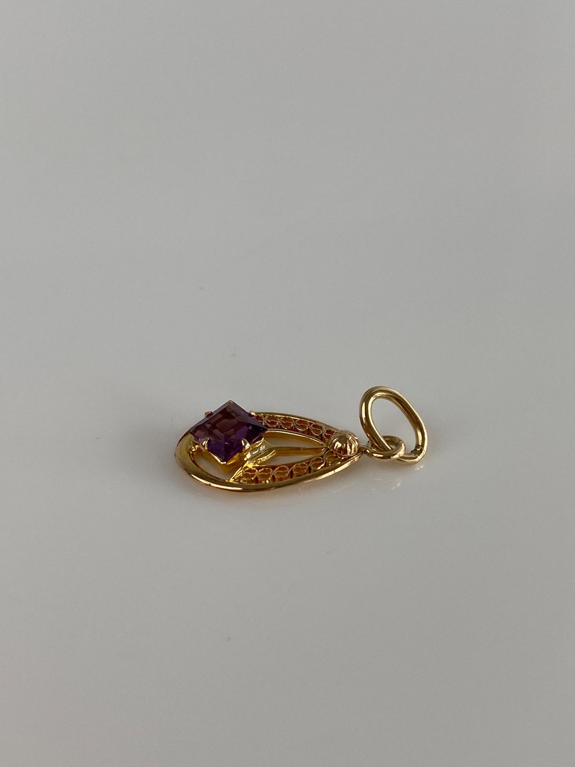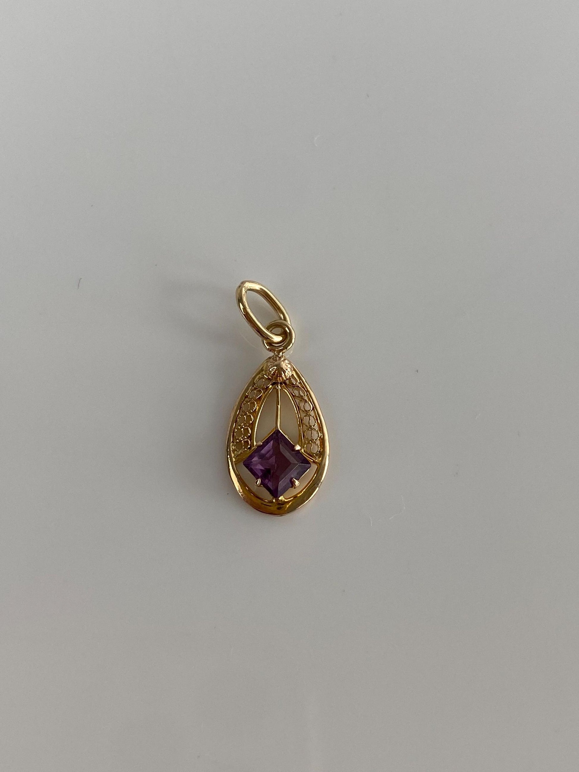 Vintage Solid 10k Yellow Gold Purple Cubic Zirconia Stick Pin Conversion Charm