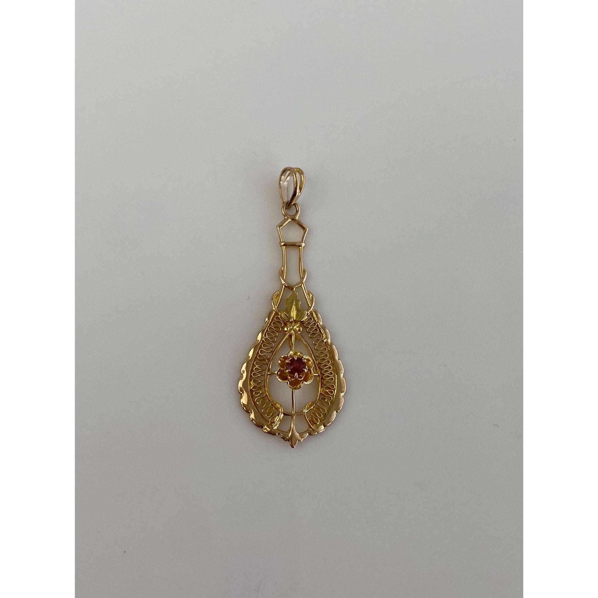 Vintage Solid 10k Yellow Gold Red Cubic Zirconia Charm