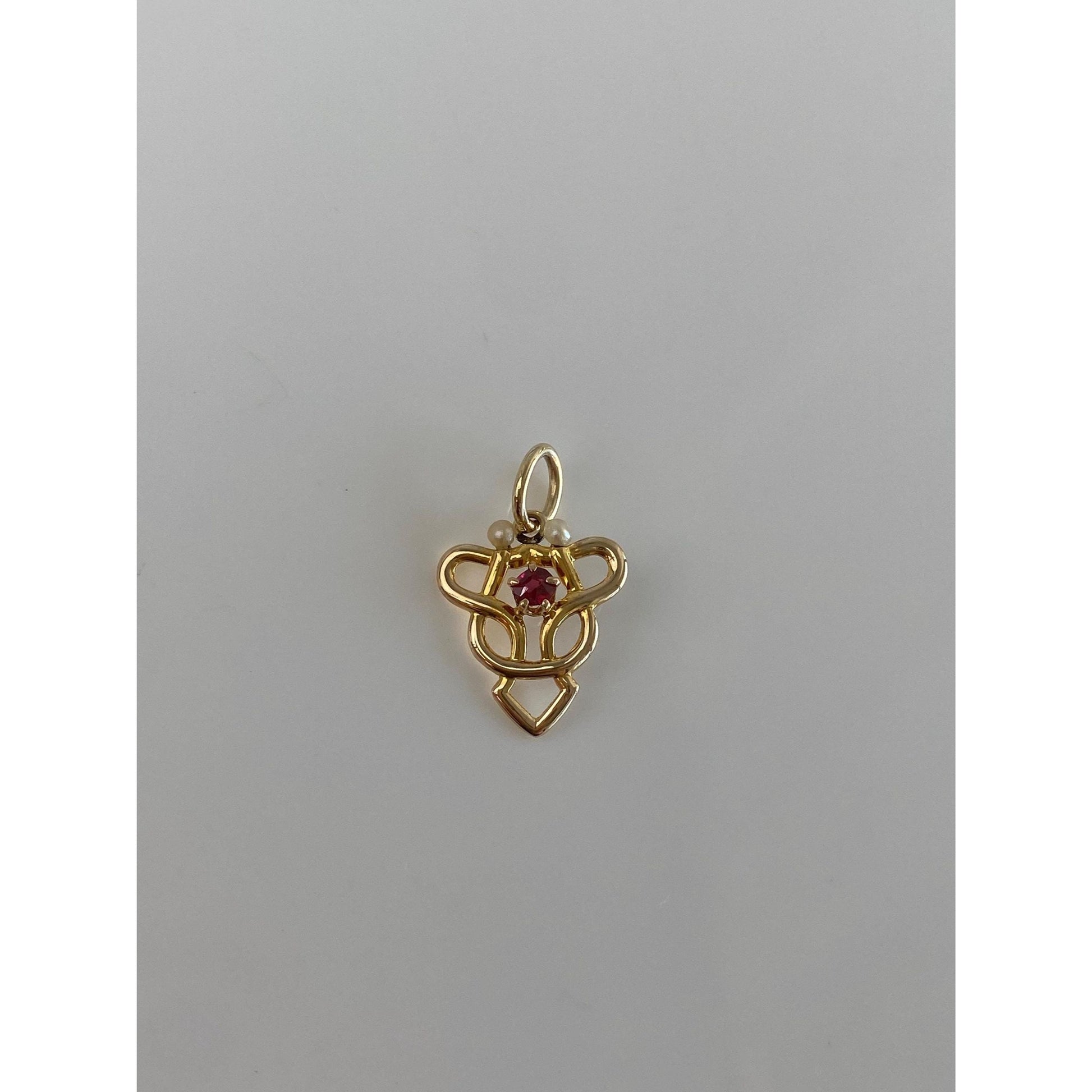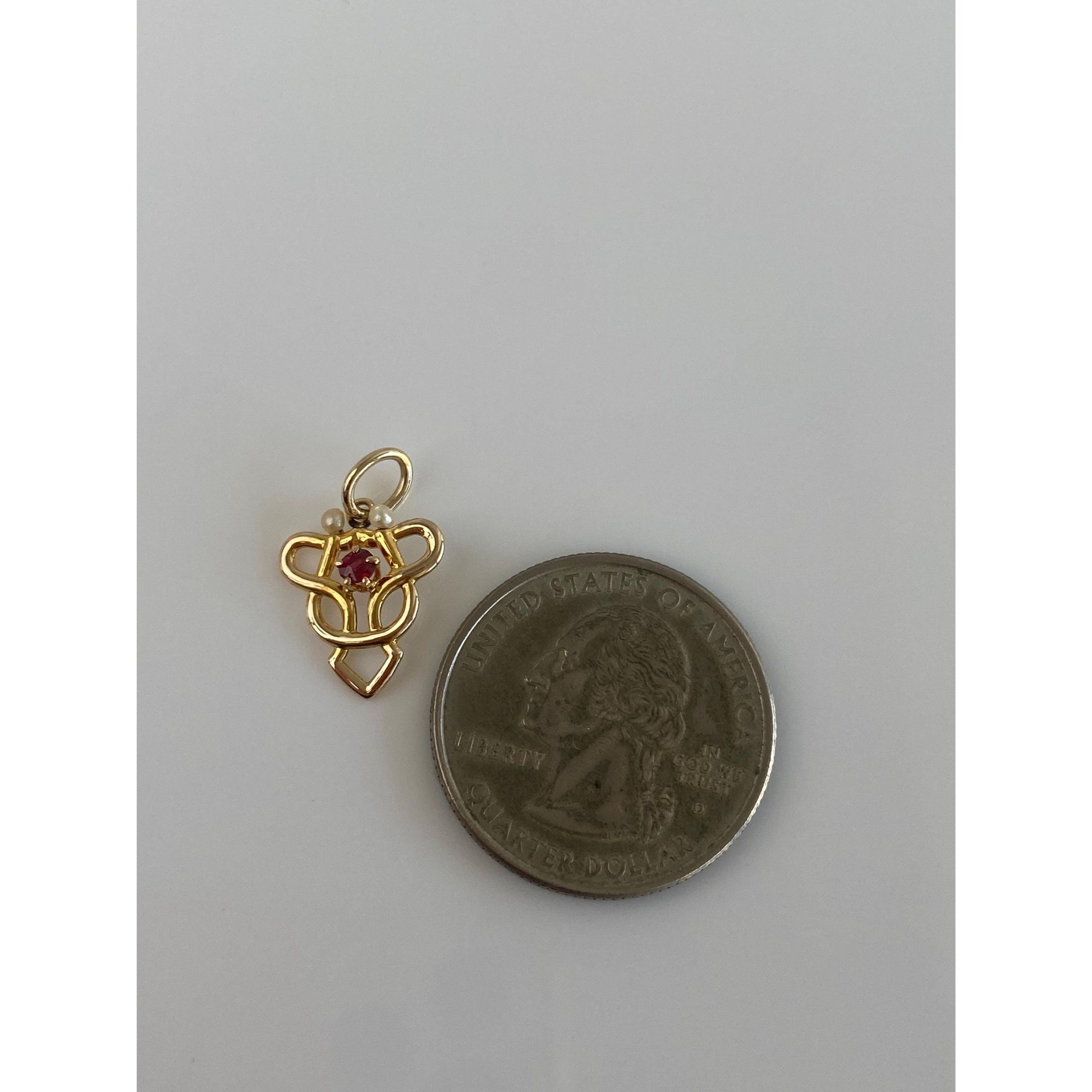 Vintage Solid 10k Yellow Gold Red Cubic Zirconia Seed Pearls Stick Pin Conversion Charm
