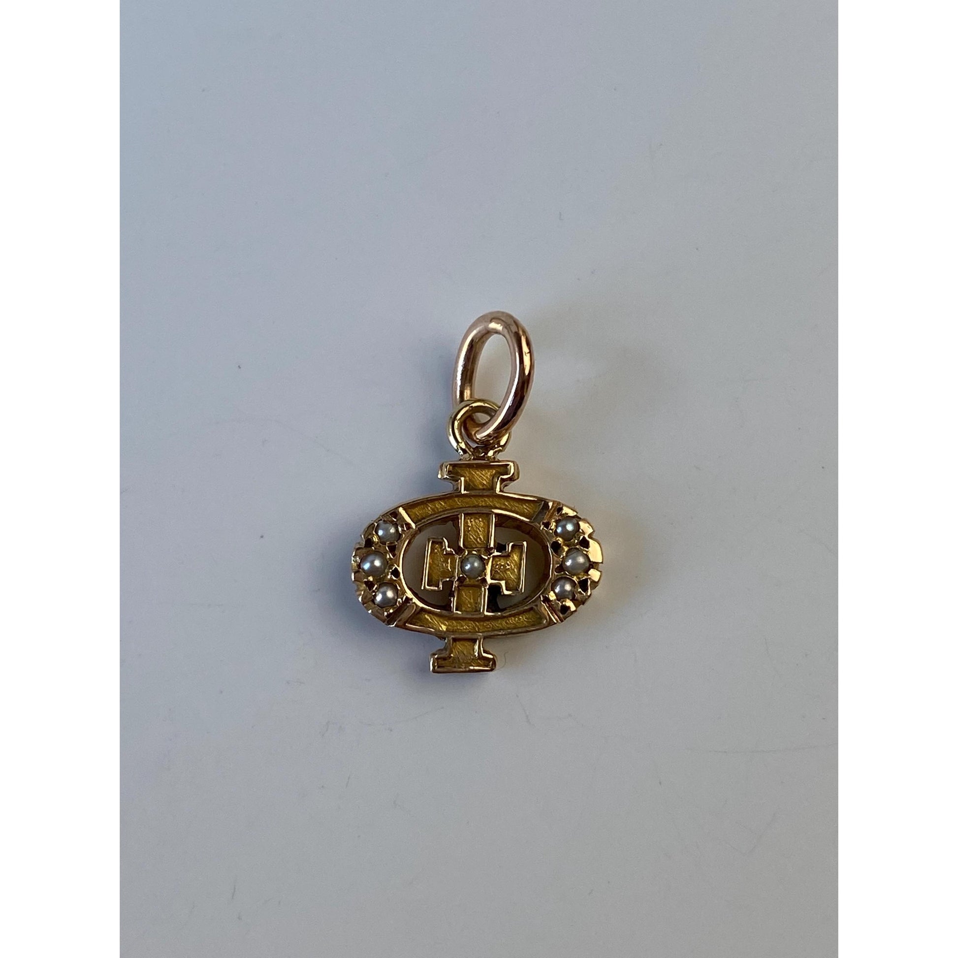Vintage Solid 10k Yellow Gold Seed Pearl Fraternity Charm