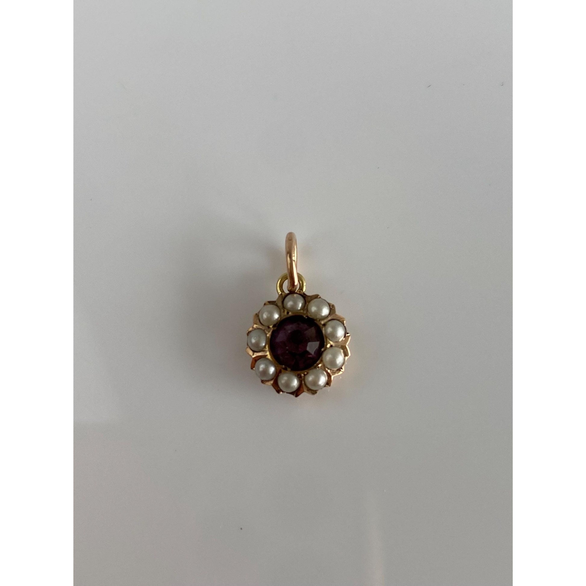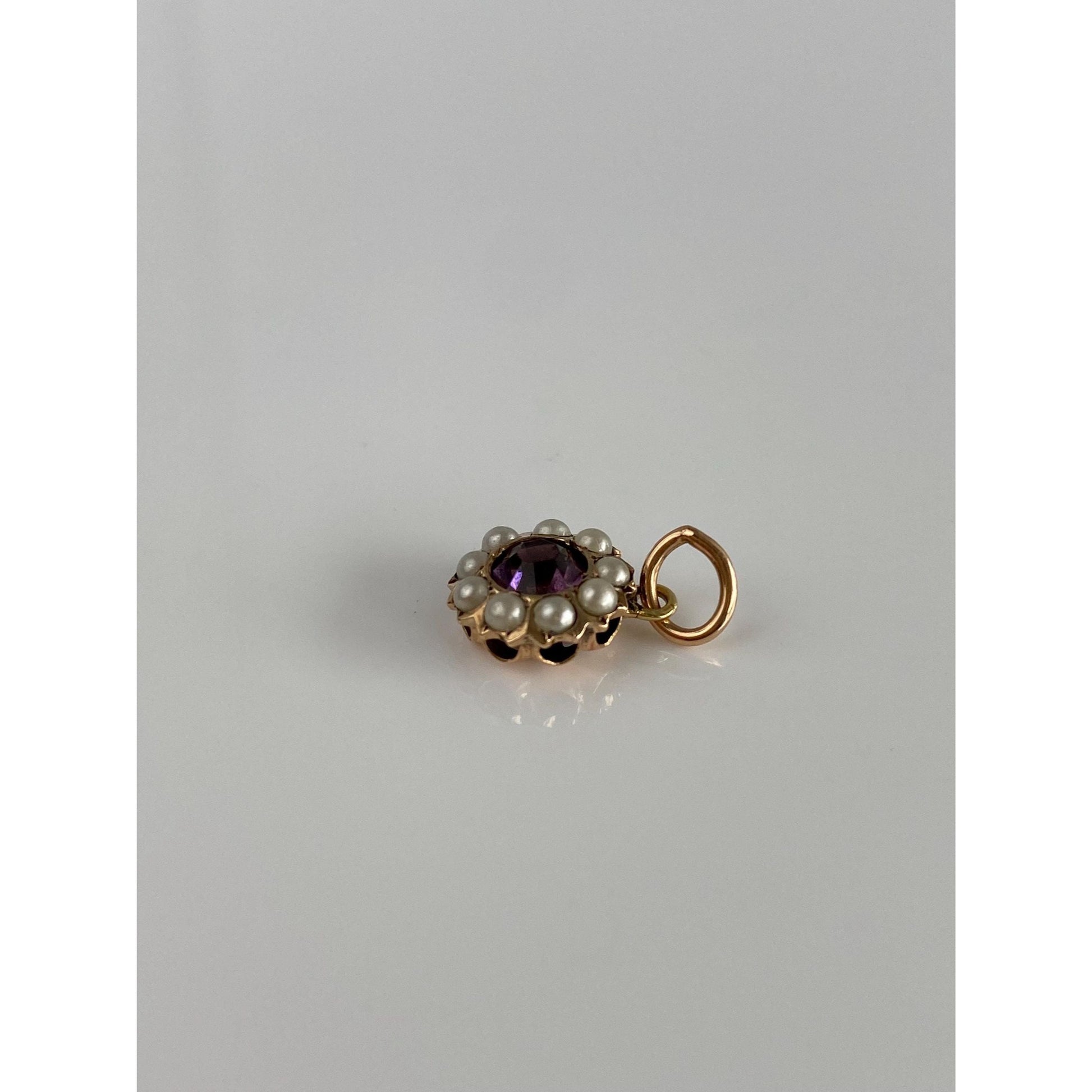 Vintage Solid 10k Yellow Gold Seed Pearl Halo Purple Cubic Zirconia Charm