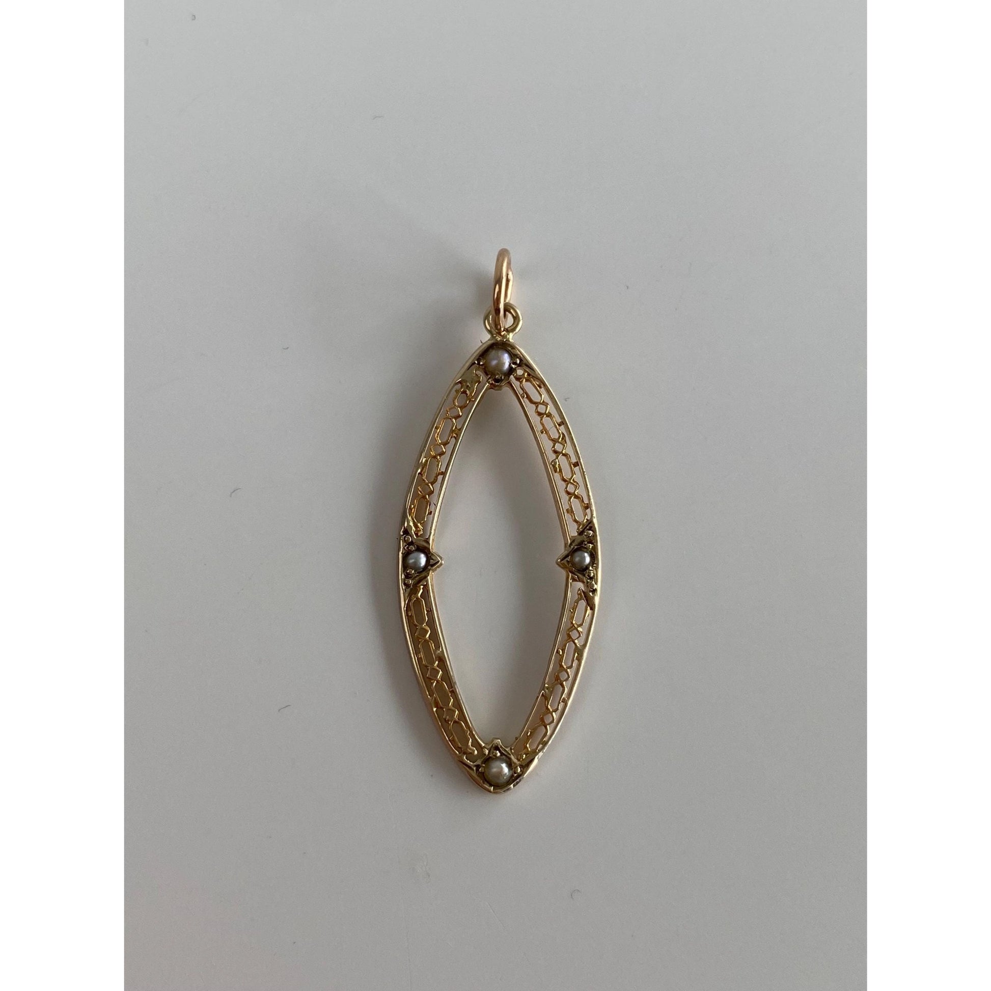 Vintage Solid 10k Yellow Gold Seed Pearl Oval Charm