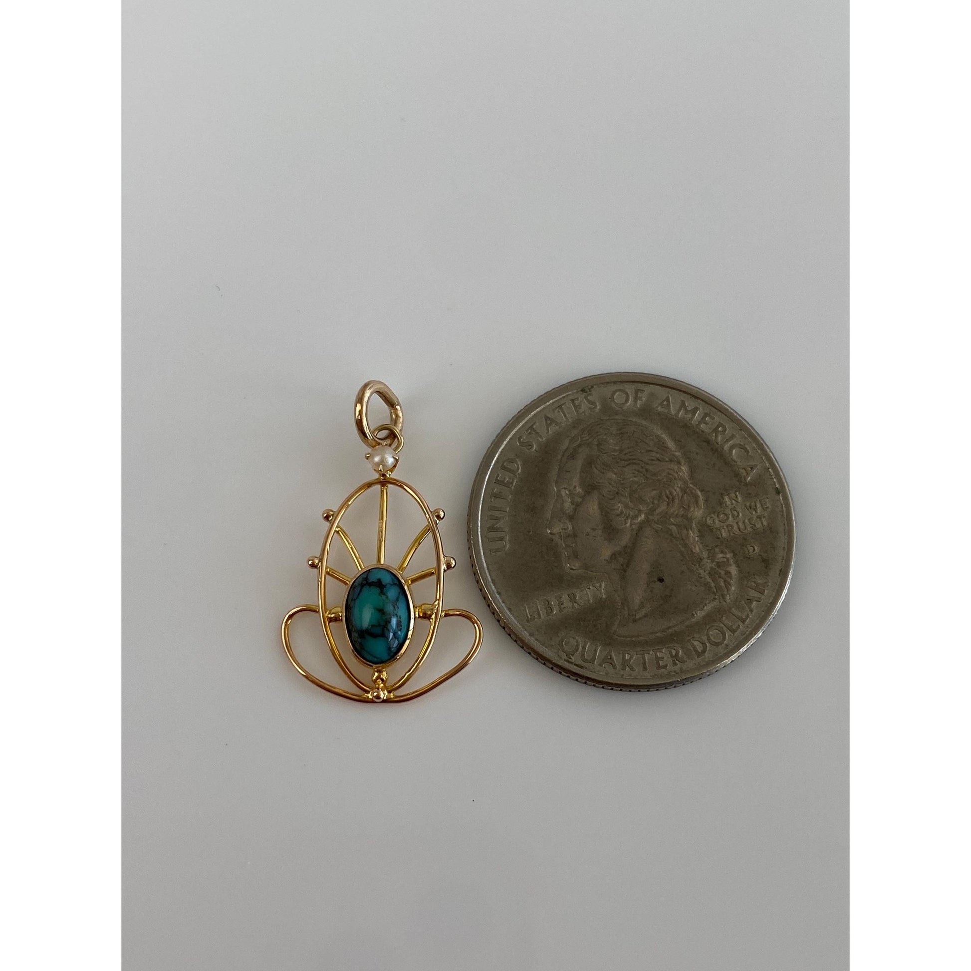 Vintage Solid 10k Yellow Gold Turquoise Seed Pearl Stick Pin Conversion Charm