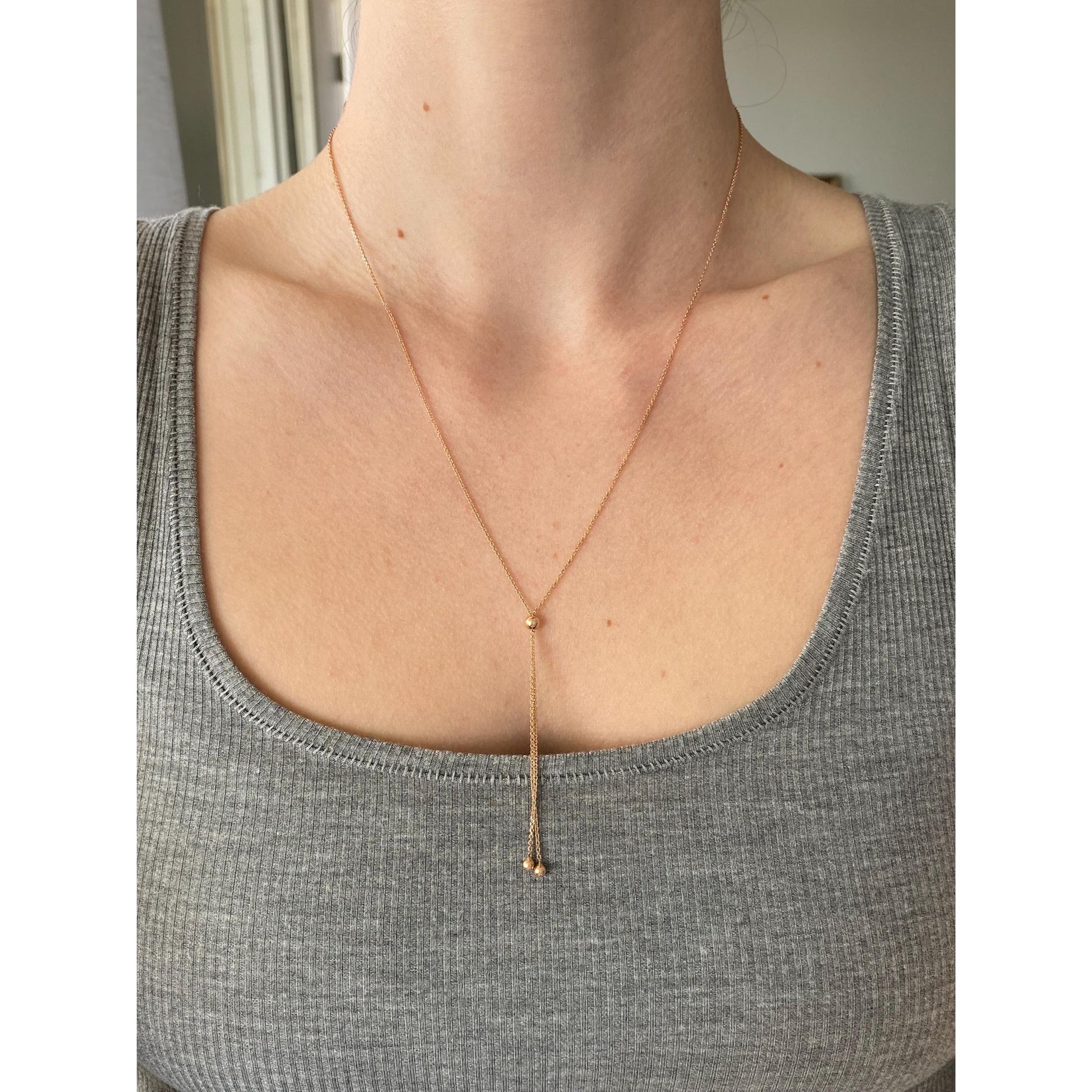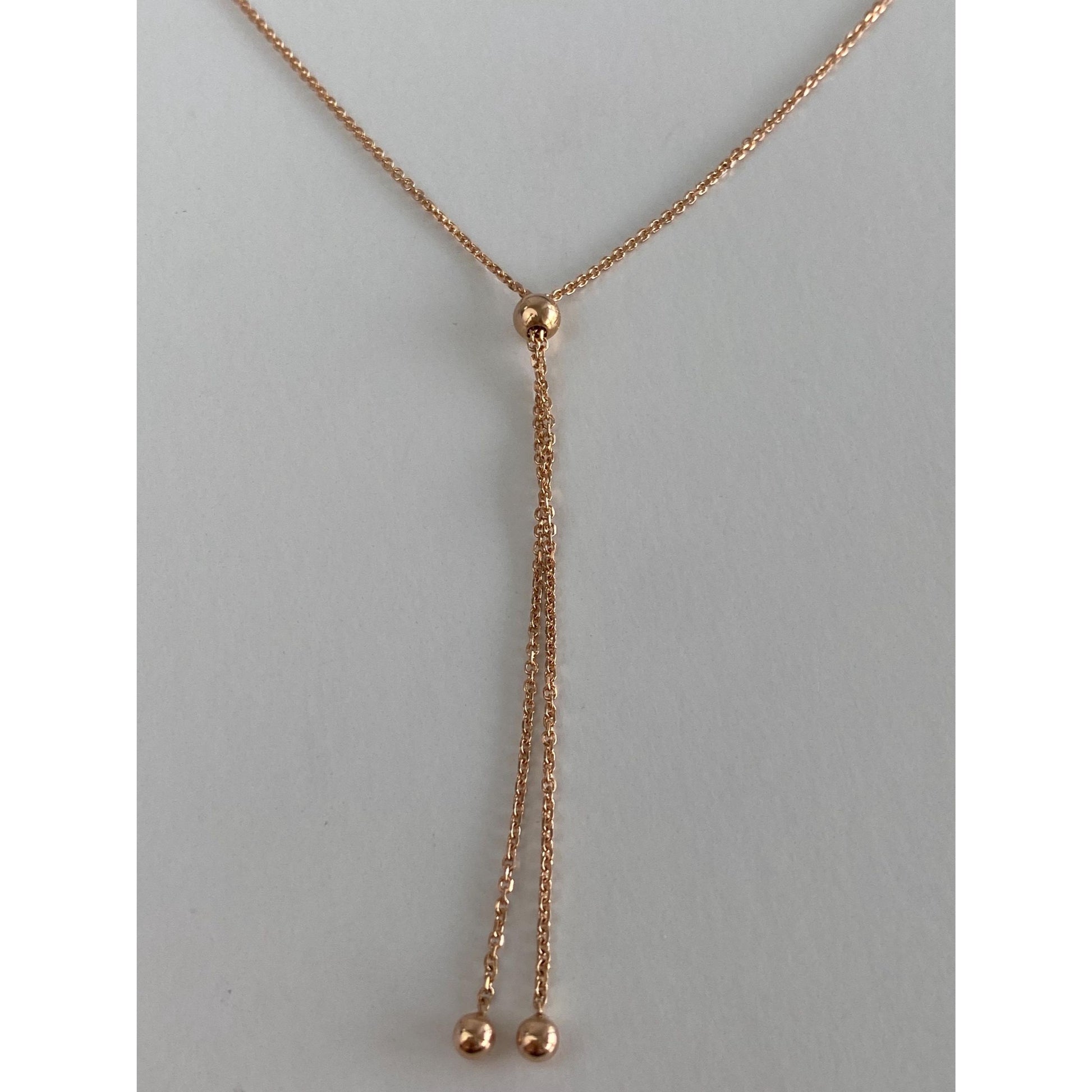 Vintage Solid 14k Rose Gold Tight Rolo Chain Adjustable Lariat Necklace - 19.5 inches