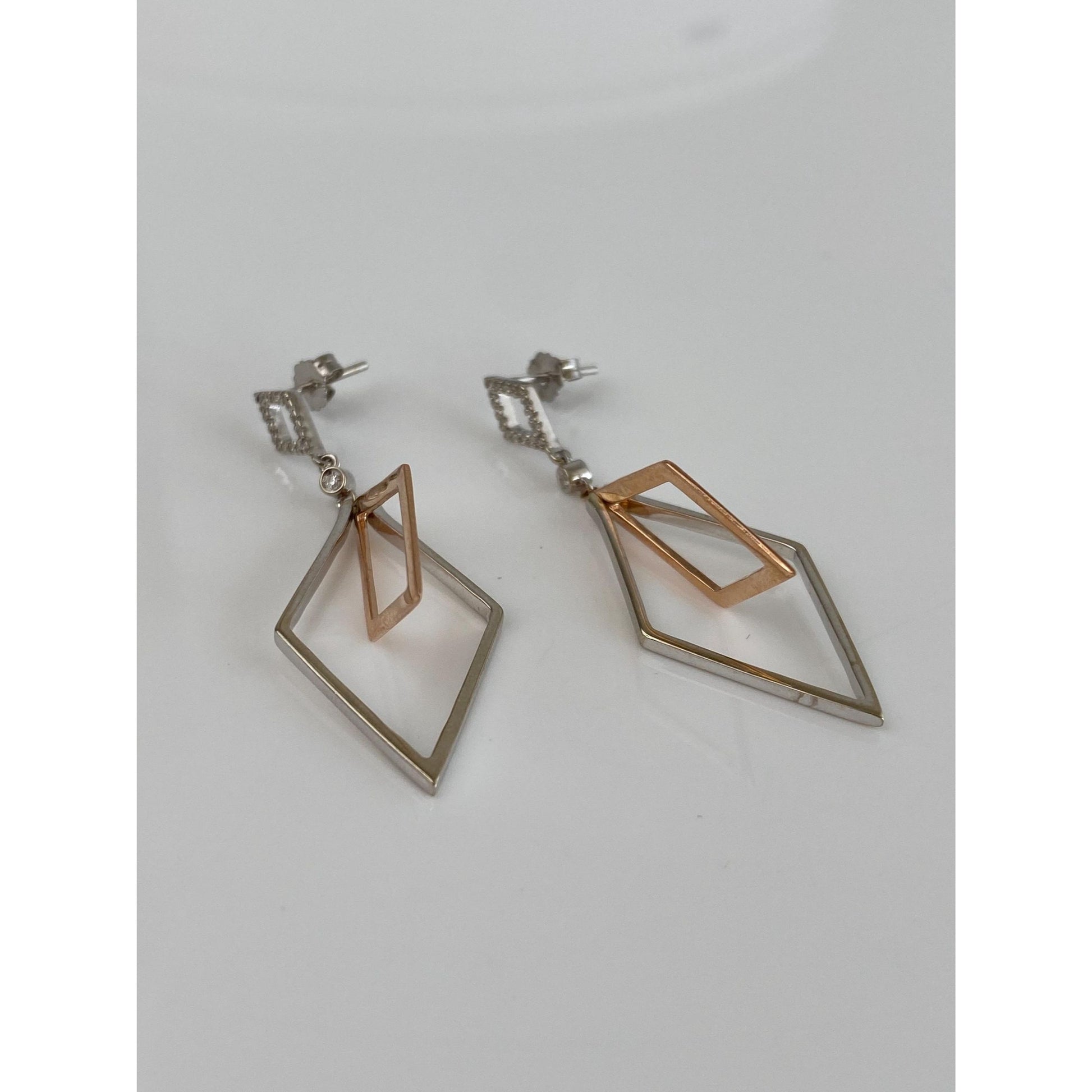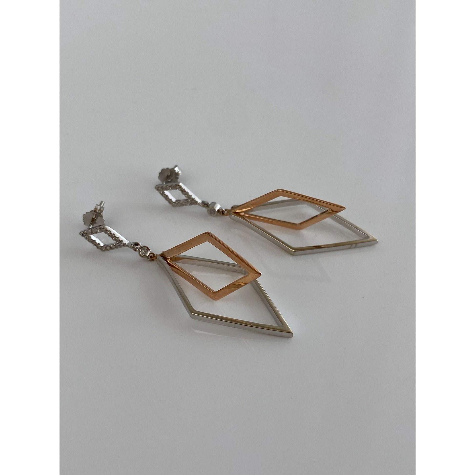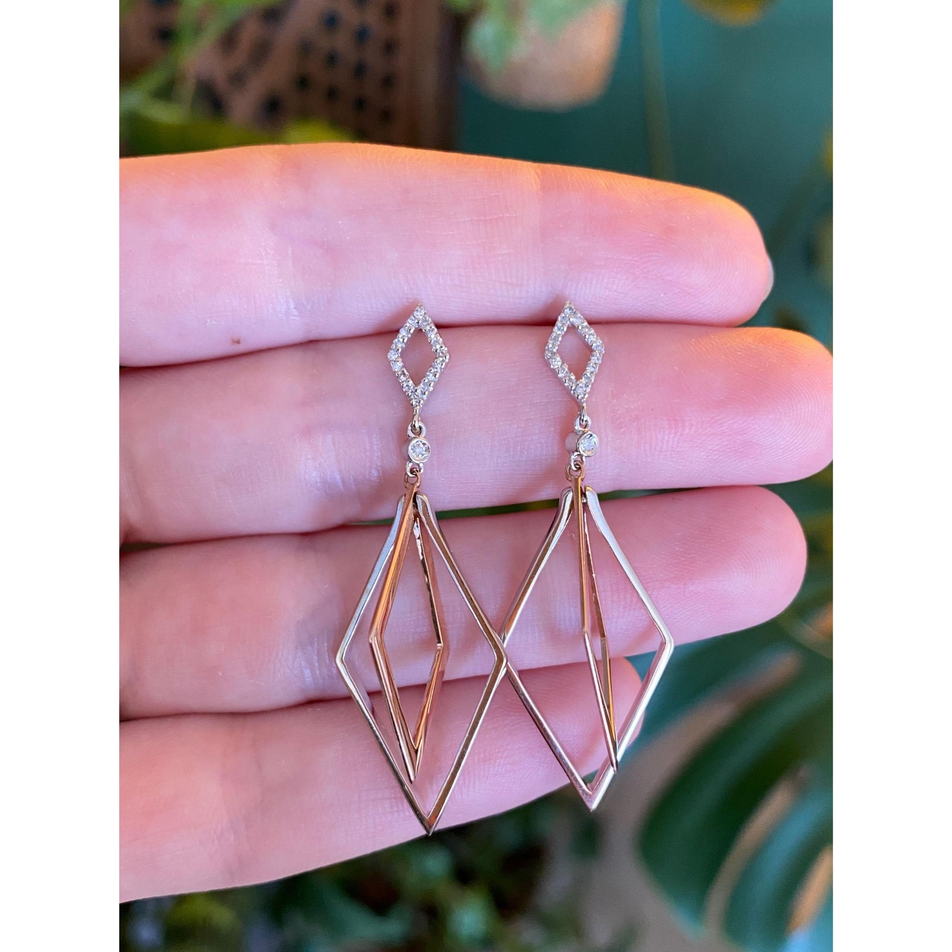 Vintage Solid 14k Rose & White Clear Sapphire Dangle Earrings