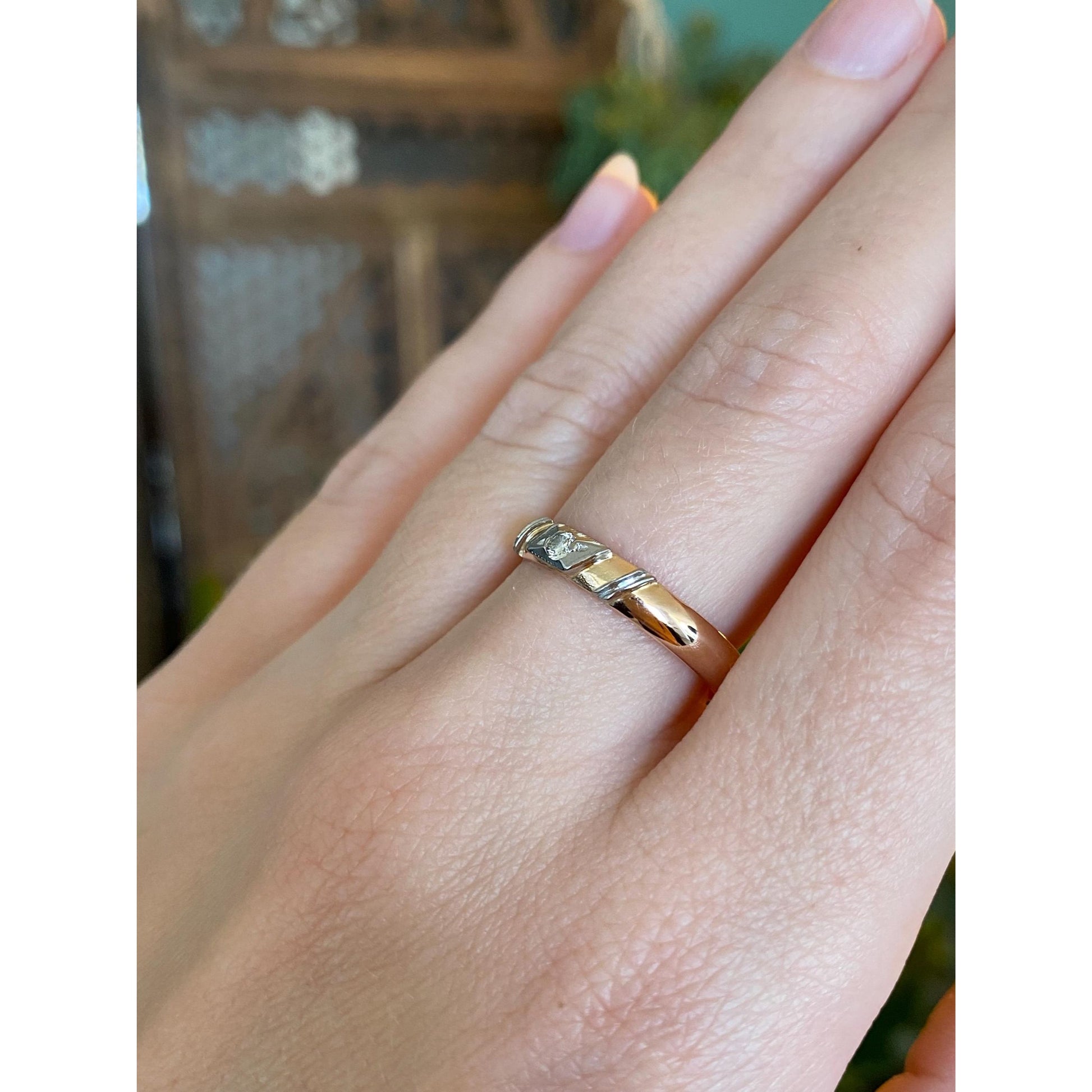 Vintage Solid 14k Rose & White Gold Diamond Ring Band - Size 8