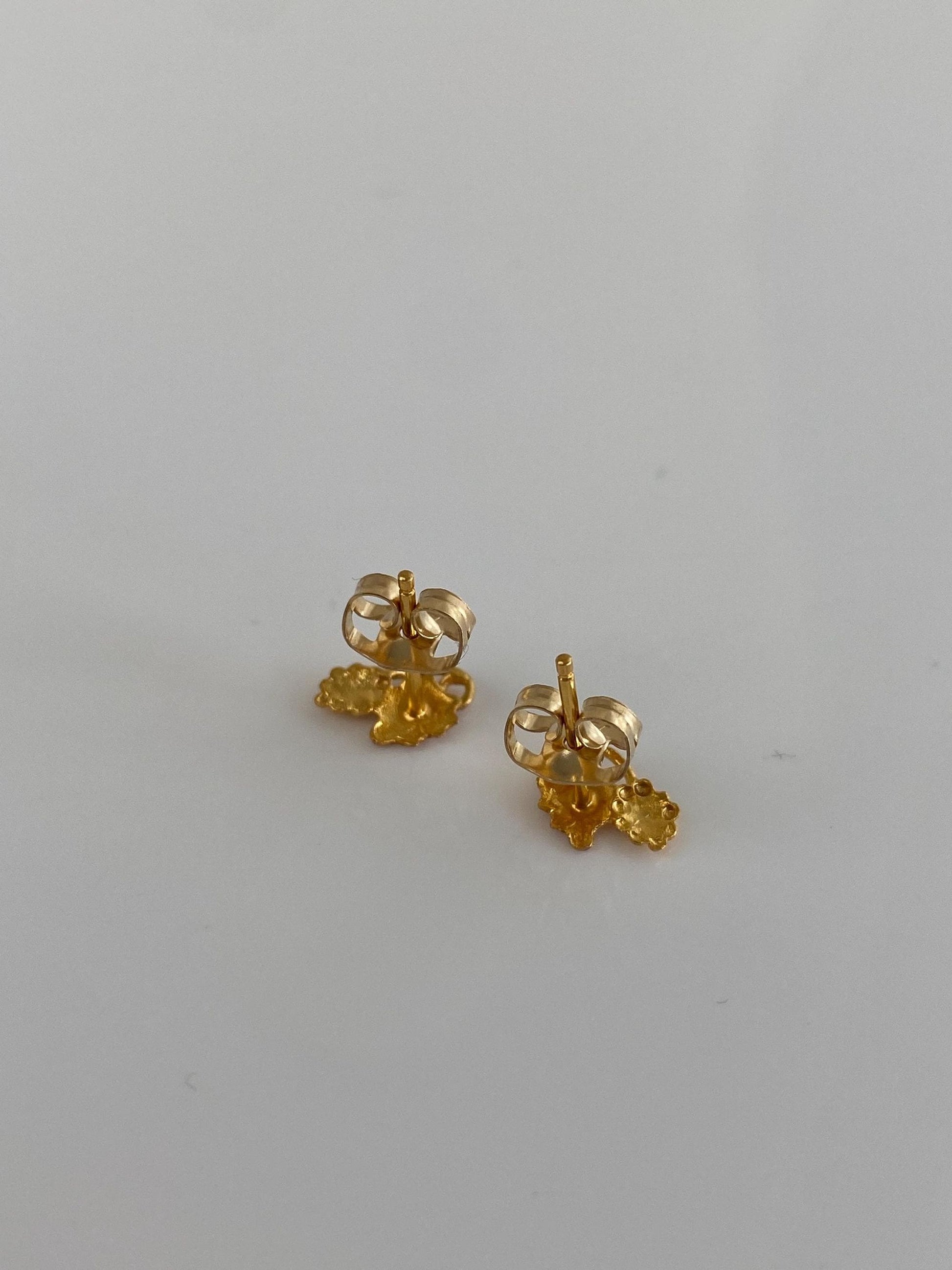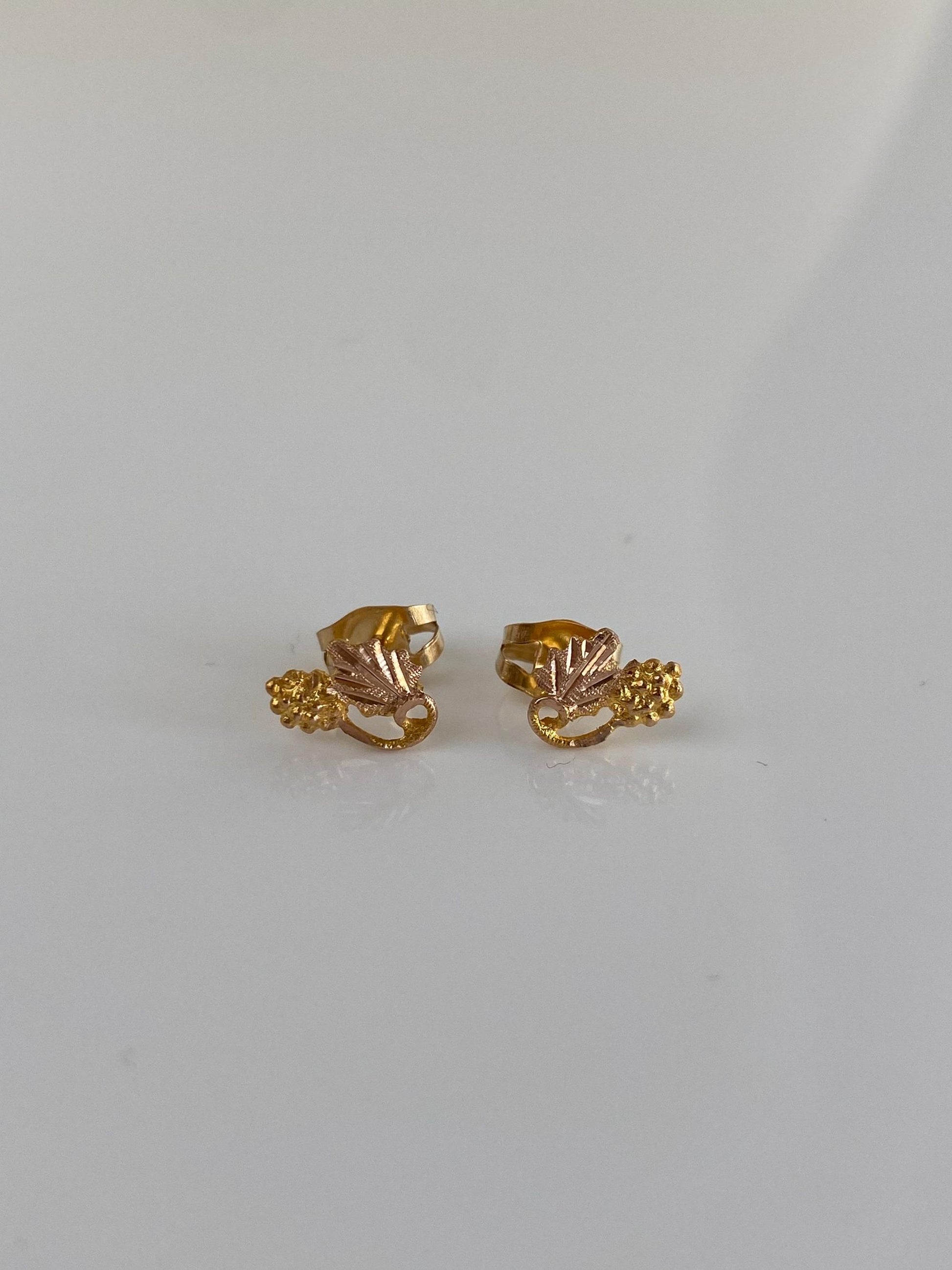 Vintage Solid 14k Rose & Yellow Gold Grape Vine Stud Earrings