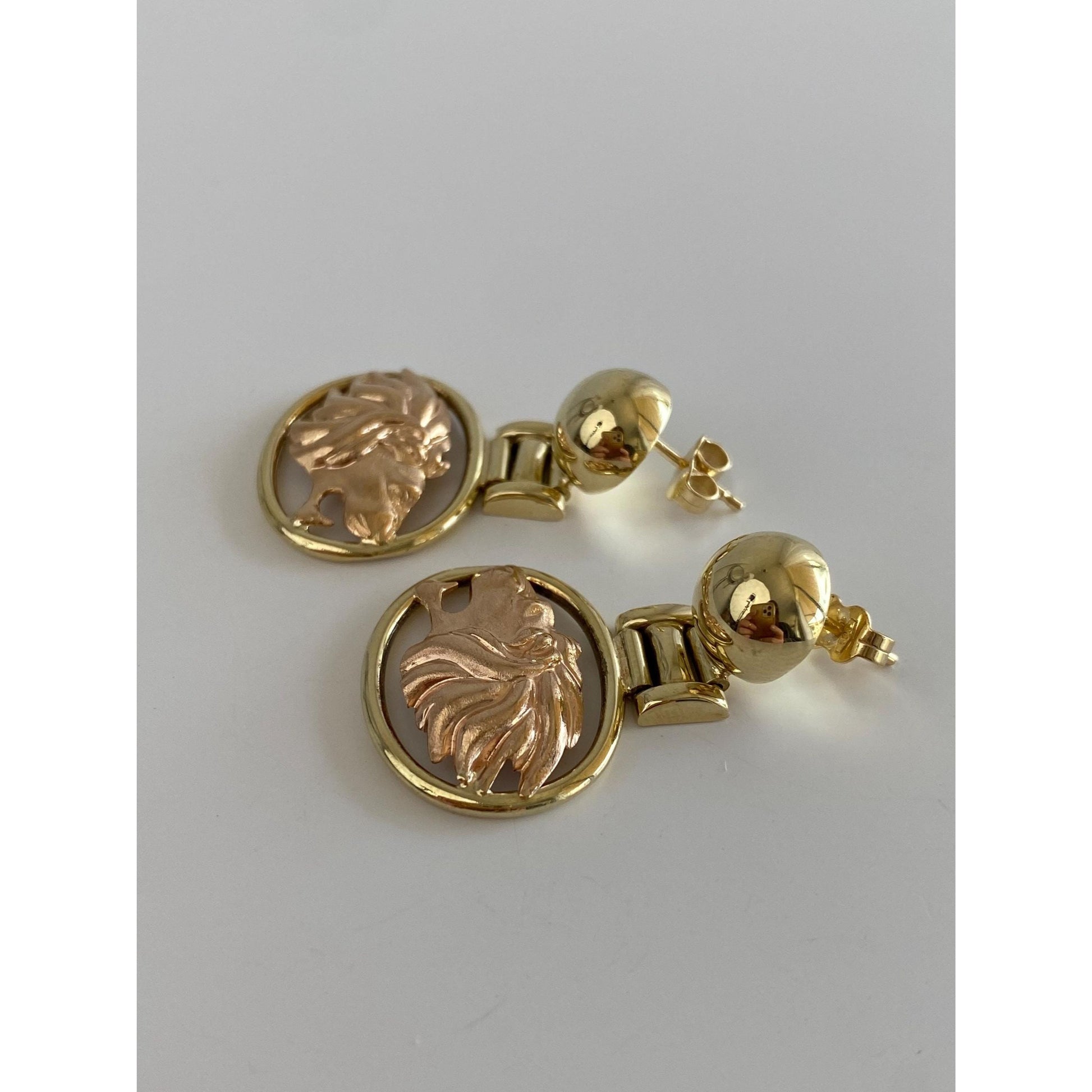 Vintage Solid 14k Rose & Yellow Gold Lion Dangle Stud Earrings