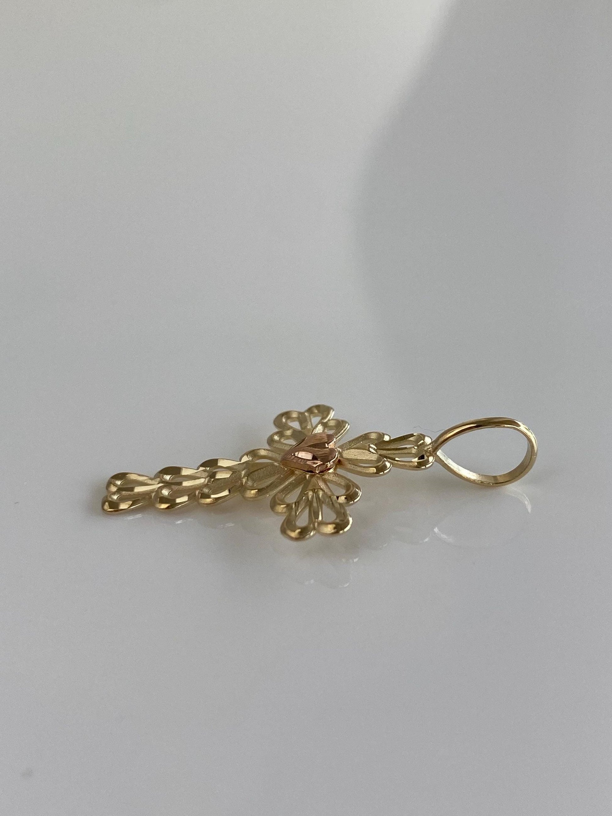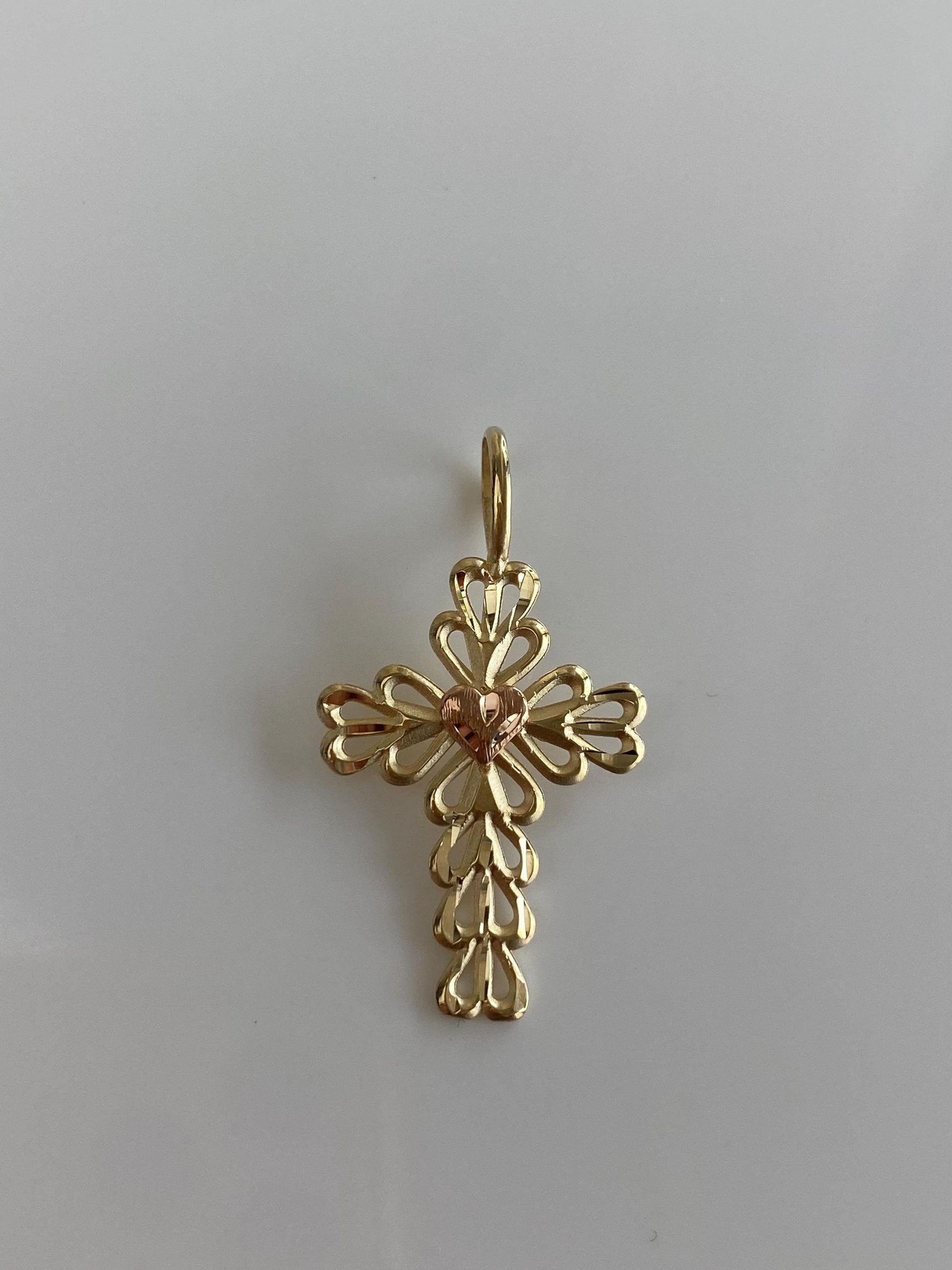 Vintage Solid 14k Rose & Yellow Gold Open Work Heart Cross Charm