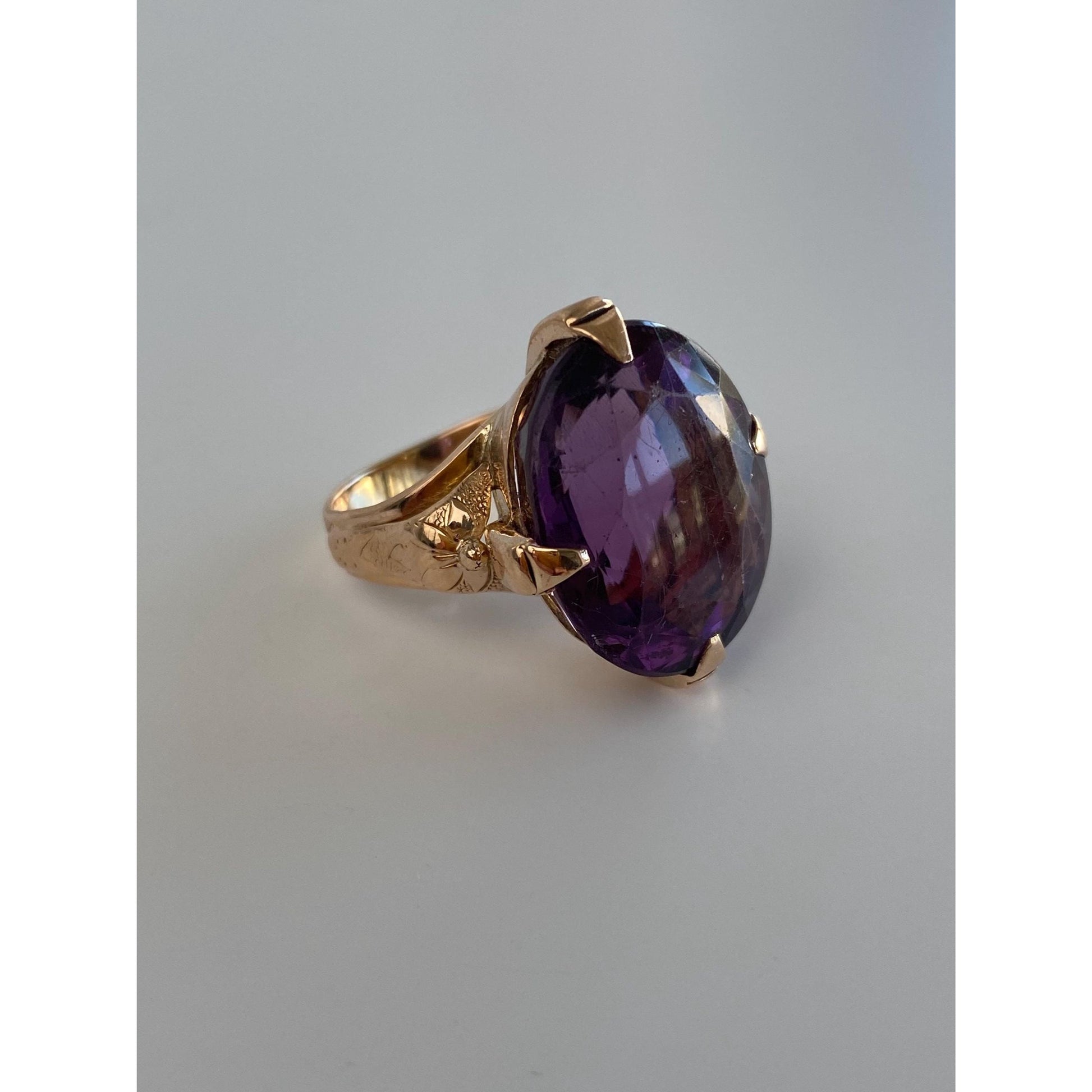 Vintage Solid 14k Rosey Gold Amethyst Ring - Size 7