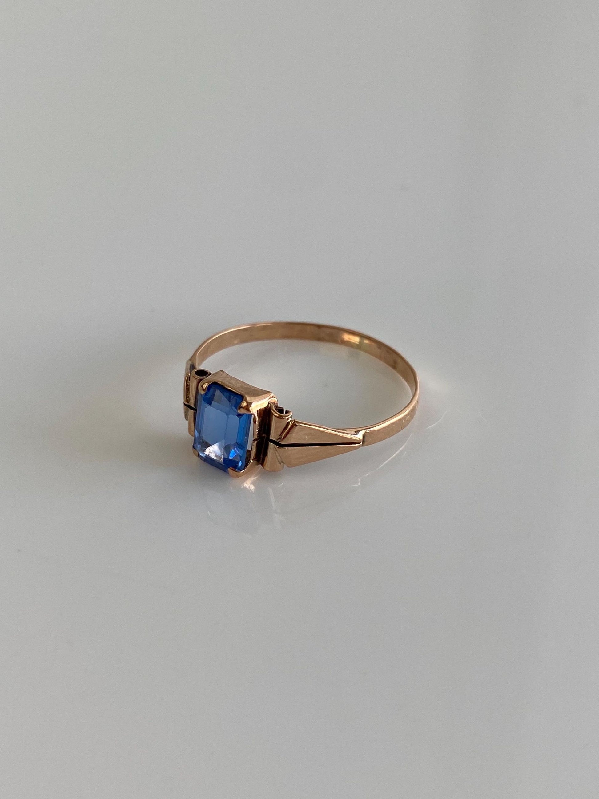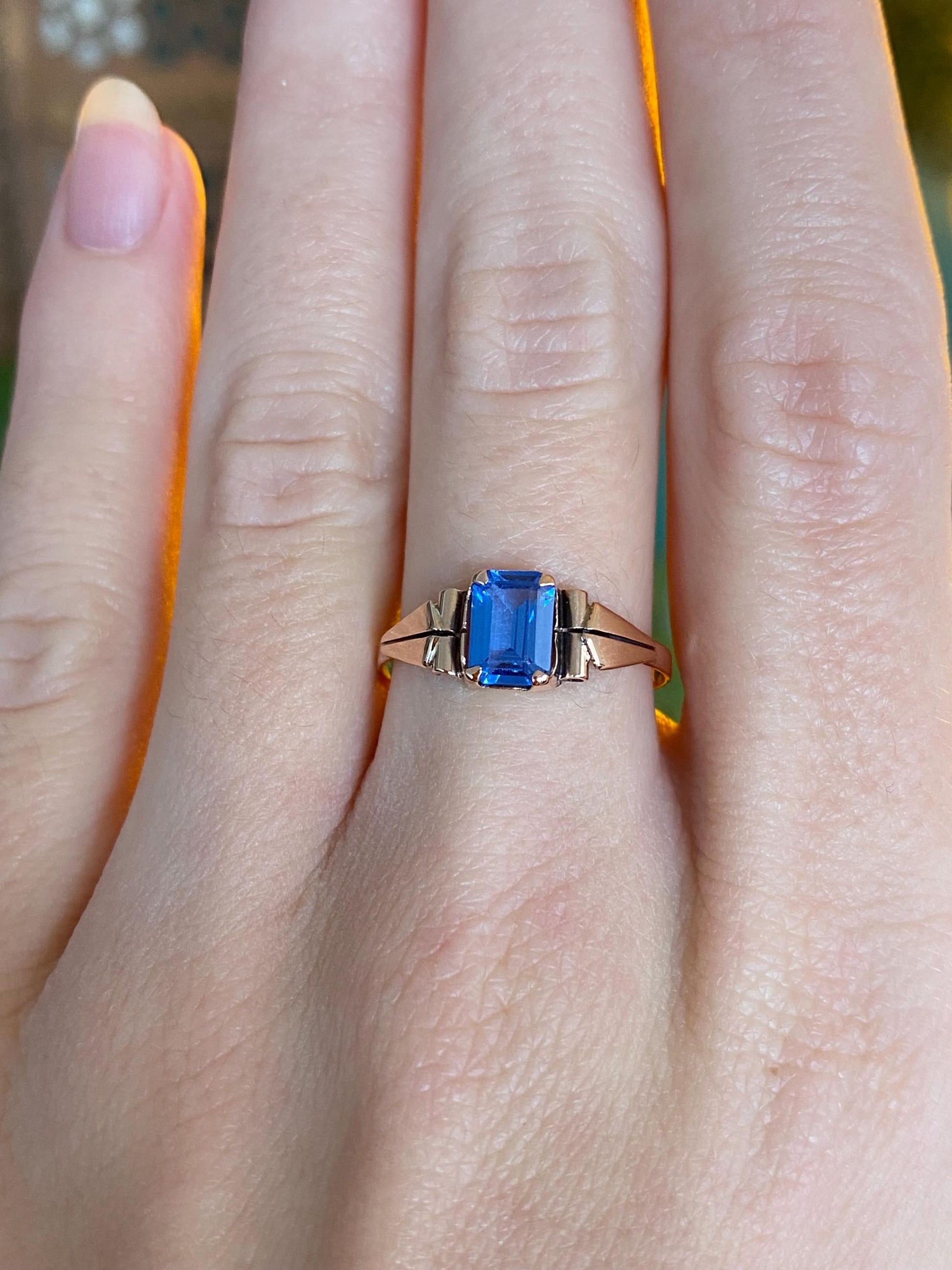 Vintage Solid 14k Rosey Gold Blue Spinel Ring - Size 7.75