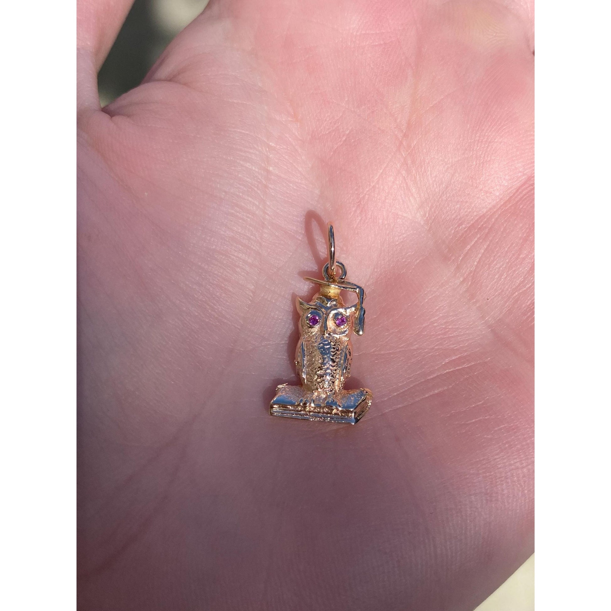 Vintage Solid 14k Rosey Gold Pink Sapphire Owl Graduation Charm