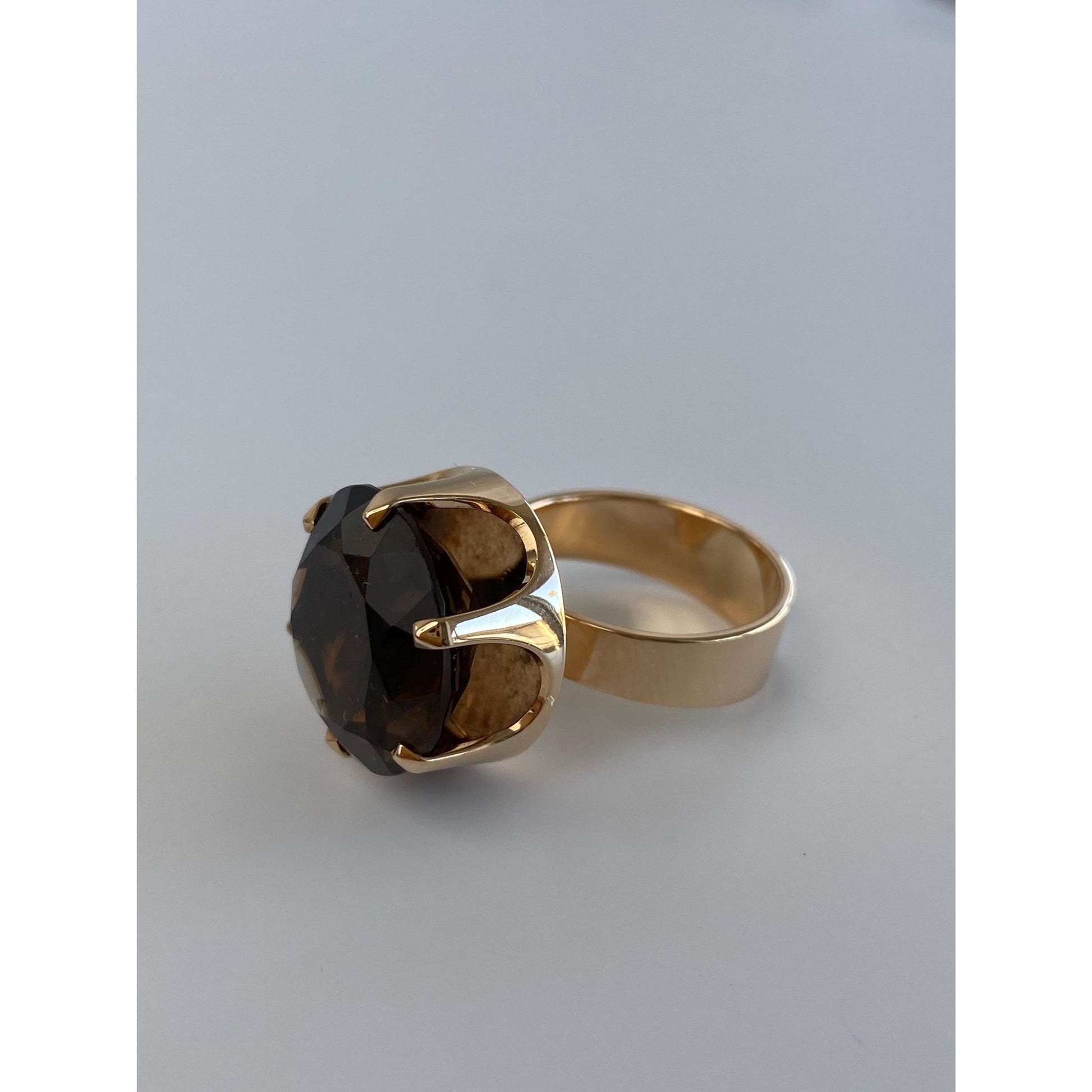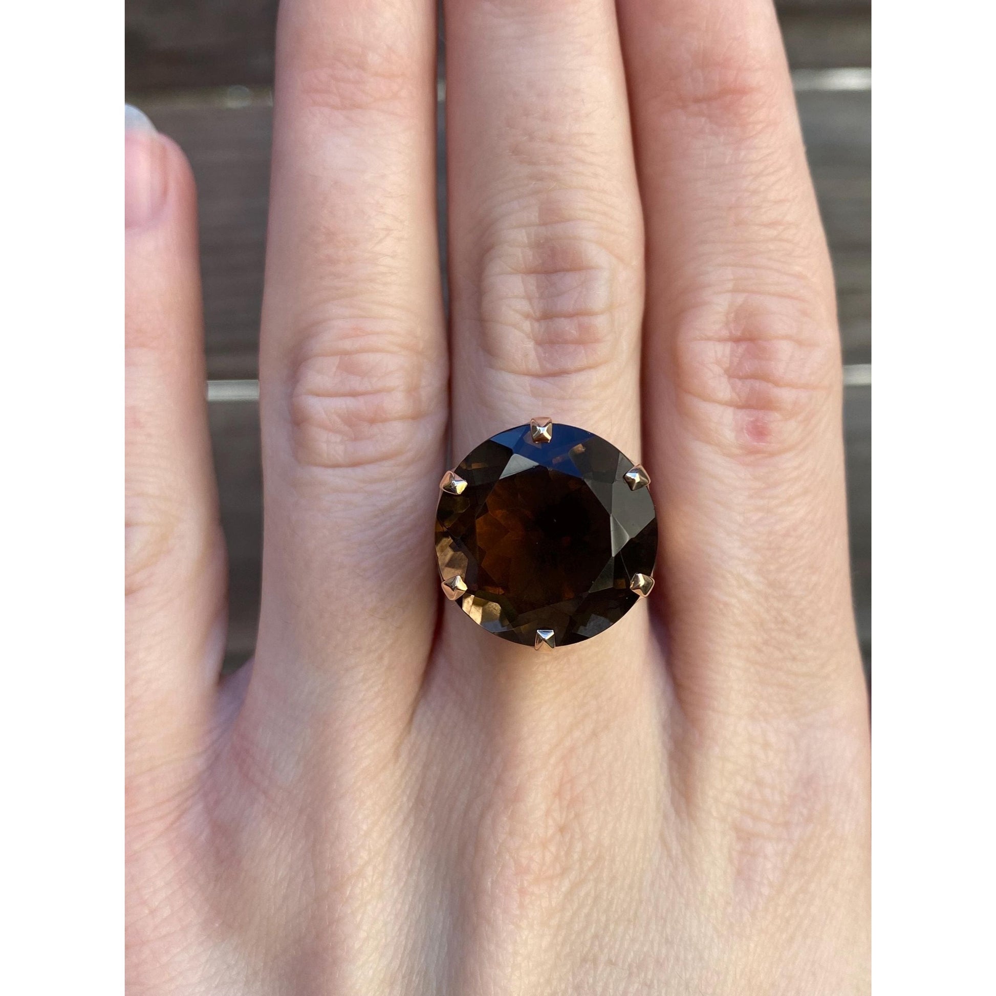 Vintage Solid 14k Rosey Gold Smokey Quartz Cocktail Ring - Size 7.5