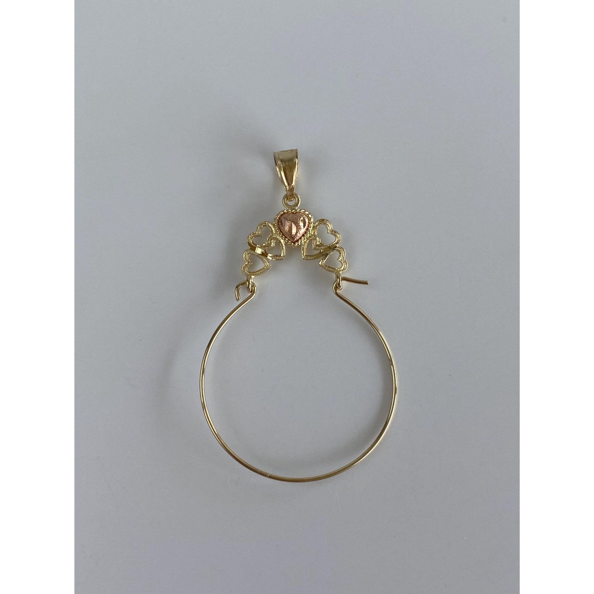 Vintage Solid 14k Rosey & Yellow Gold Hearts Charm Holder Charm