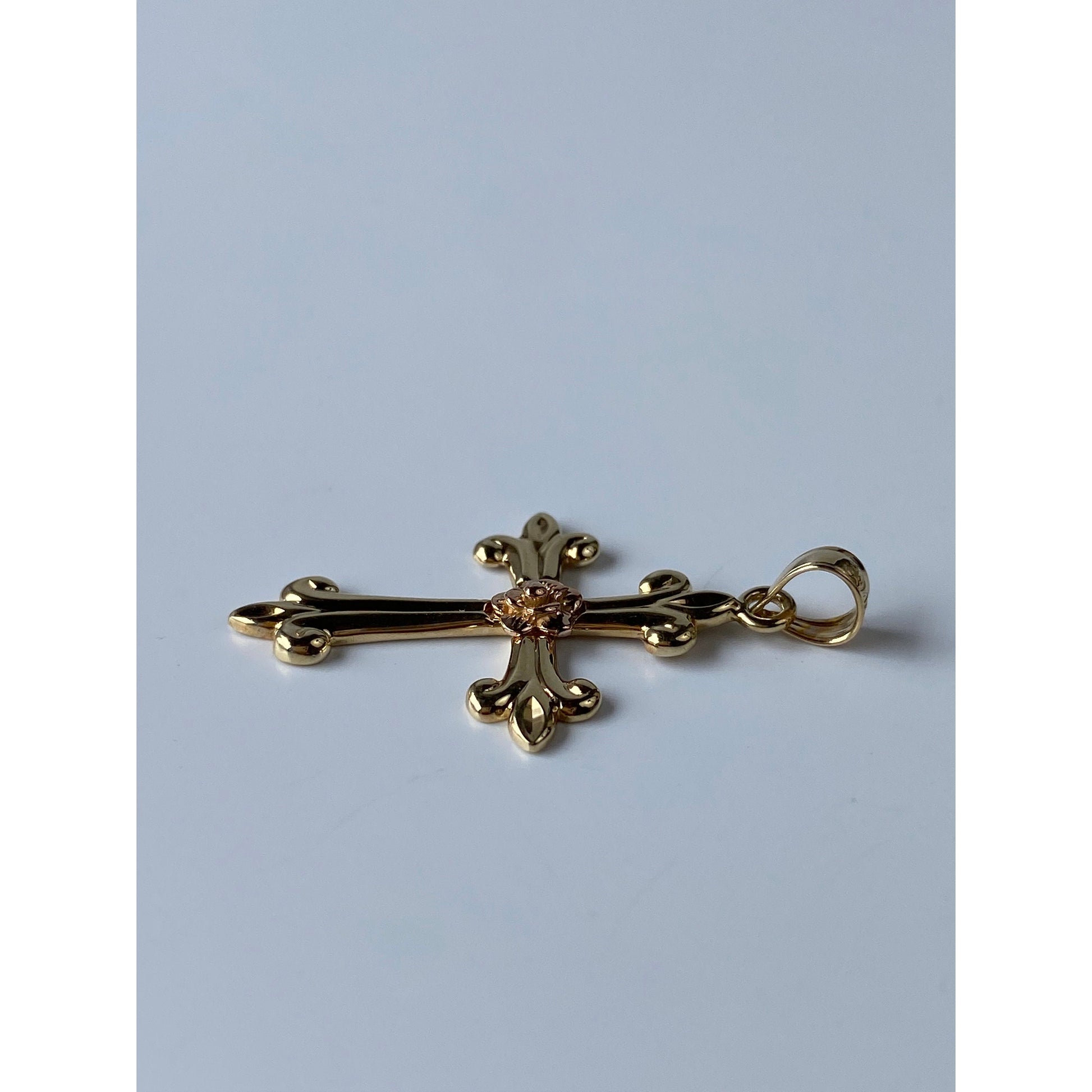 Vintage Solid 14k Rosey & Yellow Gold Rose Cross Charm