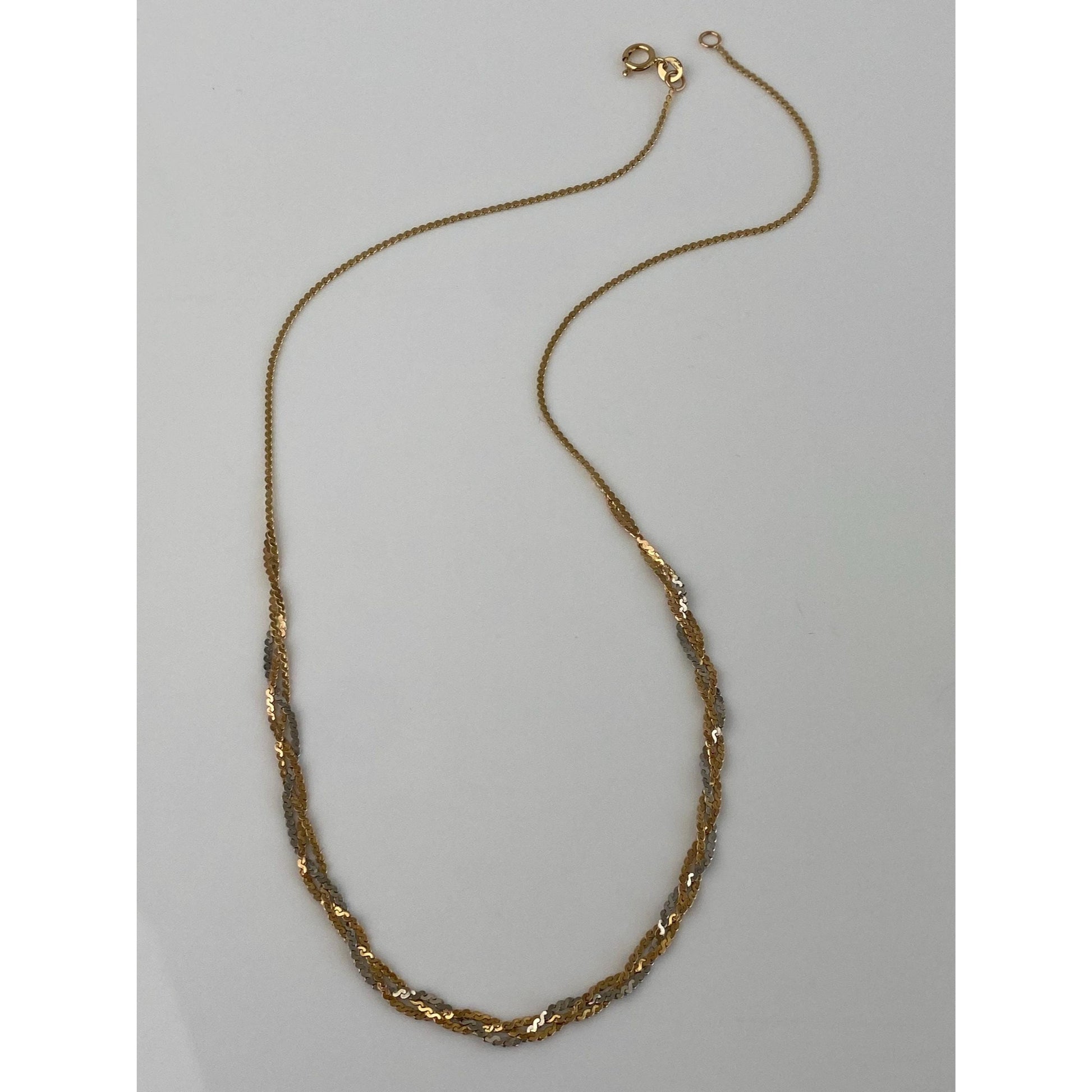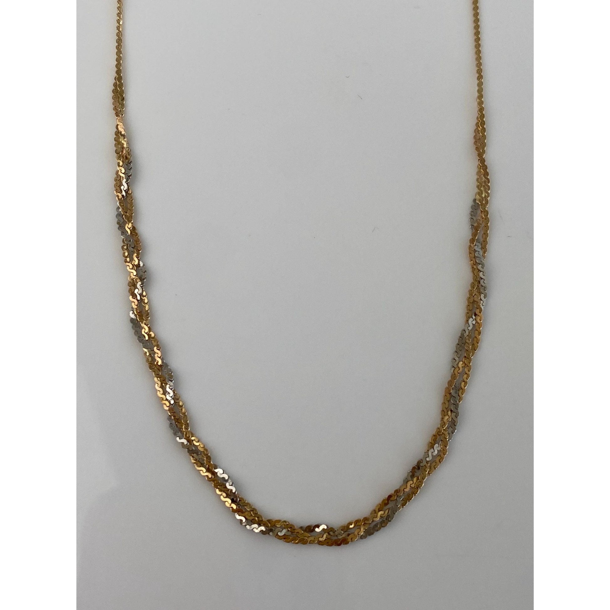 Vintage Solid 14k Tri Tone Gold Braided Serpentine Chain Necklace - 16.25 inches