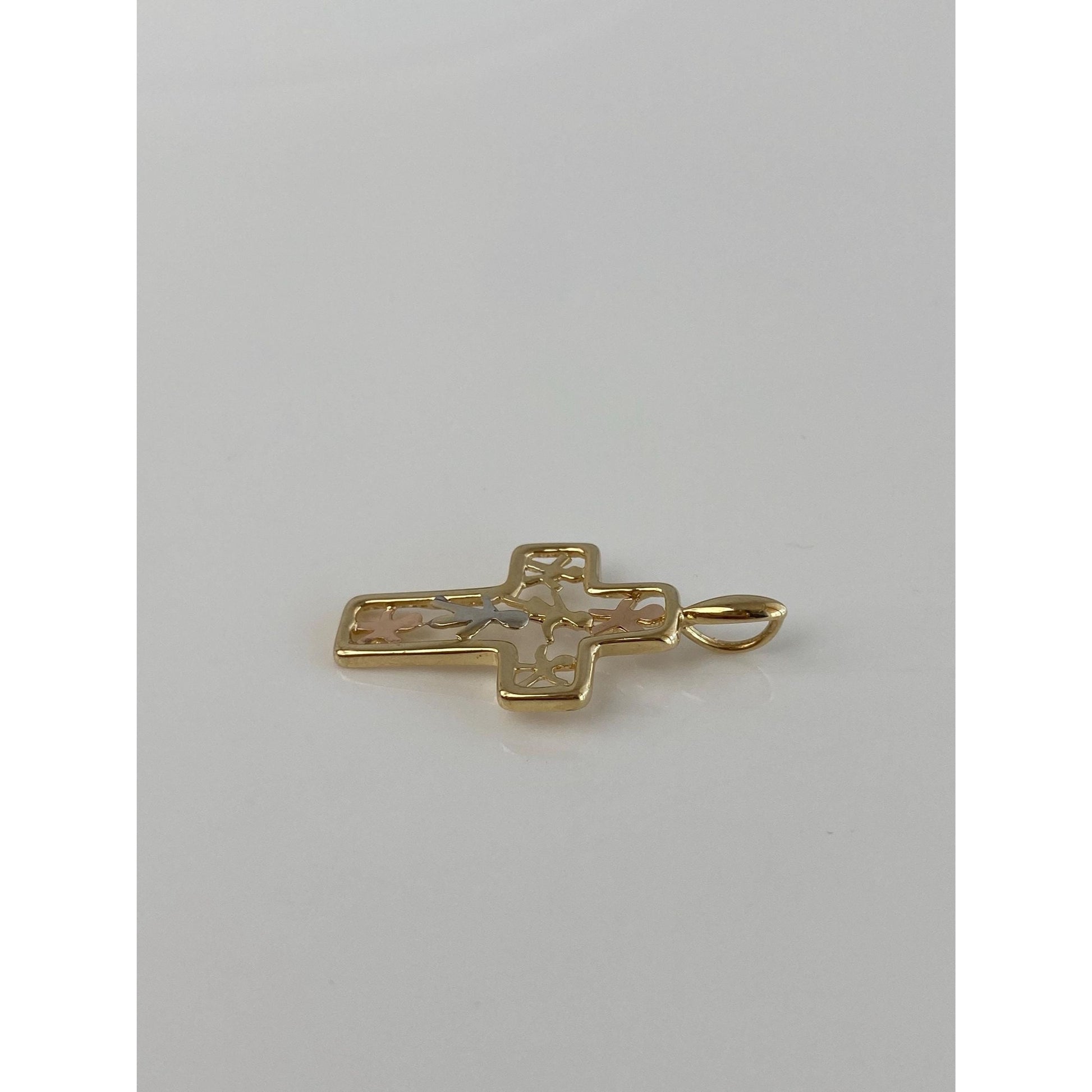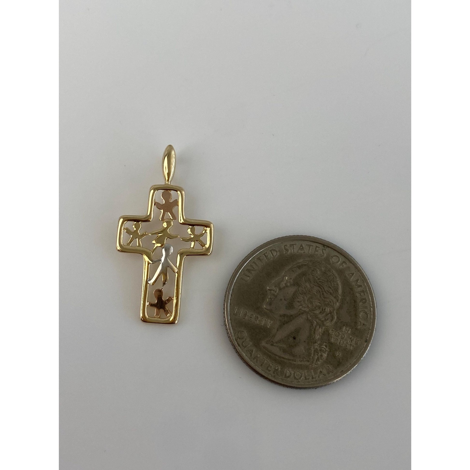 Vintage Solid 14k Tri Tone Gold Cross Child Charm