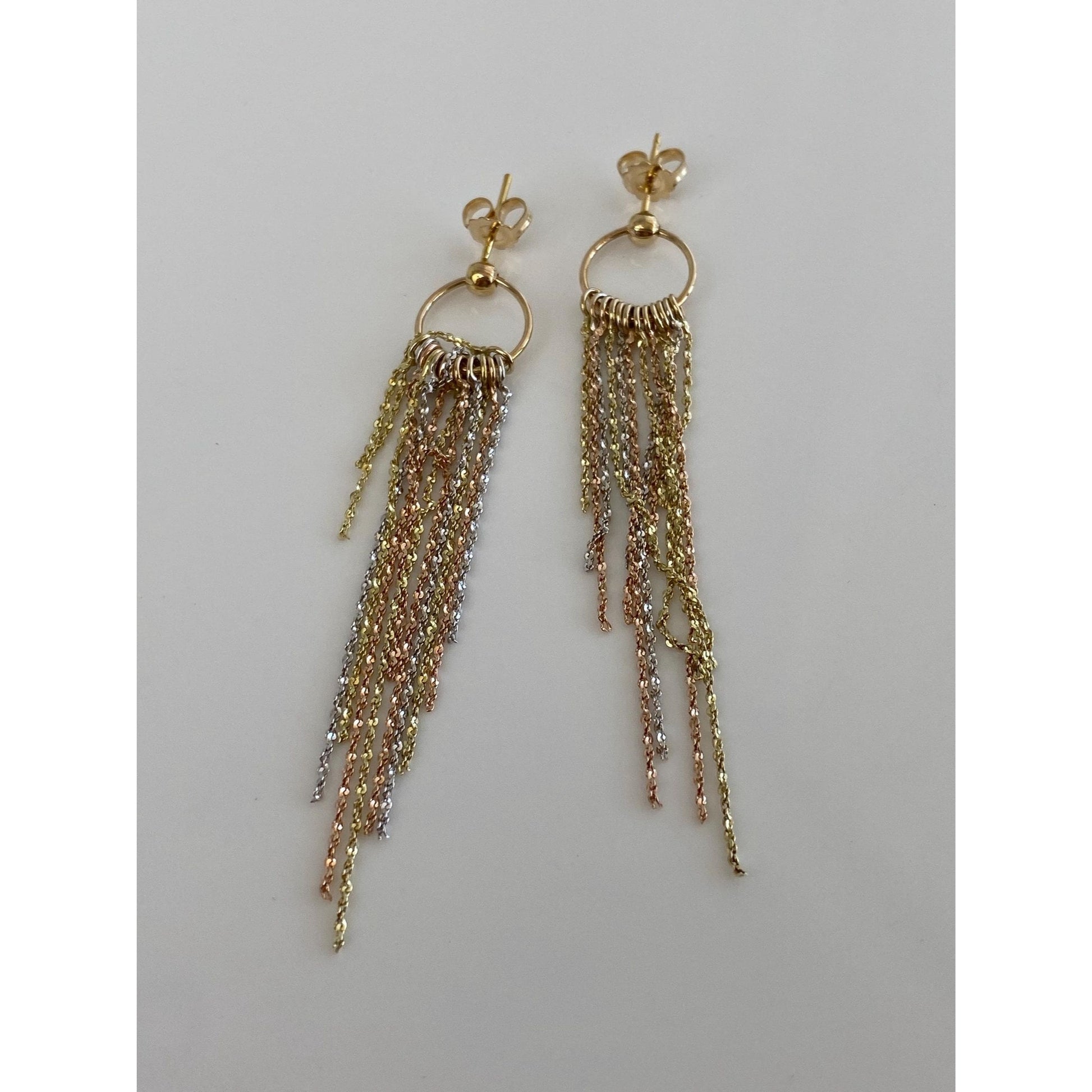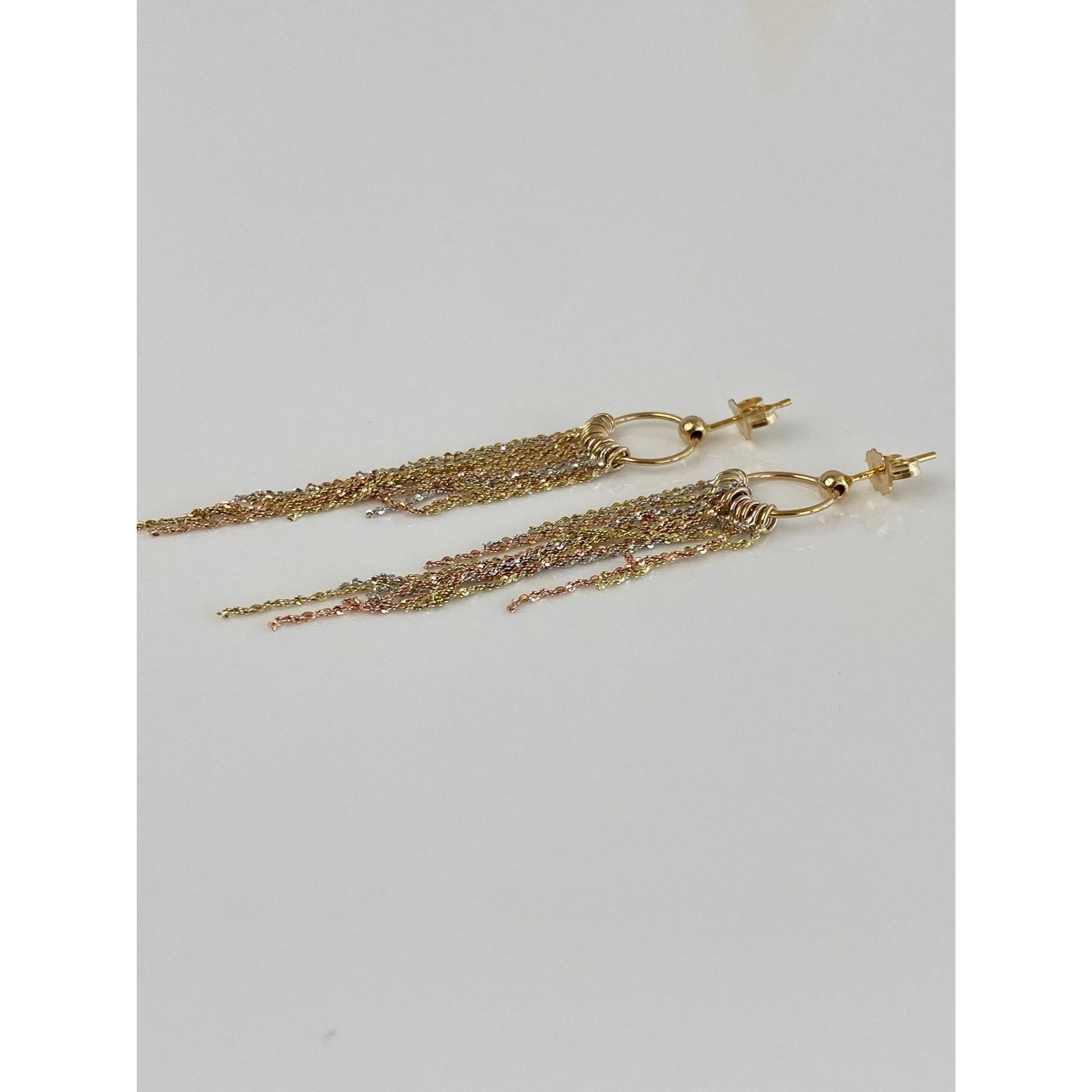 Vintage Solid 14k Tri Tone Gold Fringe Dangle Stud Earrings
