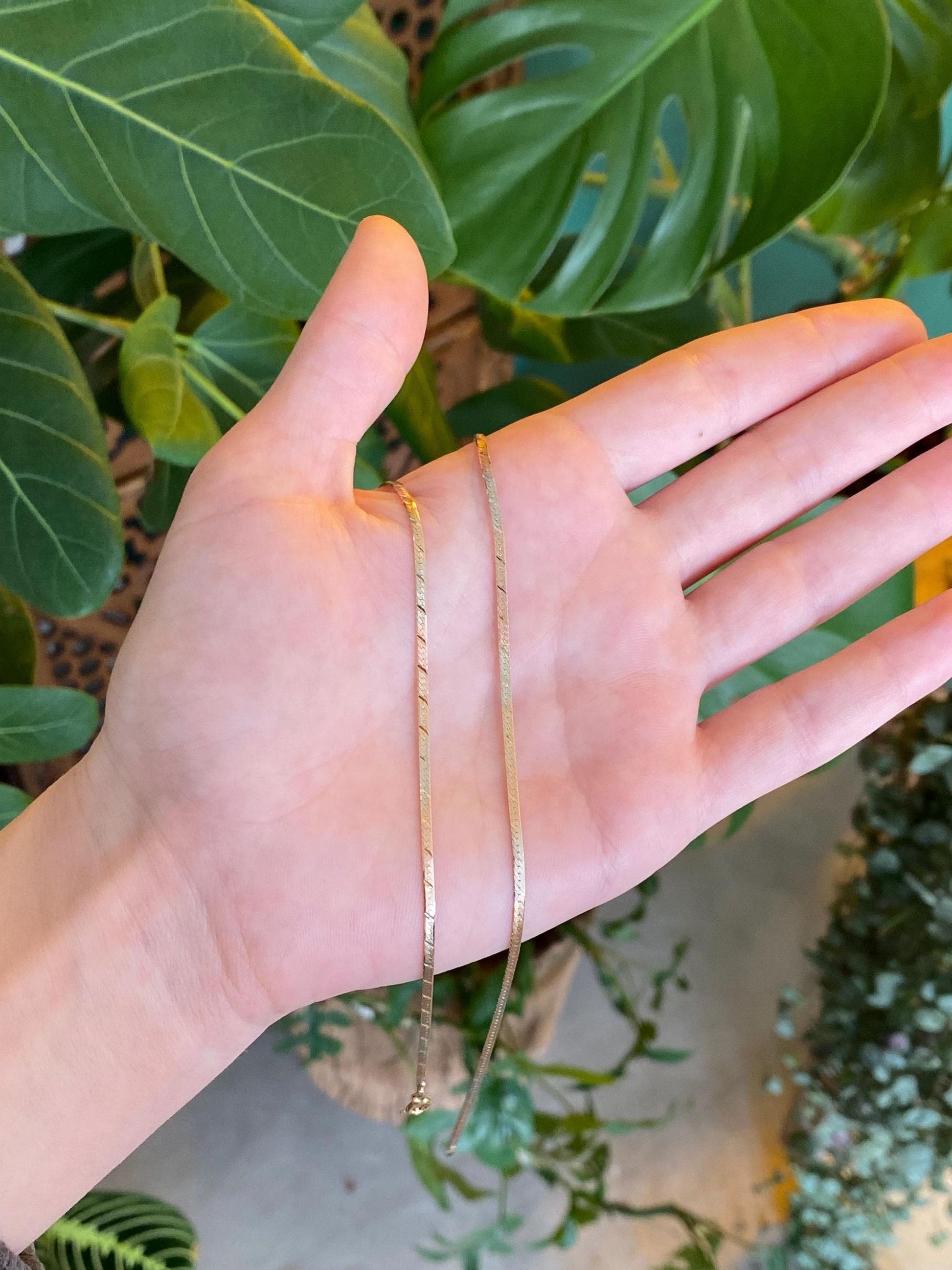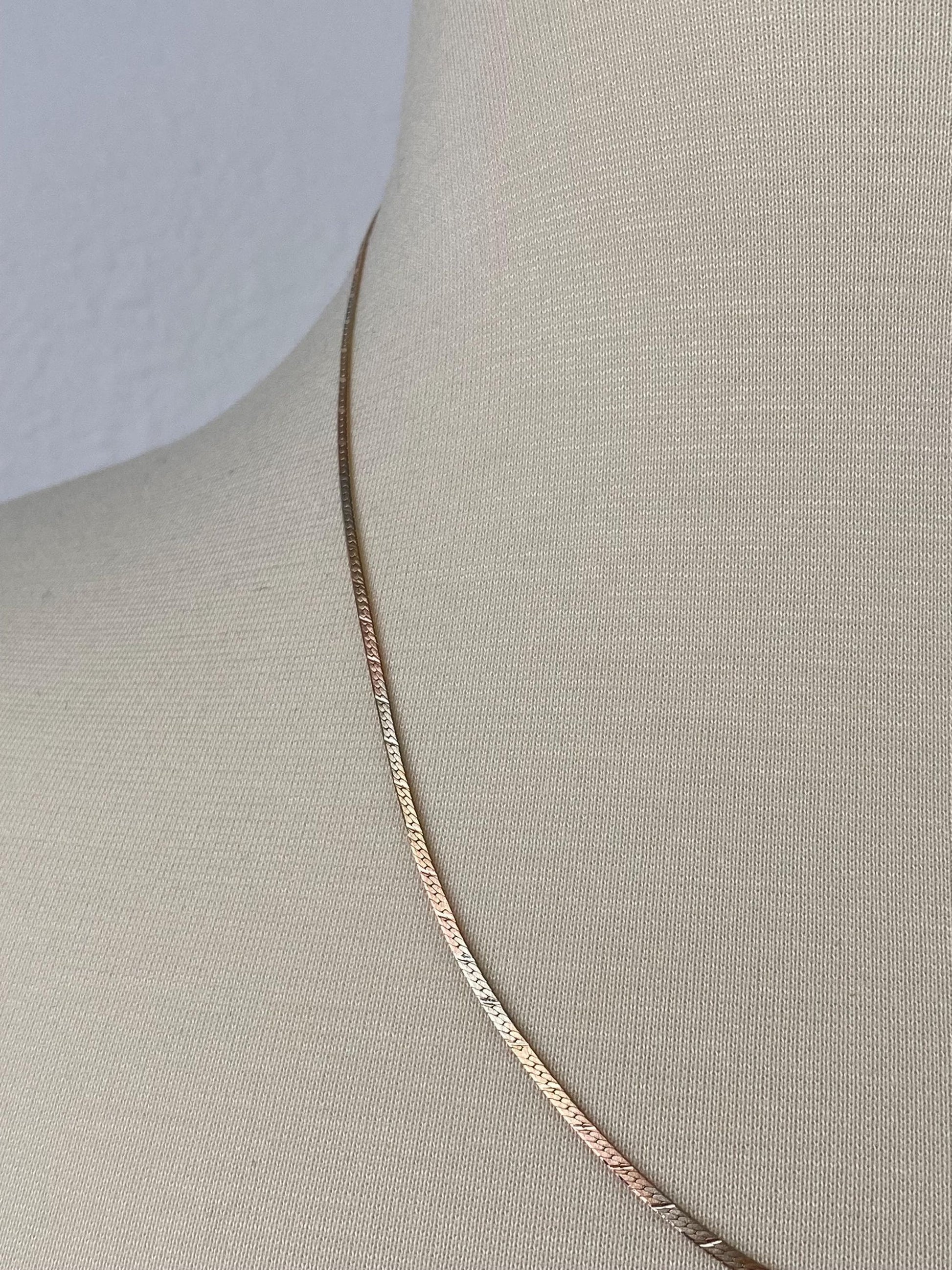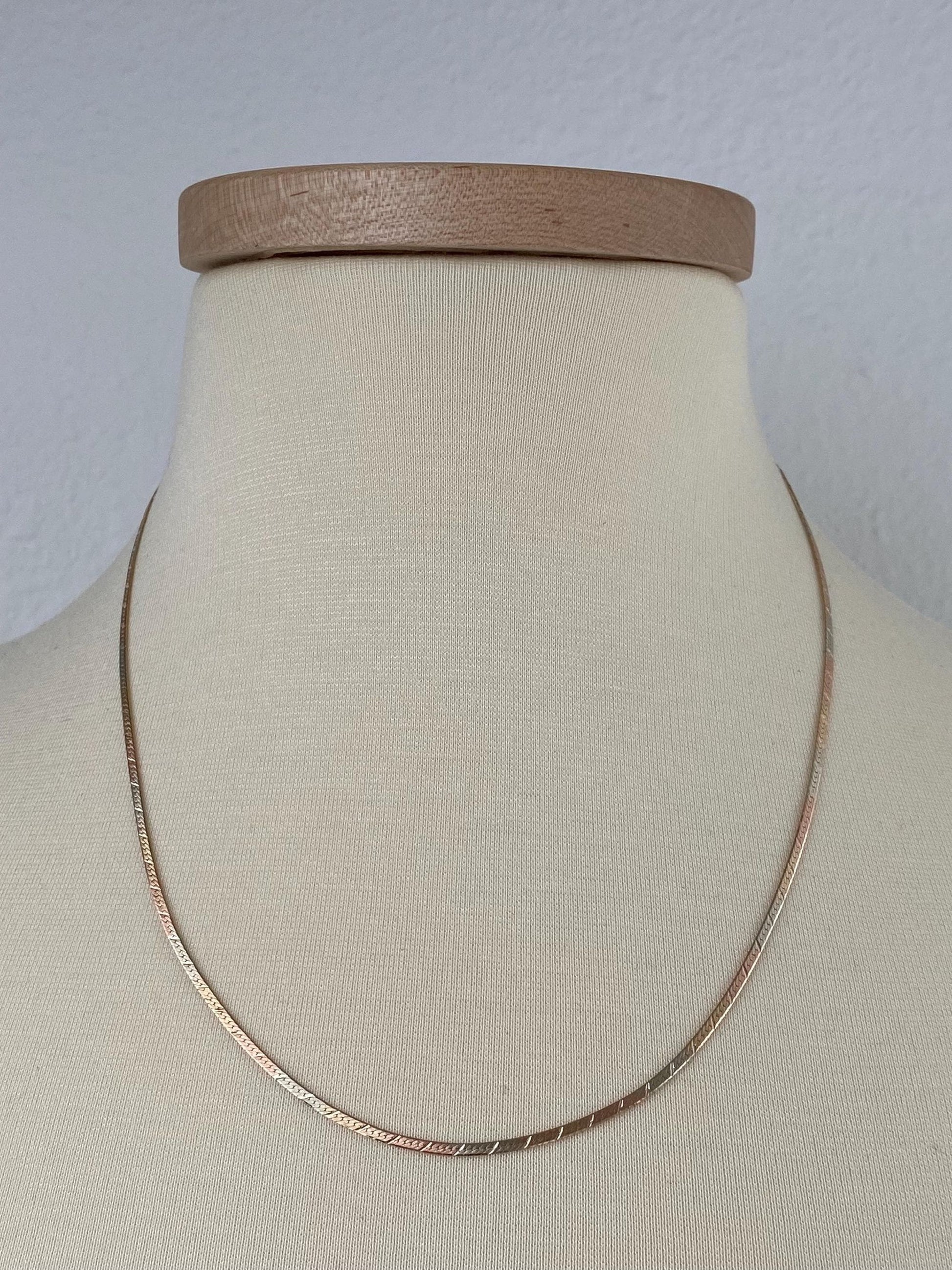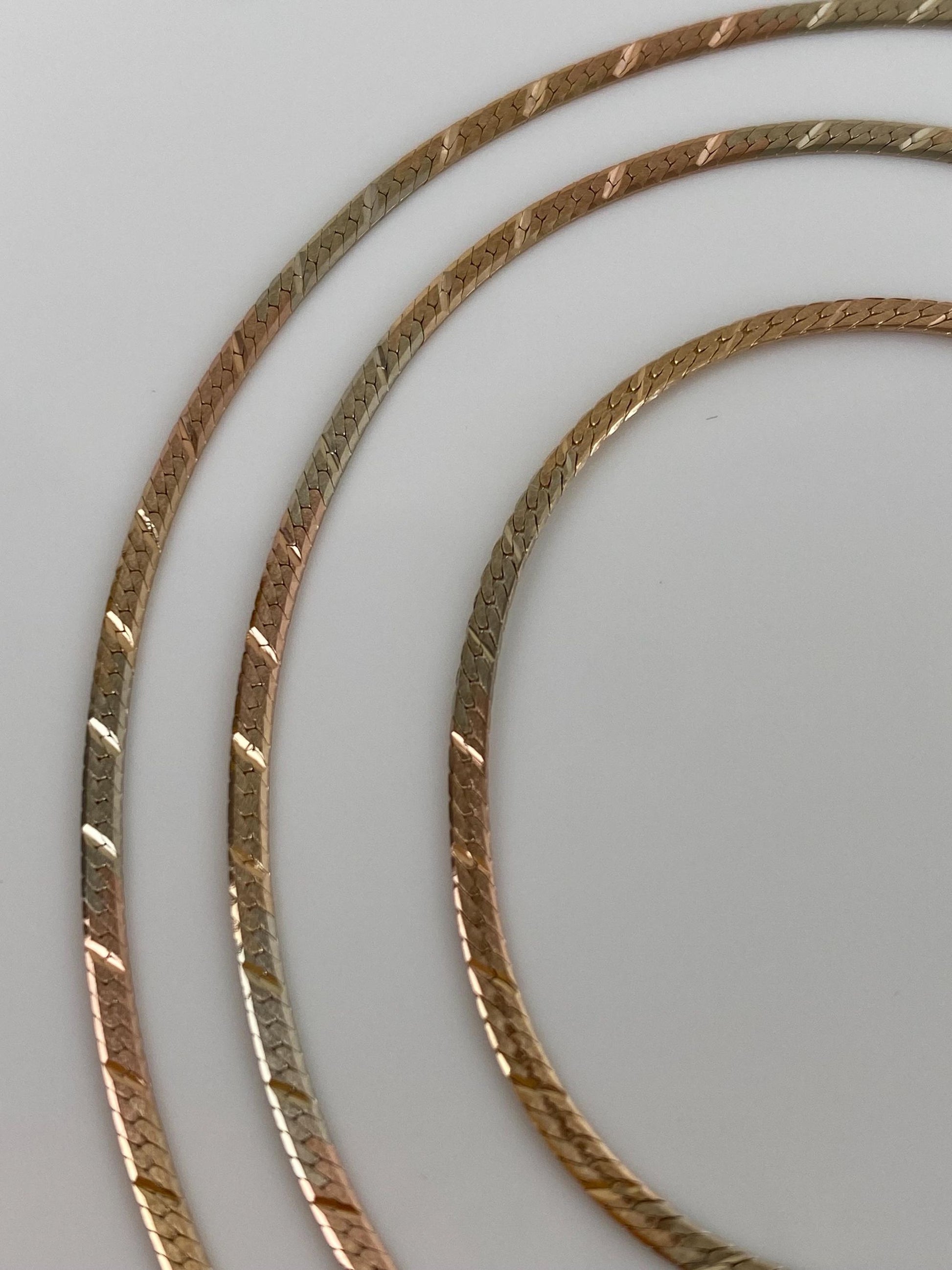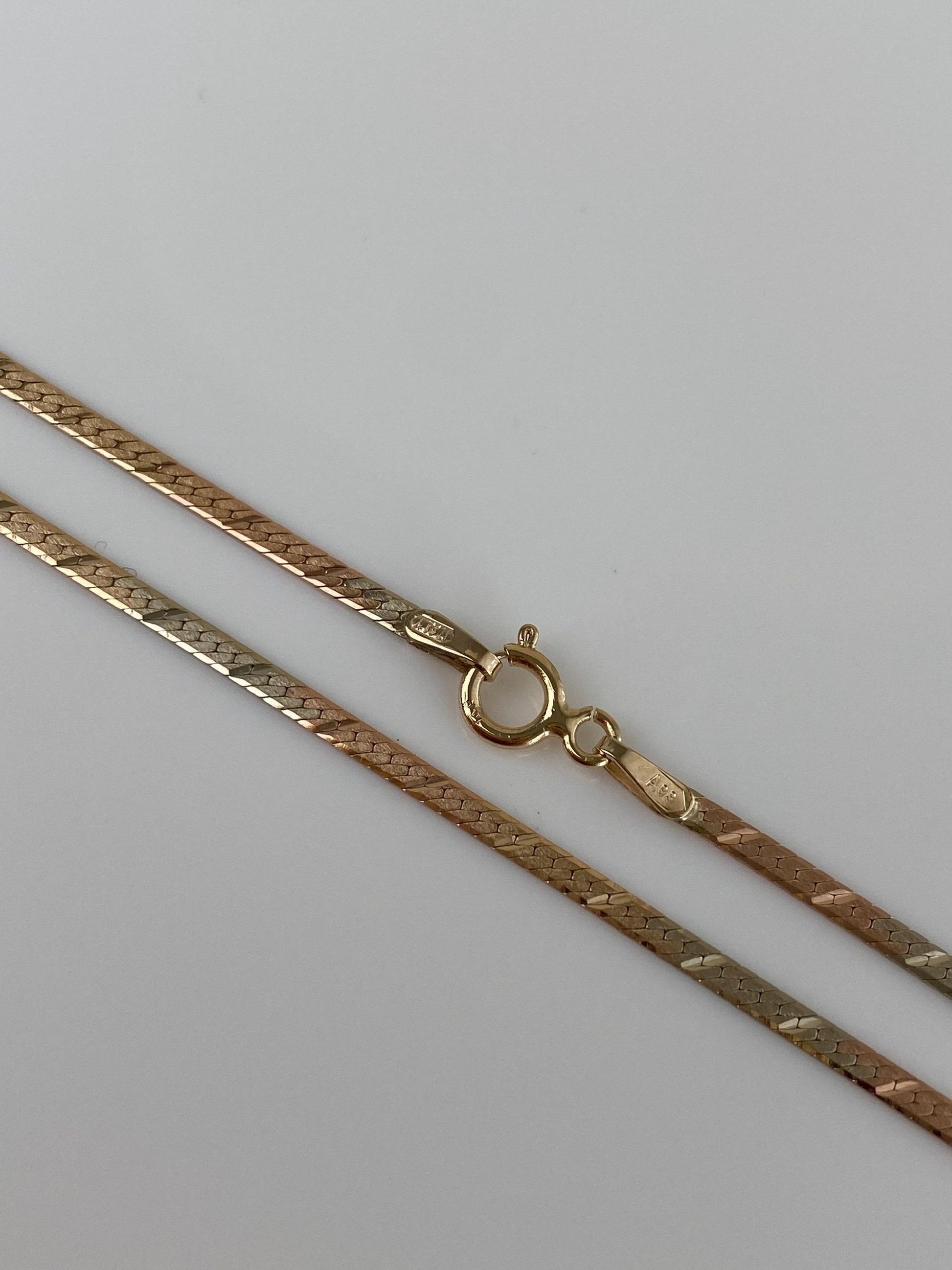 Vintage Solid 14k Tri Tone Gold Pattern Herringbone Chain Necklace - 20.25 inches