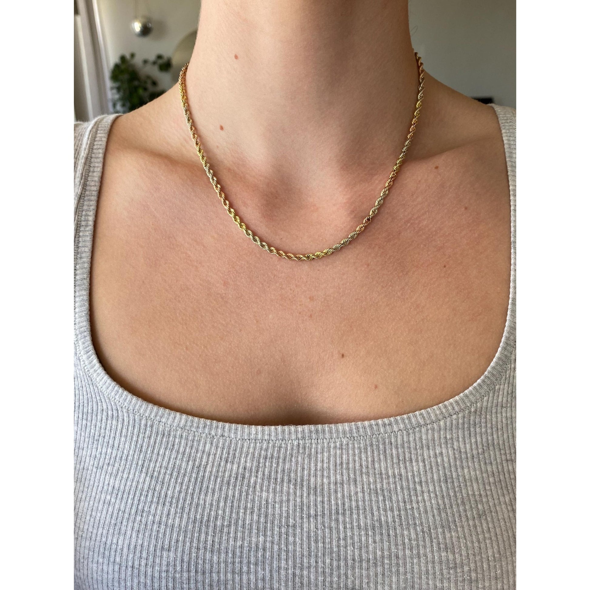 Vintage Solid 14k Tri Tone Gold Rope Chain Necklace - 17 inches