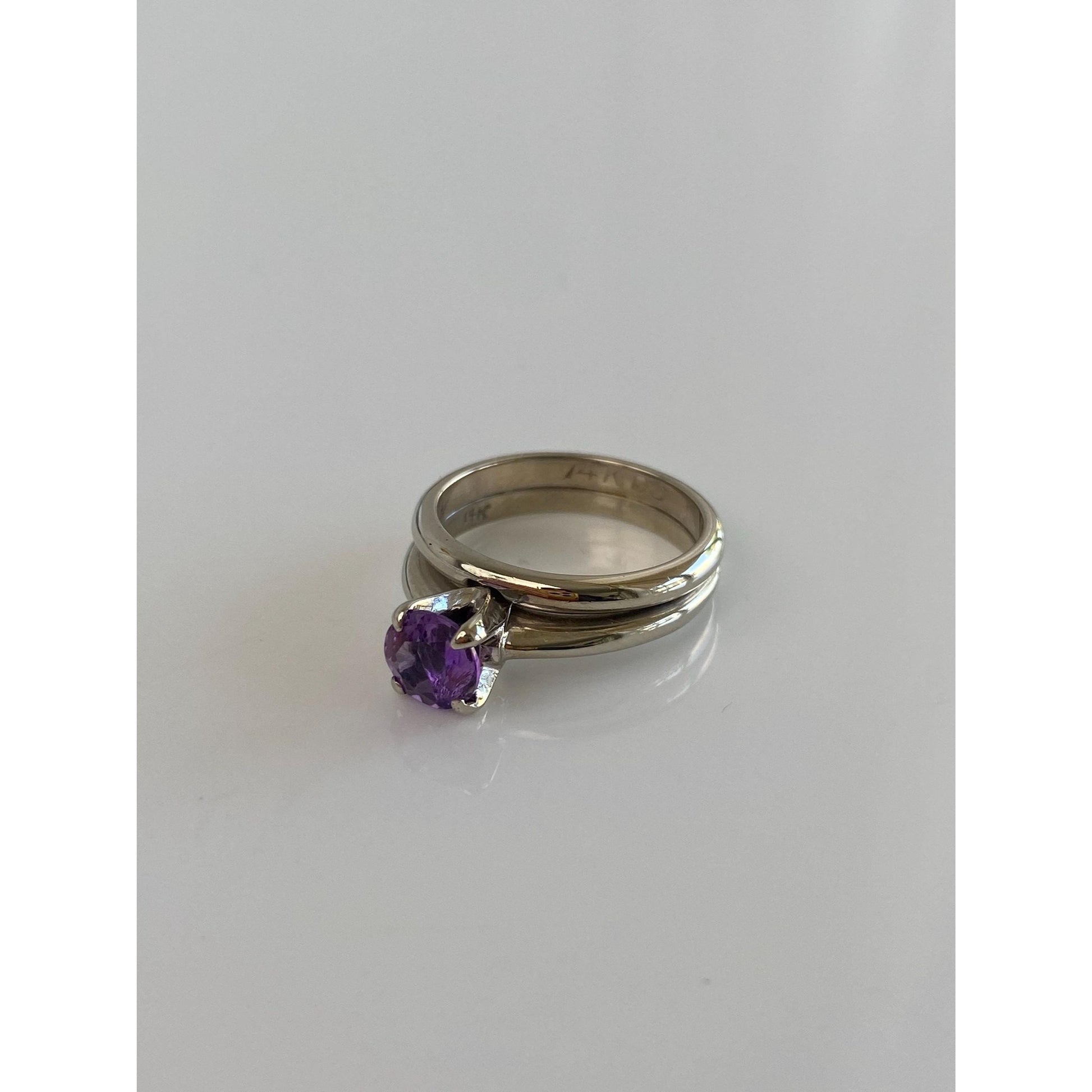 Vintage Solid 14k White Gold Amethyst Double Ring Band - Size 4.75