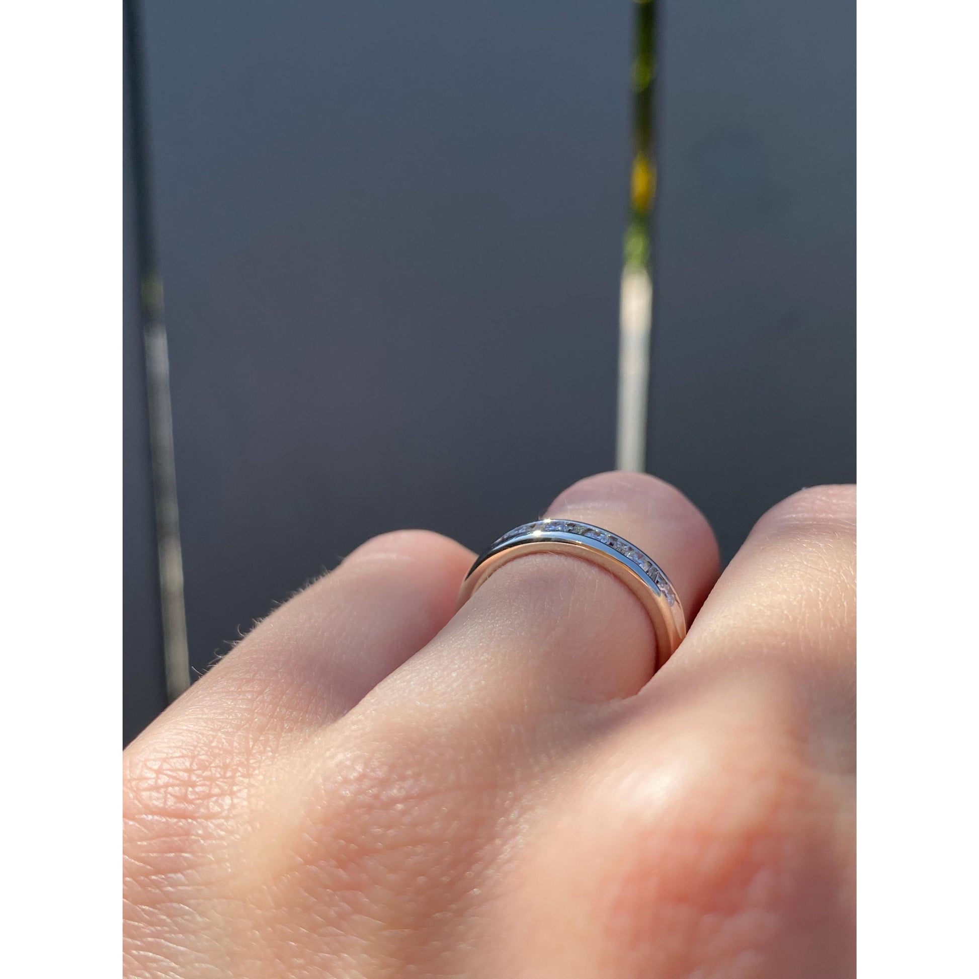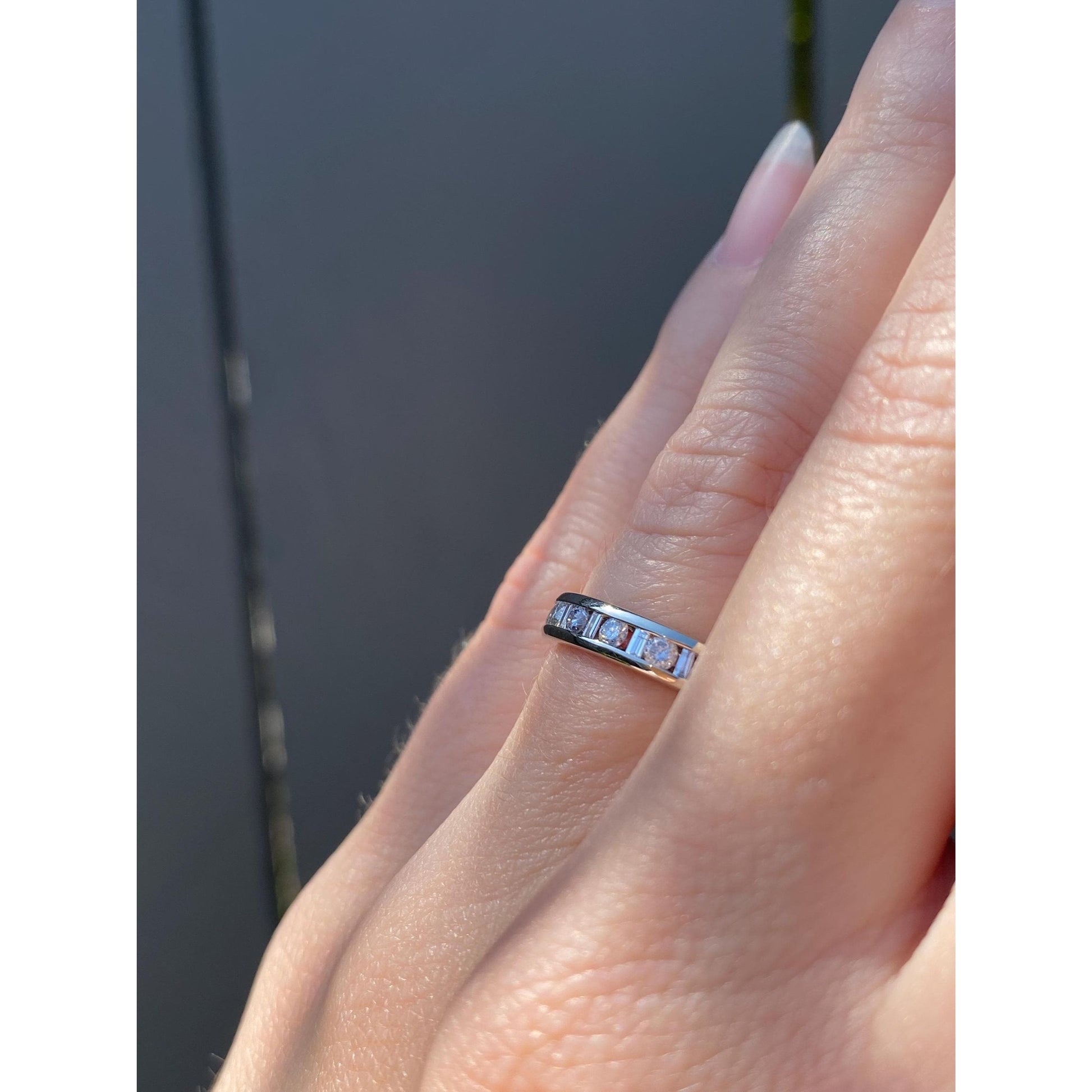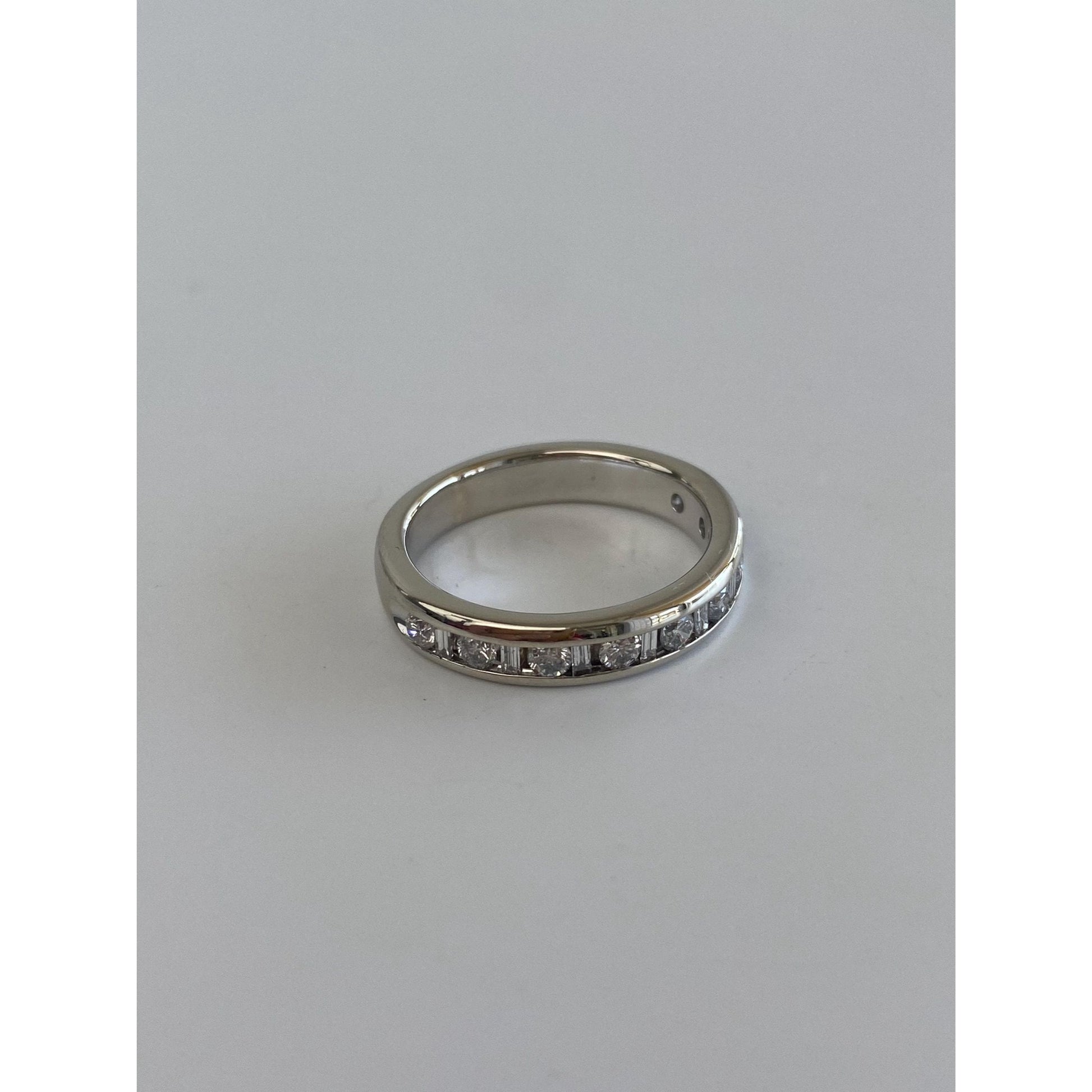 Vintage Solid 14k White Gold Baguette & Round Diamond Eternity Ring Band - Size 5