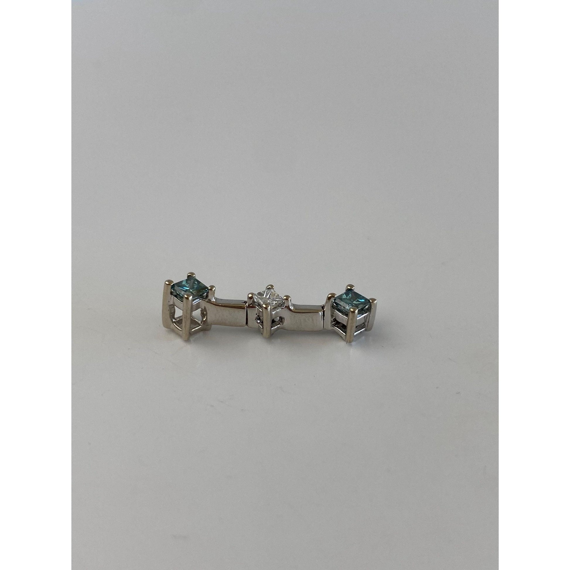 Vintage Solid 14k White Gold Blue & Clear Diamond Charm