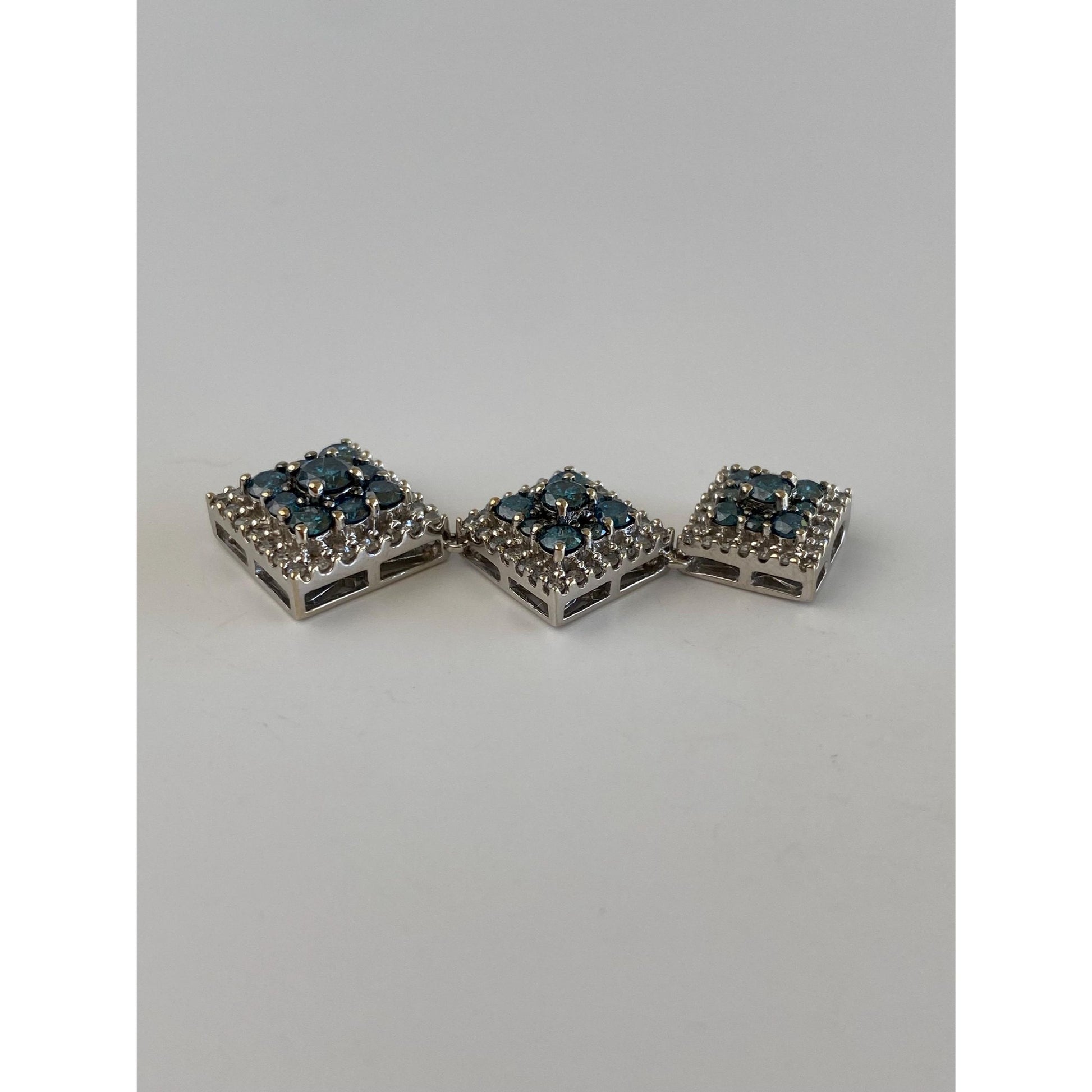 Vintage Solid 14k White Gold Blue & Clear Diamond Dangle Charm
