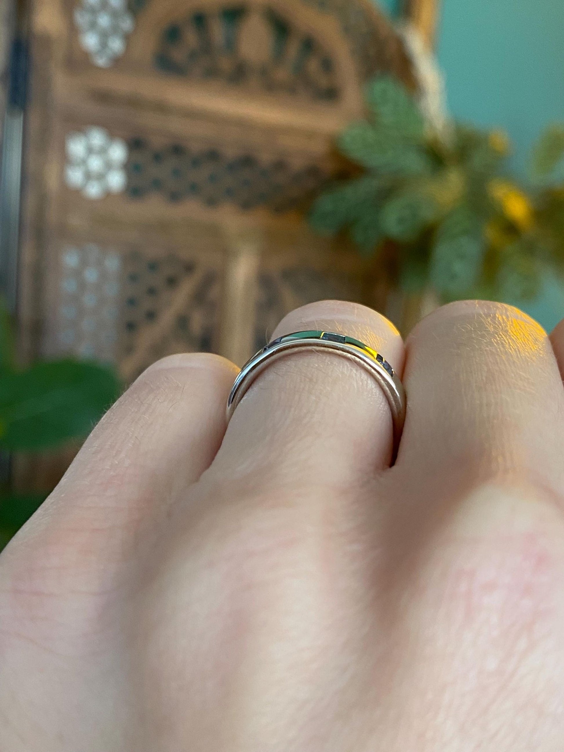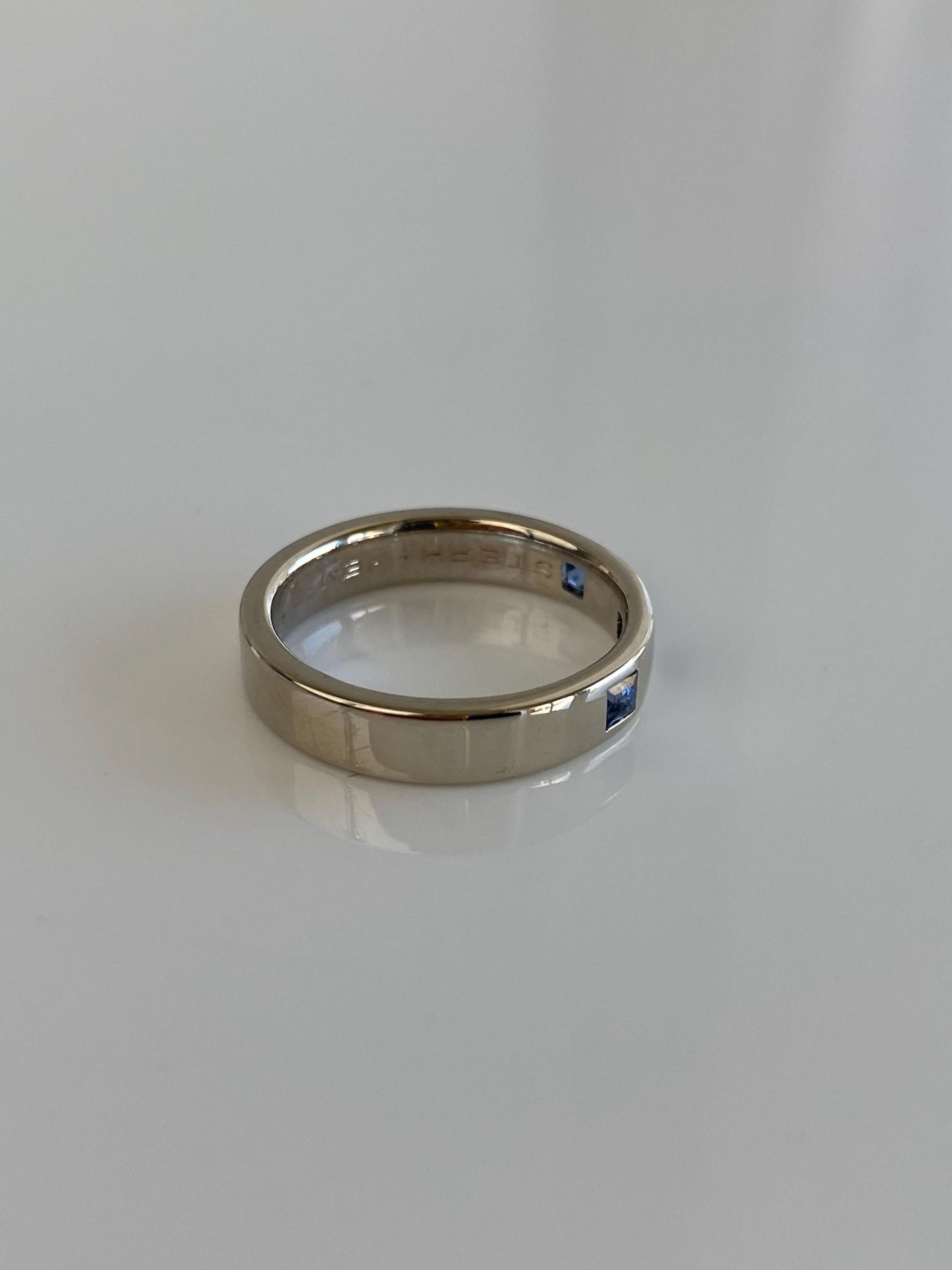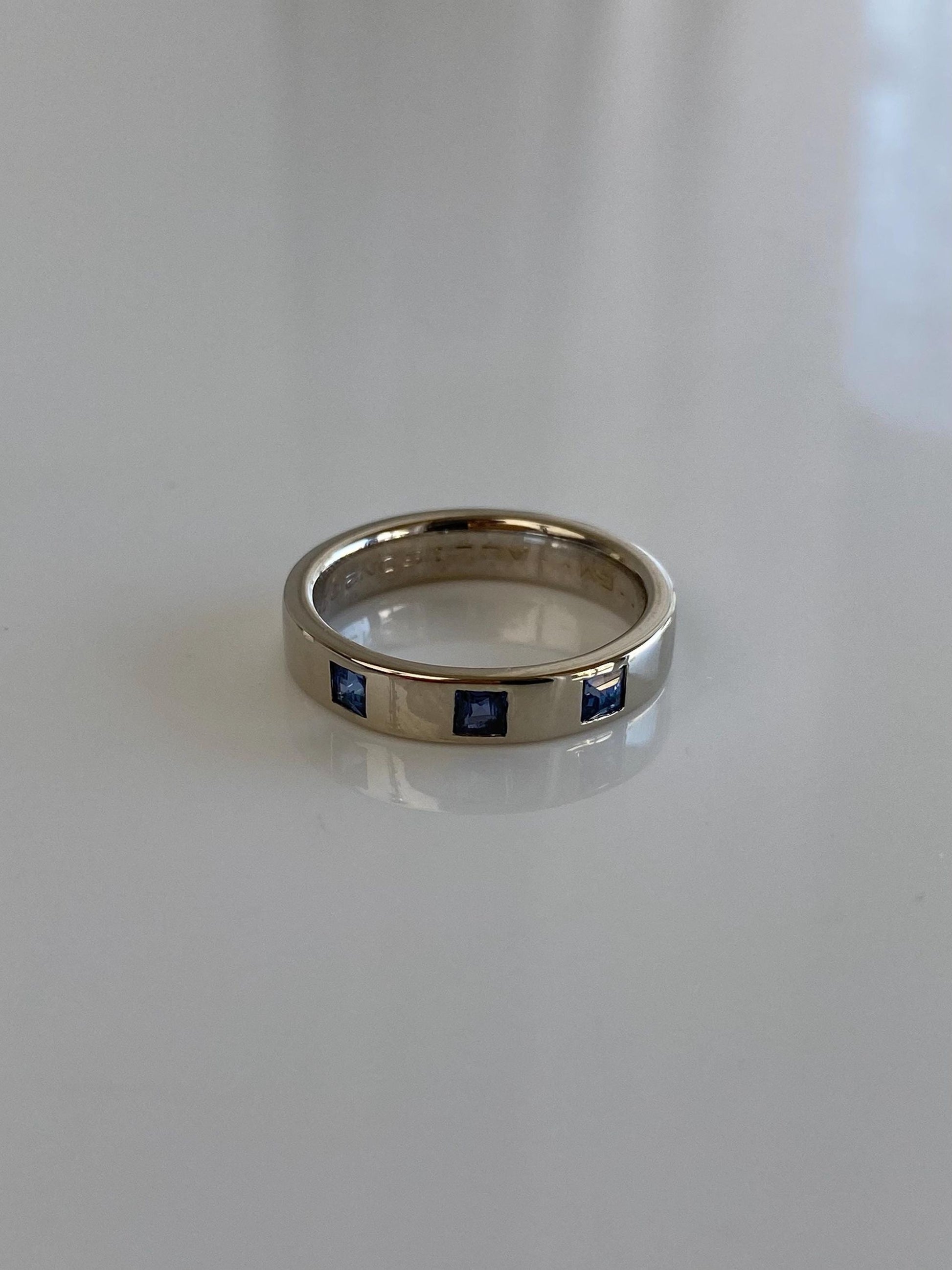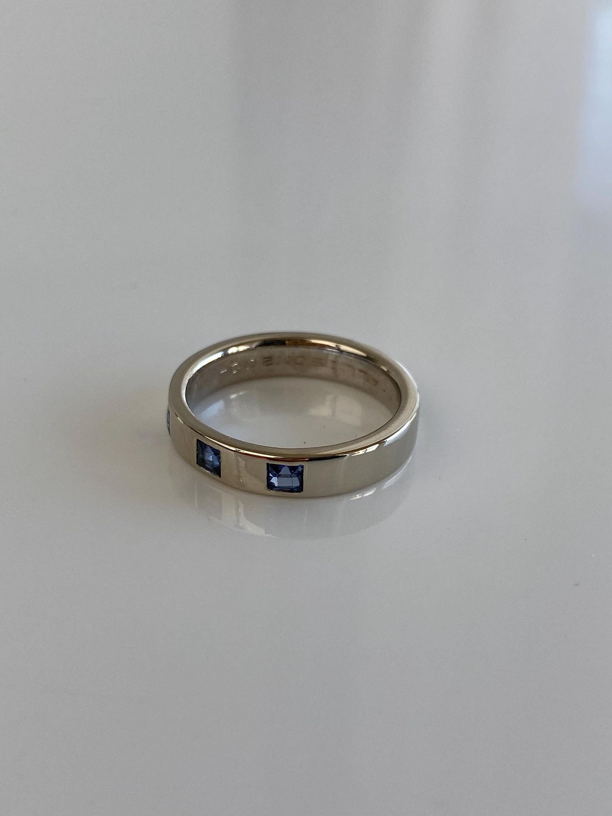 Vintage Solid 14k White Gold Blue Sapphire Square Edge Ring Band - Size 5.25