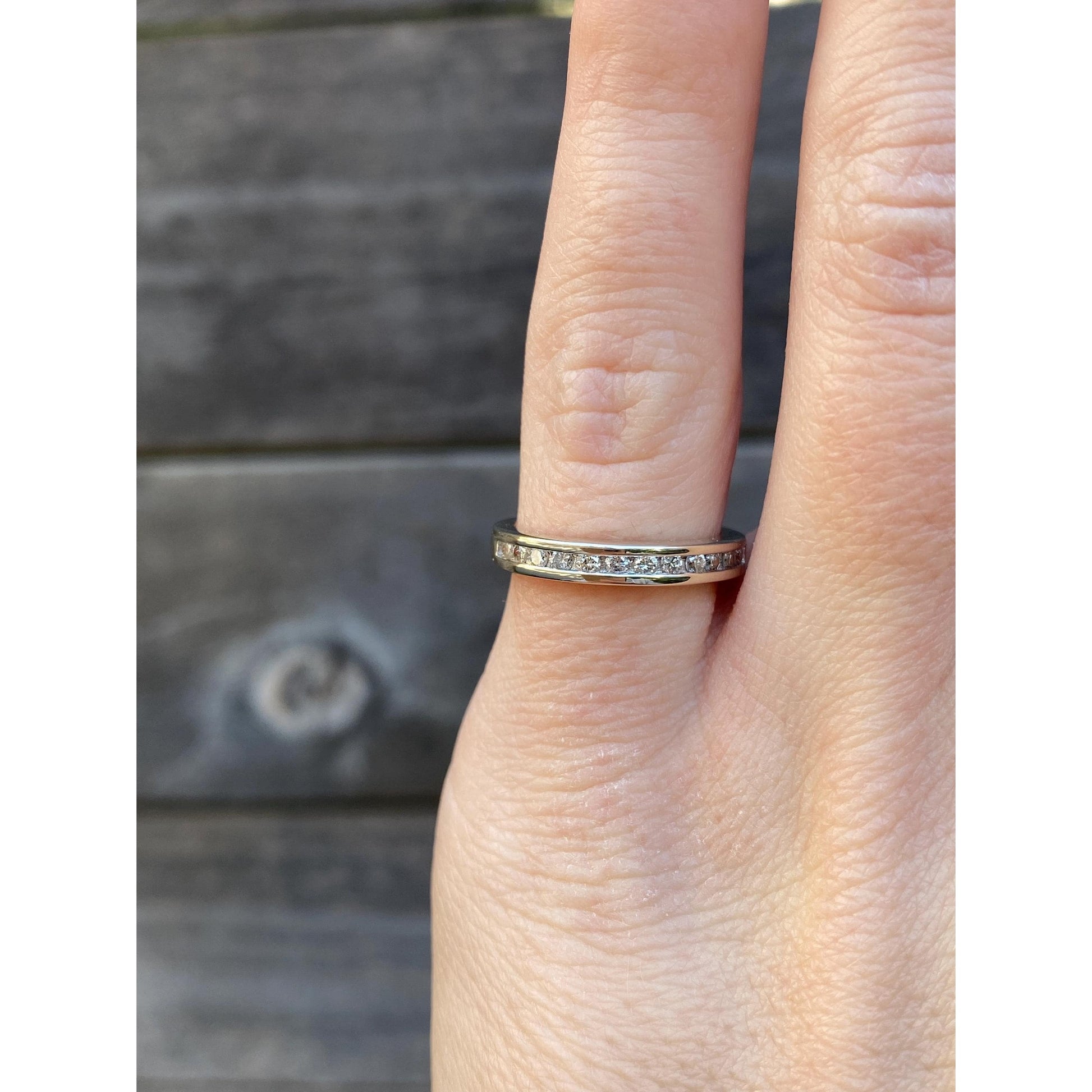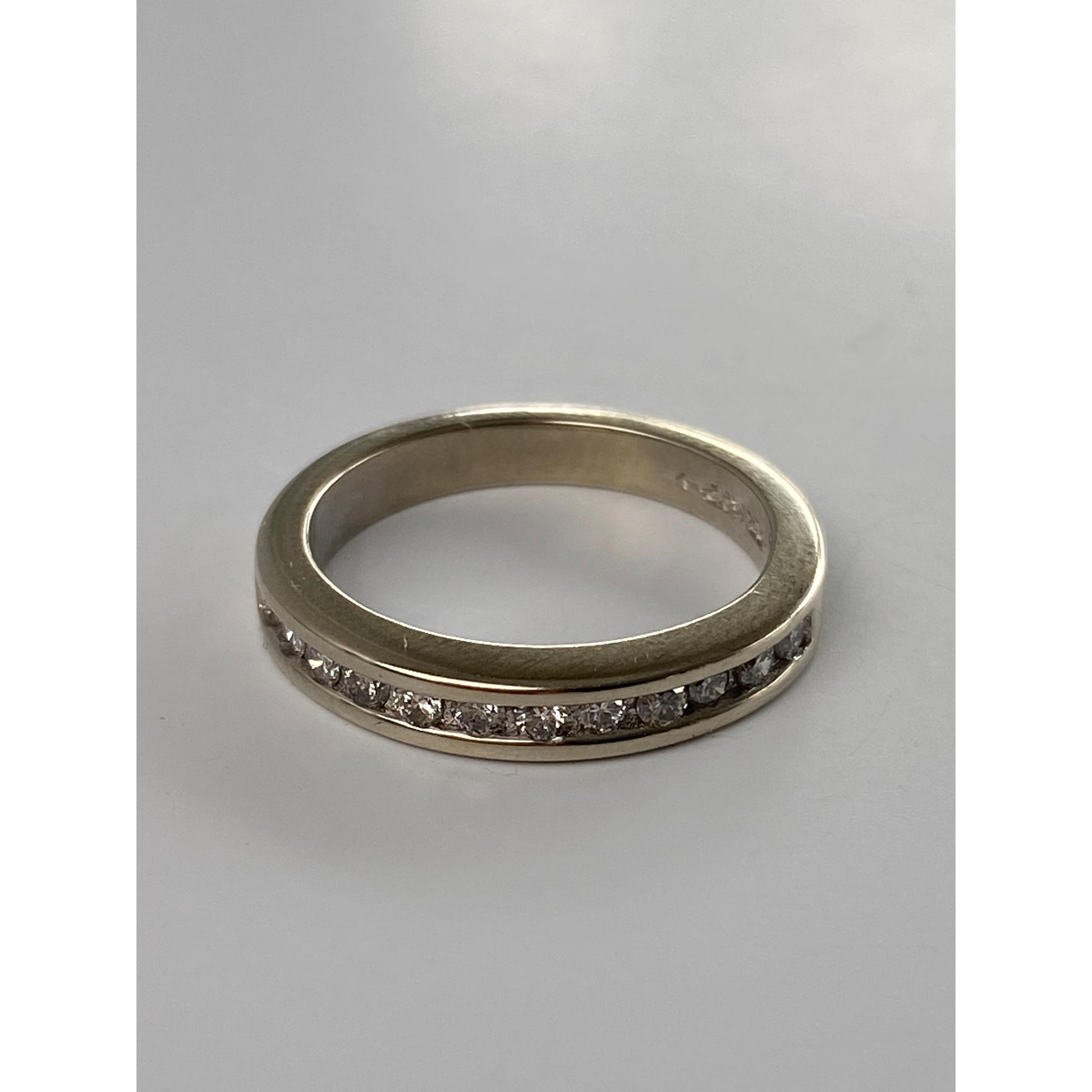 Vintage Solid 14k White Gold Channel Set Diamond Ring Band - Size 4