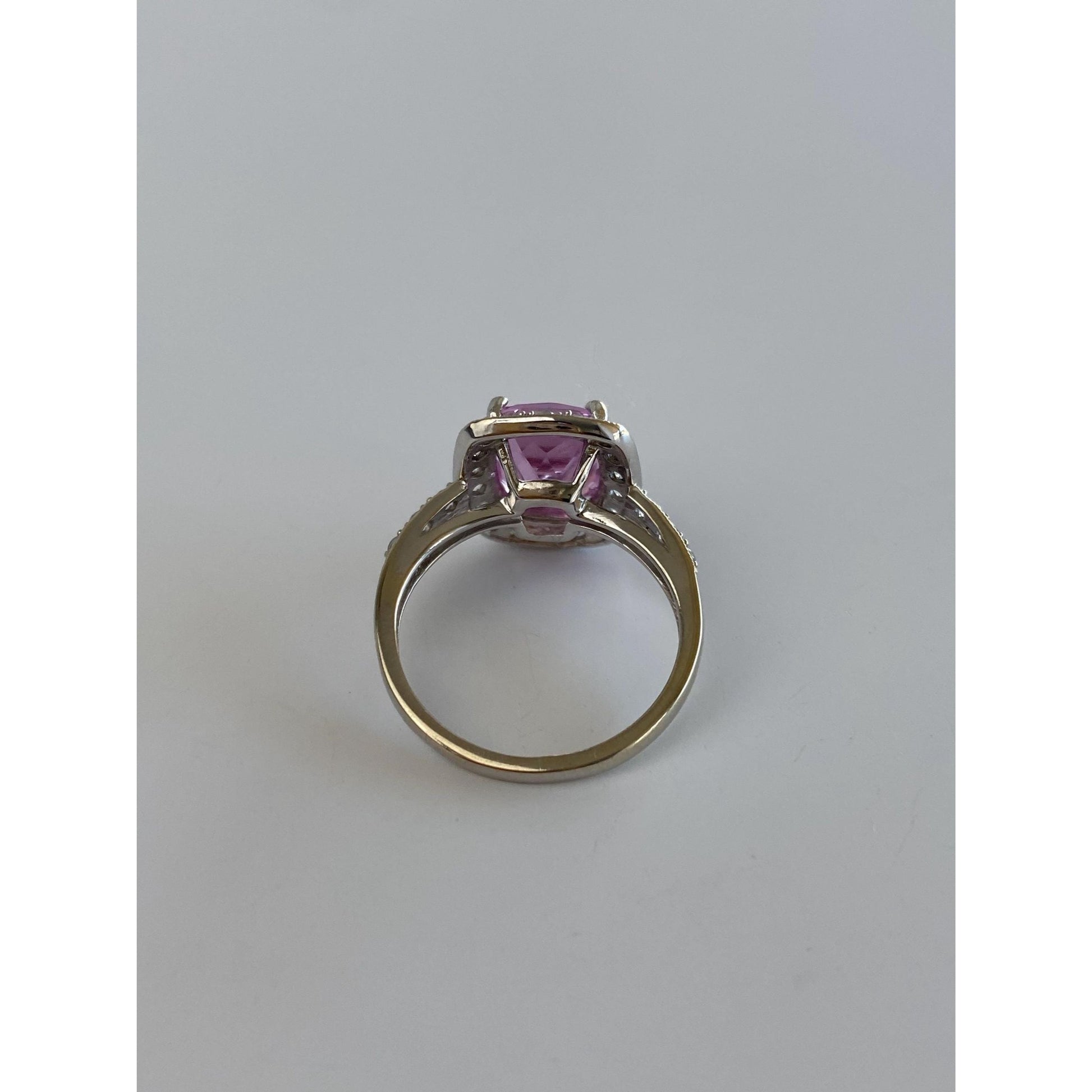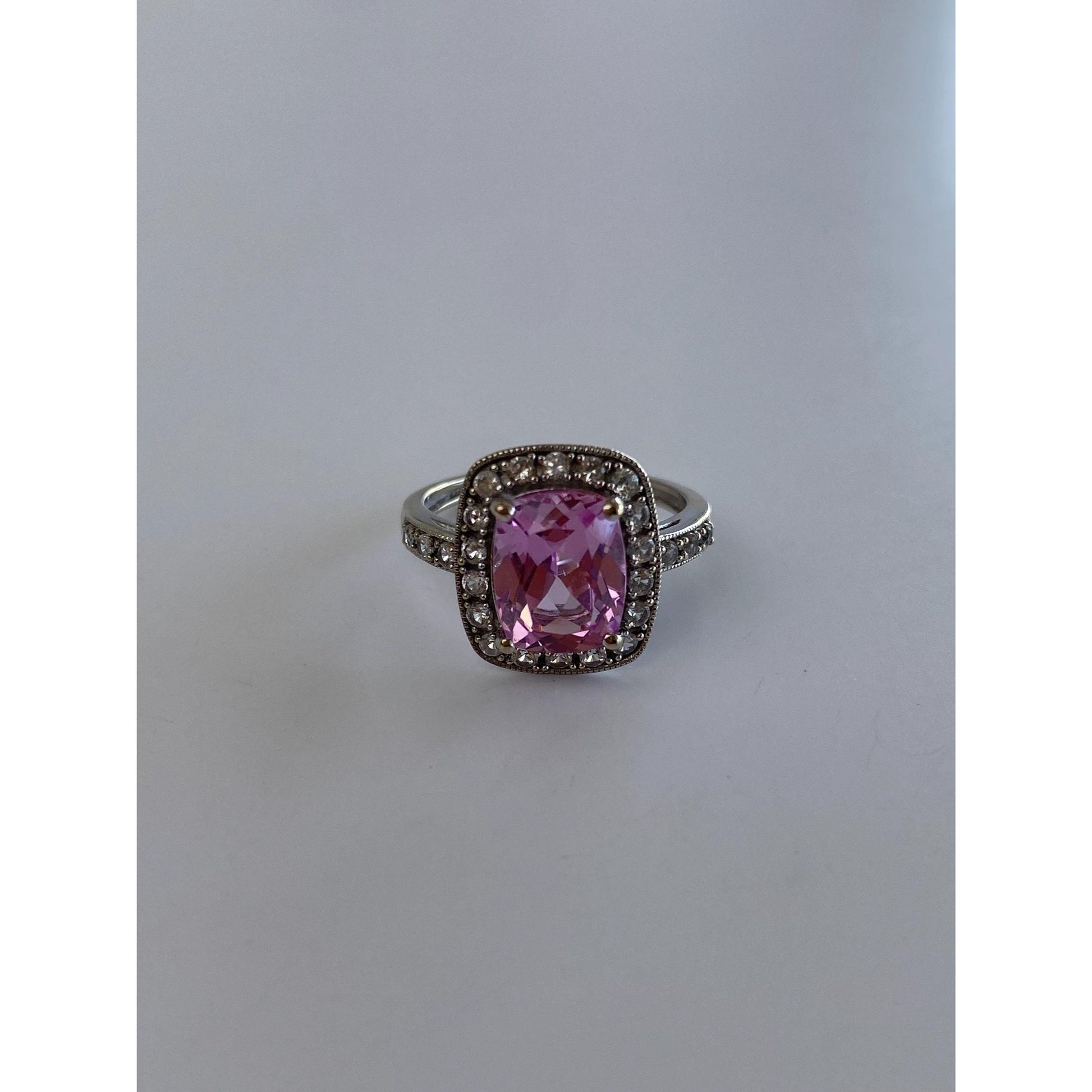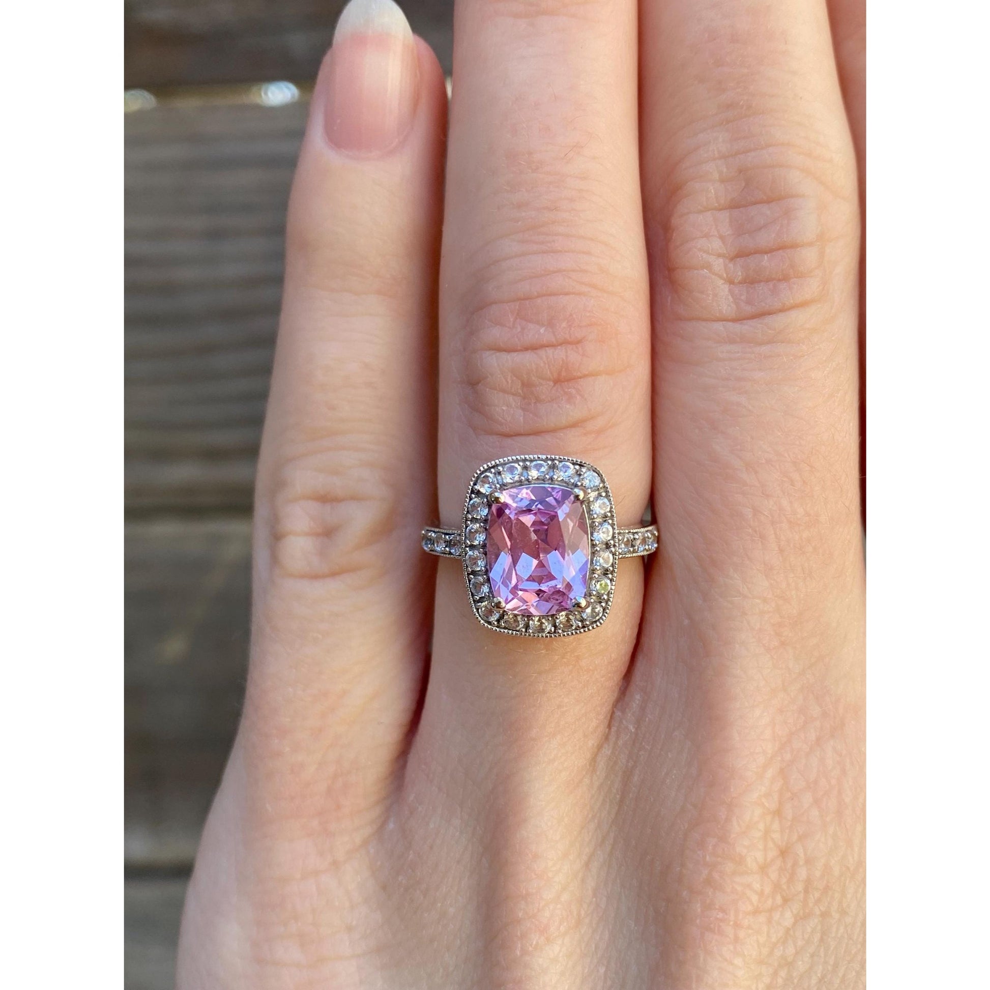 Vintage Solid 14k White Gold Clear & Pink Sapphire Ring - Size 4.25