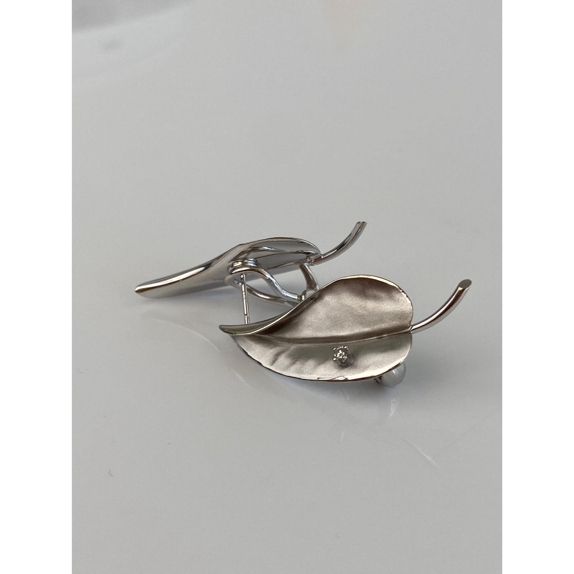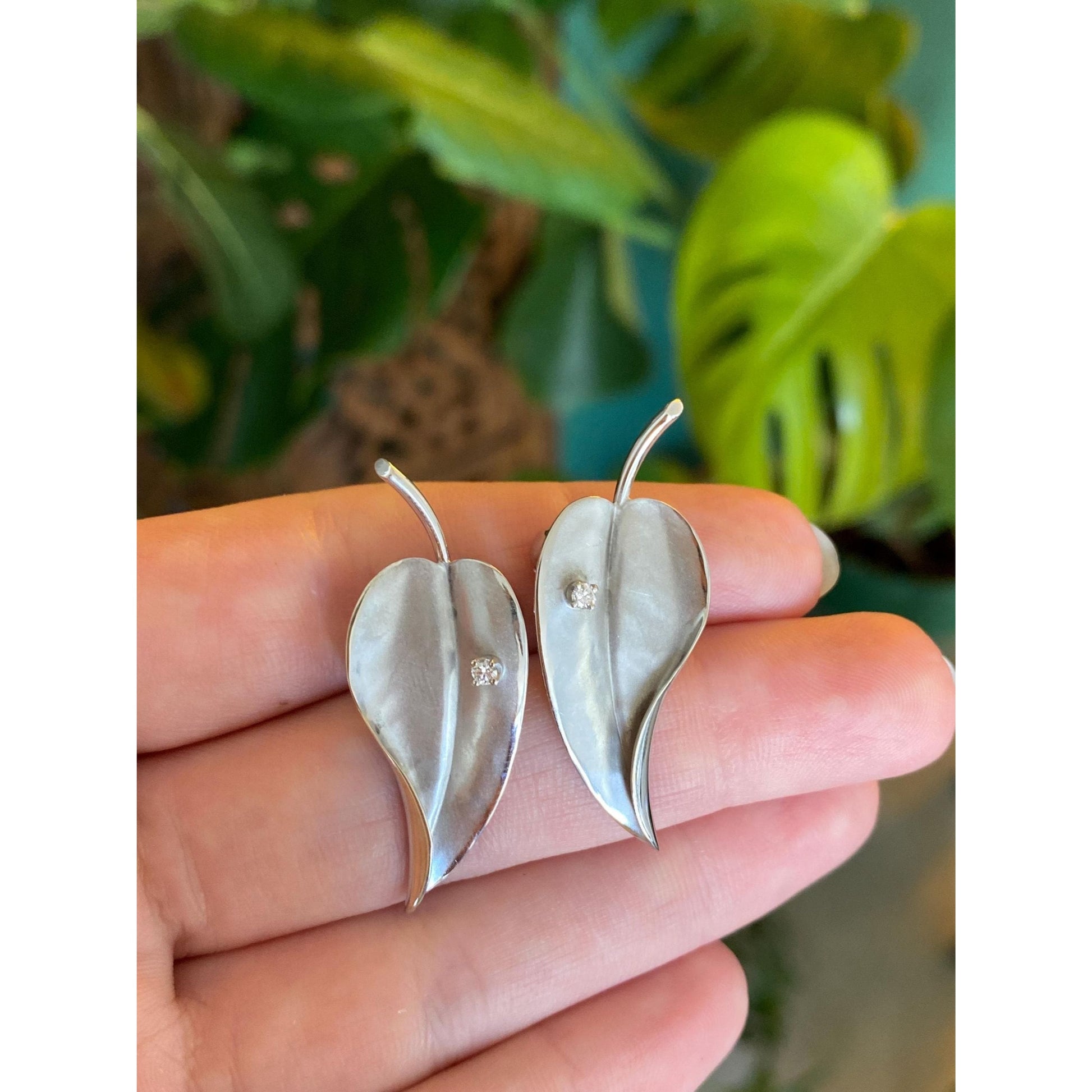 Vintage Solid 14k White Gold Clear Sapphire Leaf Drop Earrings
