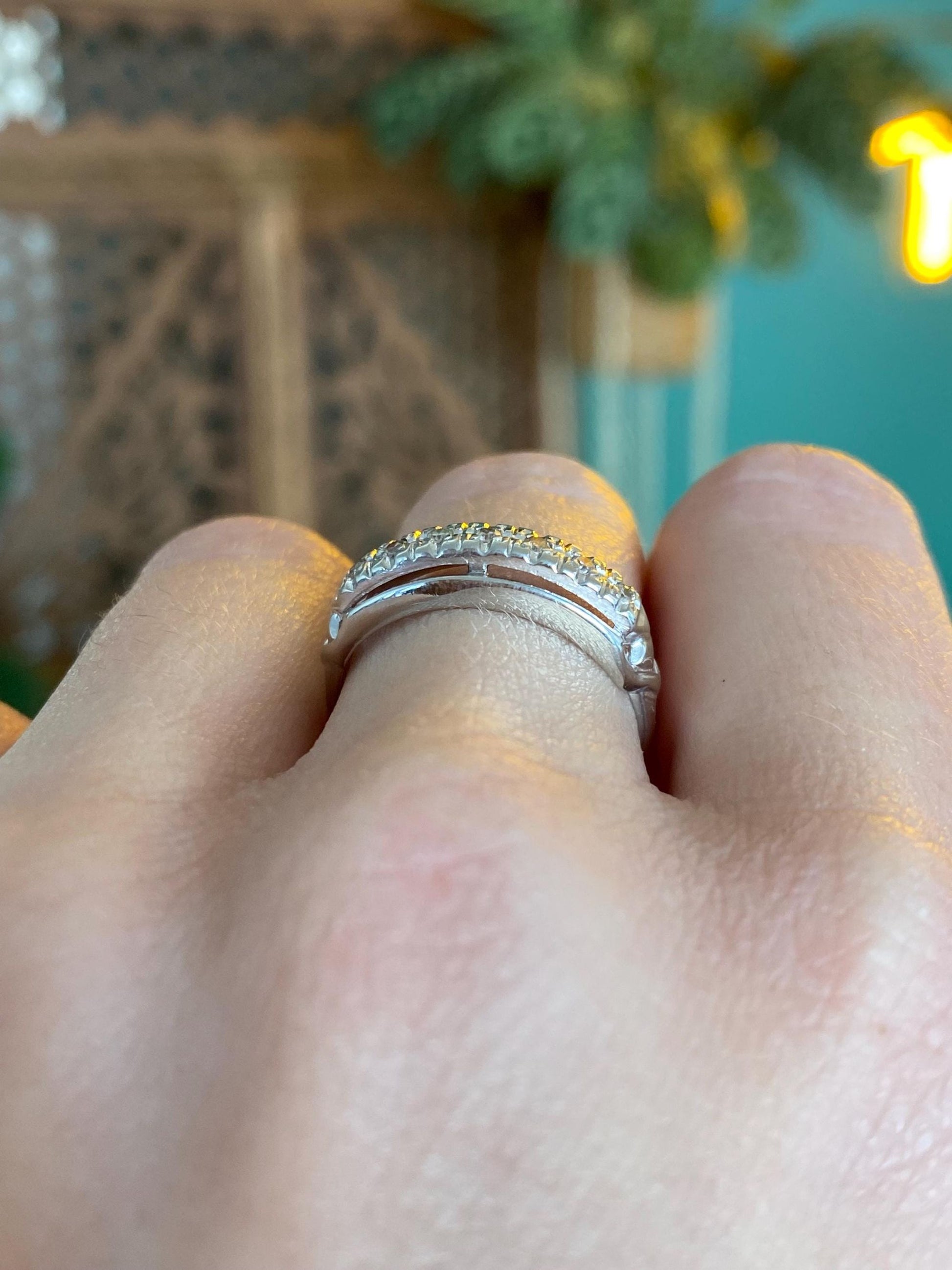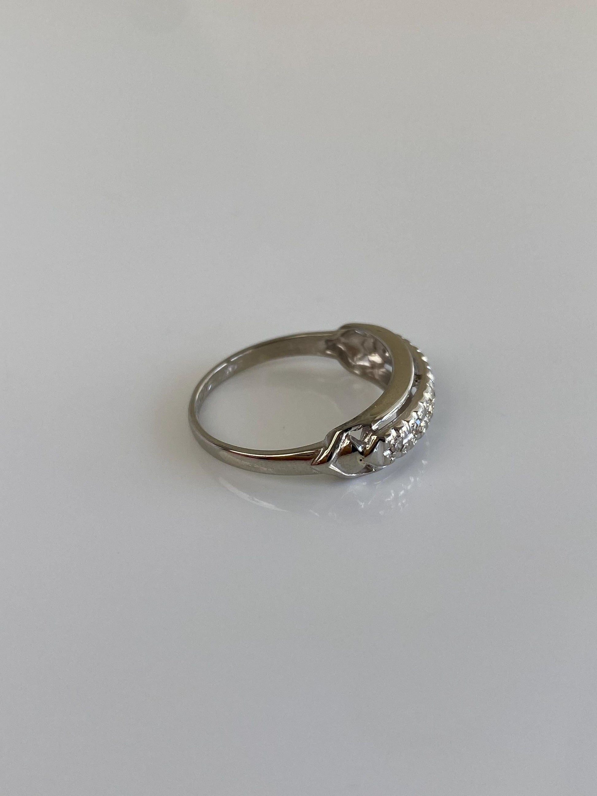 Vintage Solid 14k White Gold Clear Spinel Ring Band - Size 6.75