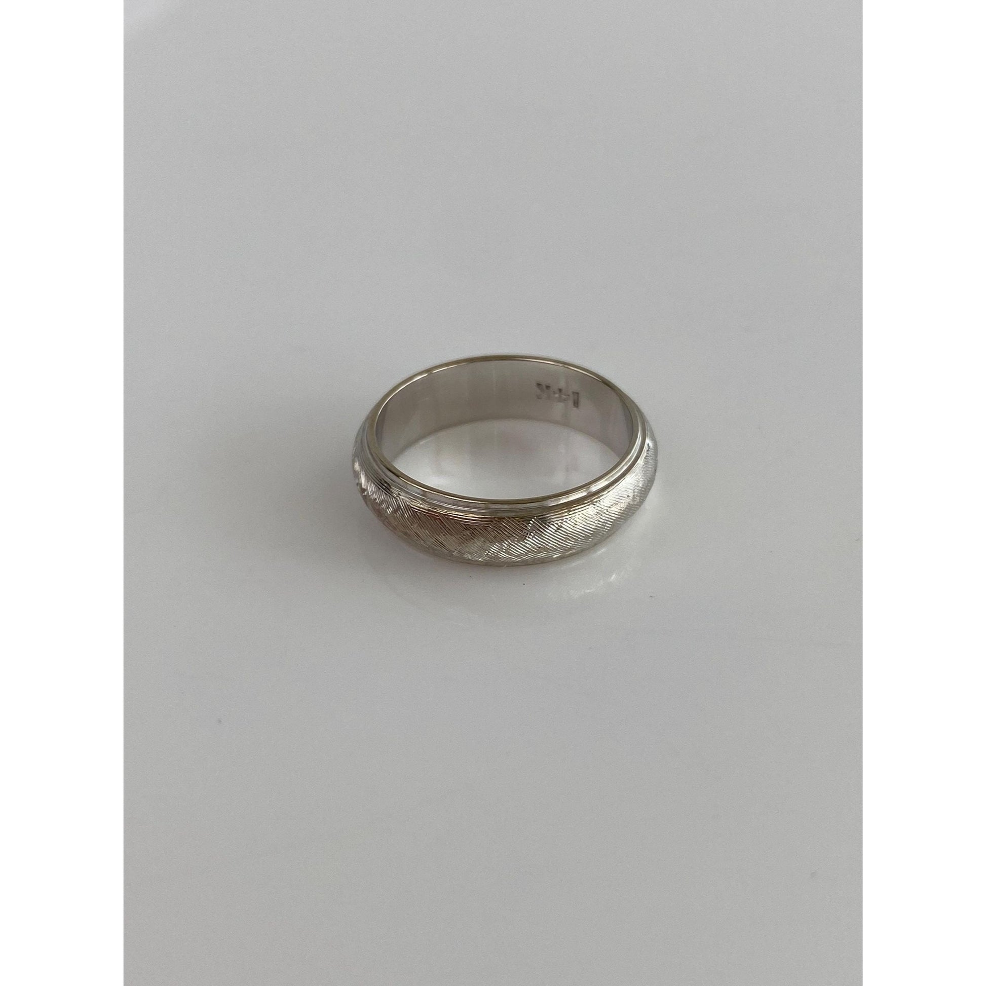 Vintage Solid 14k White Gold Crosshatch Ring Band - Size 5.25