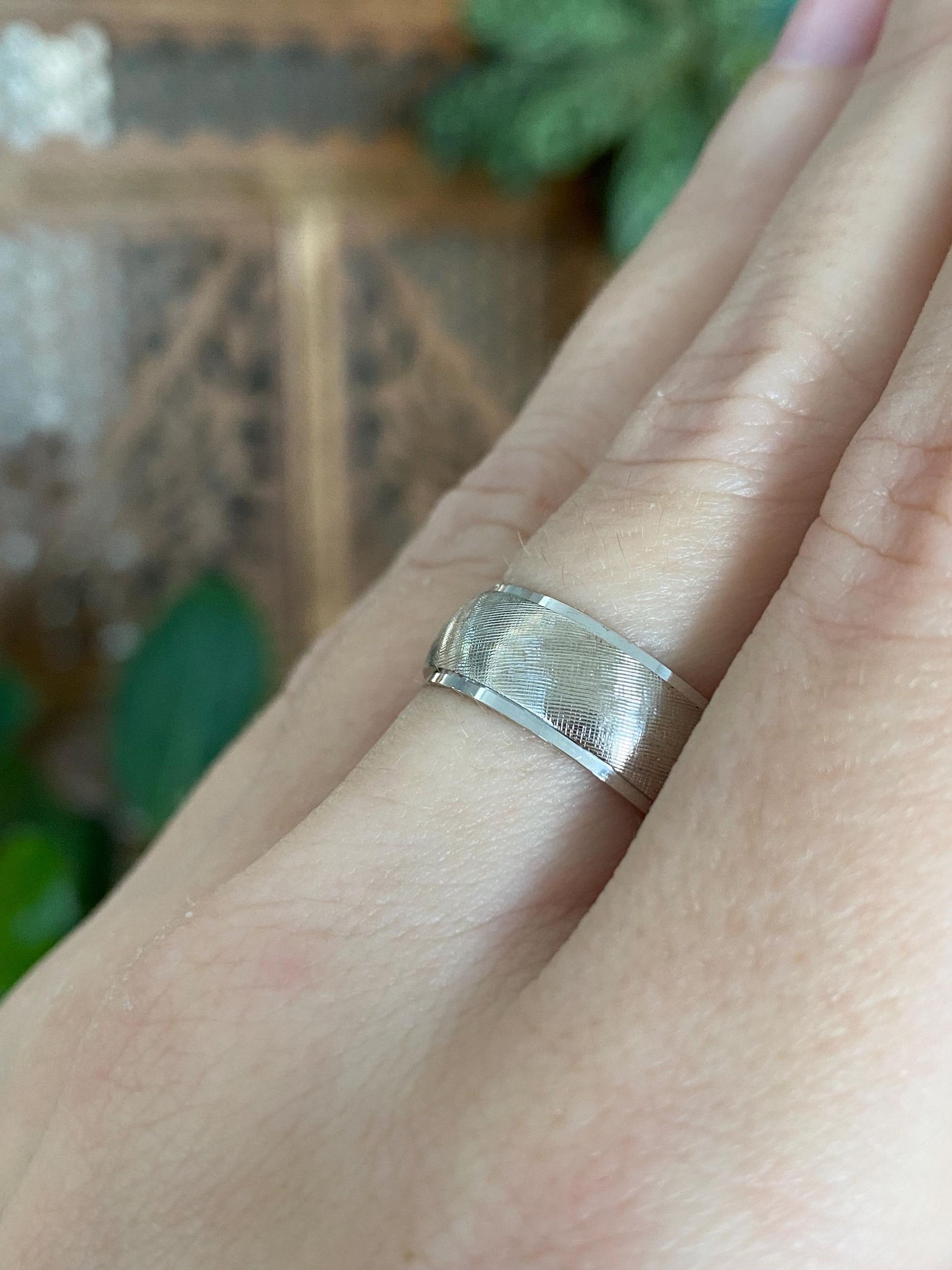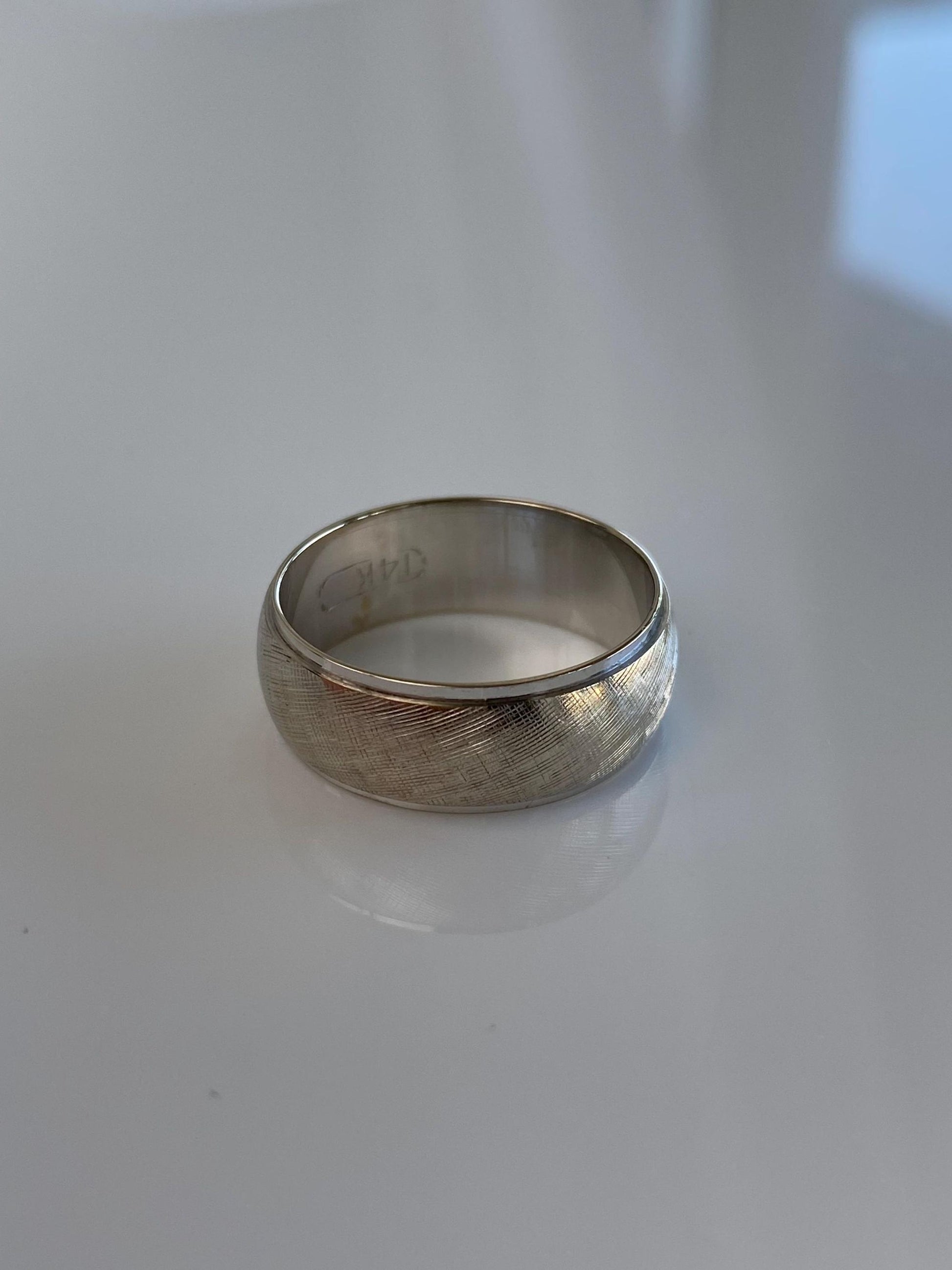 Vintage Solid 14k White Gold Crosshatch Ring Band - Size 7.25