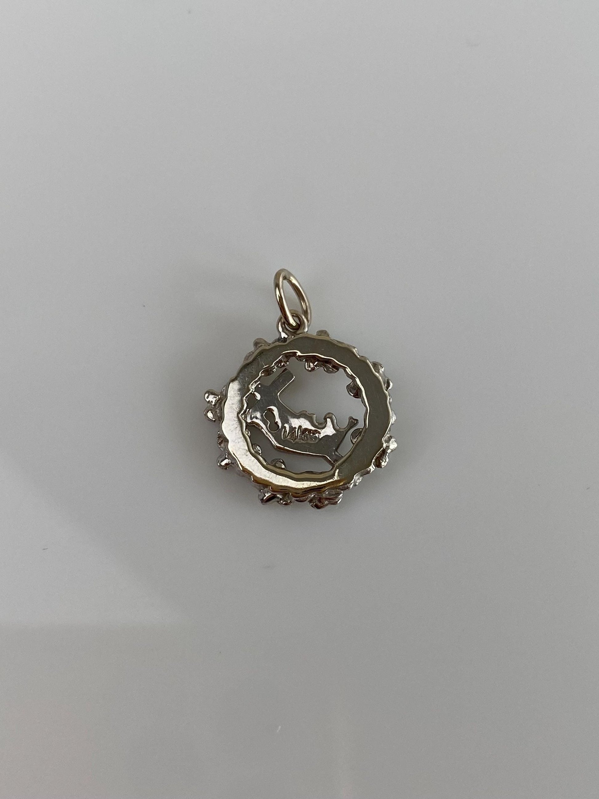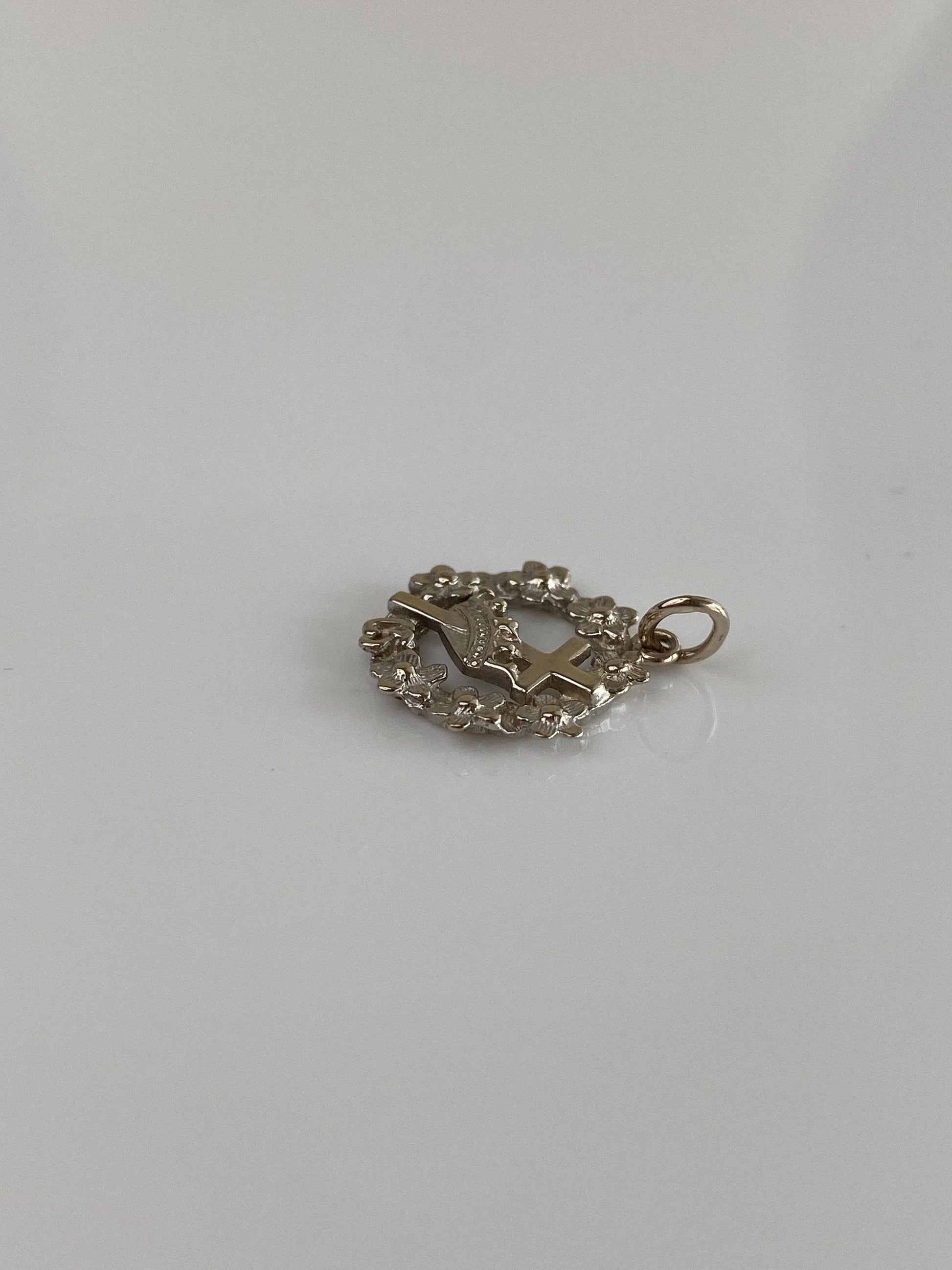Vintage Solid 14k White Gold Crown Cross Flower Wreath Charm