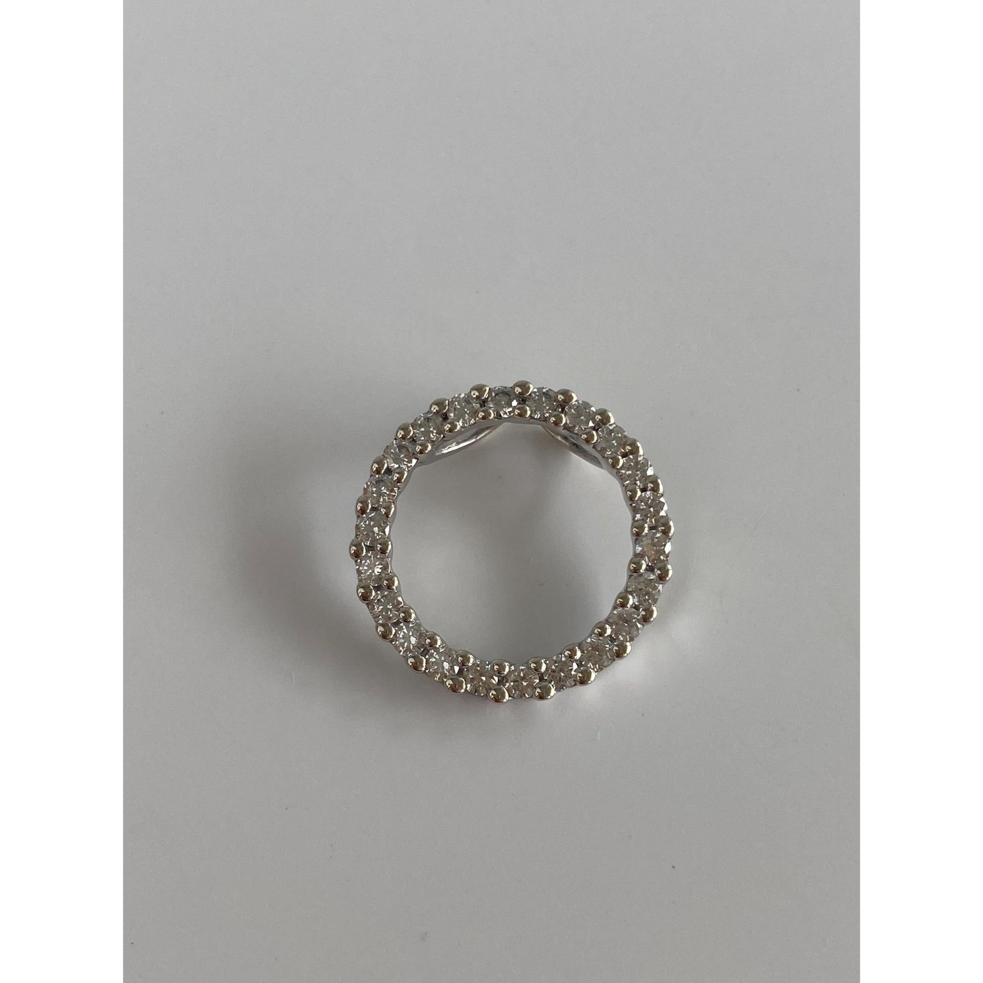 Vintage Solid 14k White Gold Cubic Zirconia Circle Slide Charm
