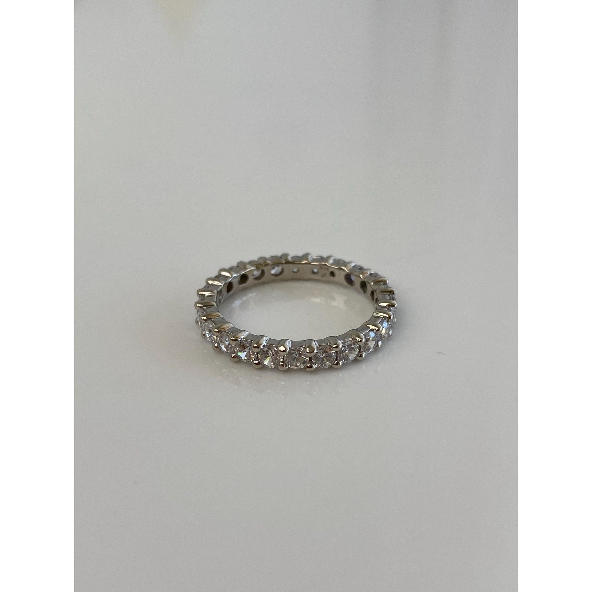 Vintage Solid 14k White Gold Cubic Zirconia Eternity Ring Band - Size 6.75