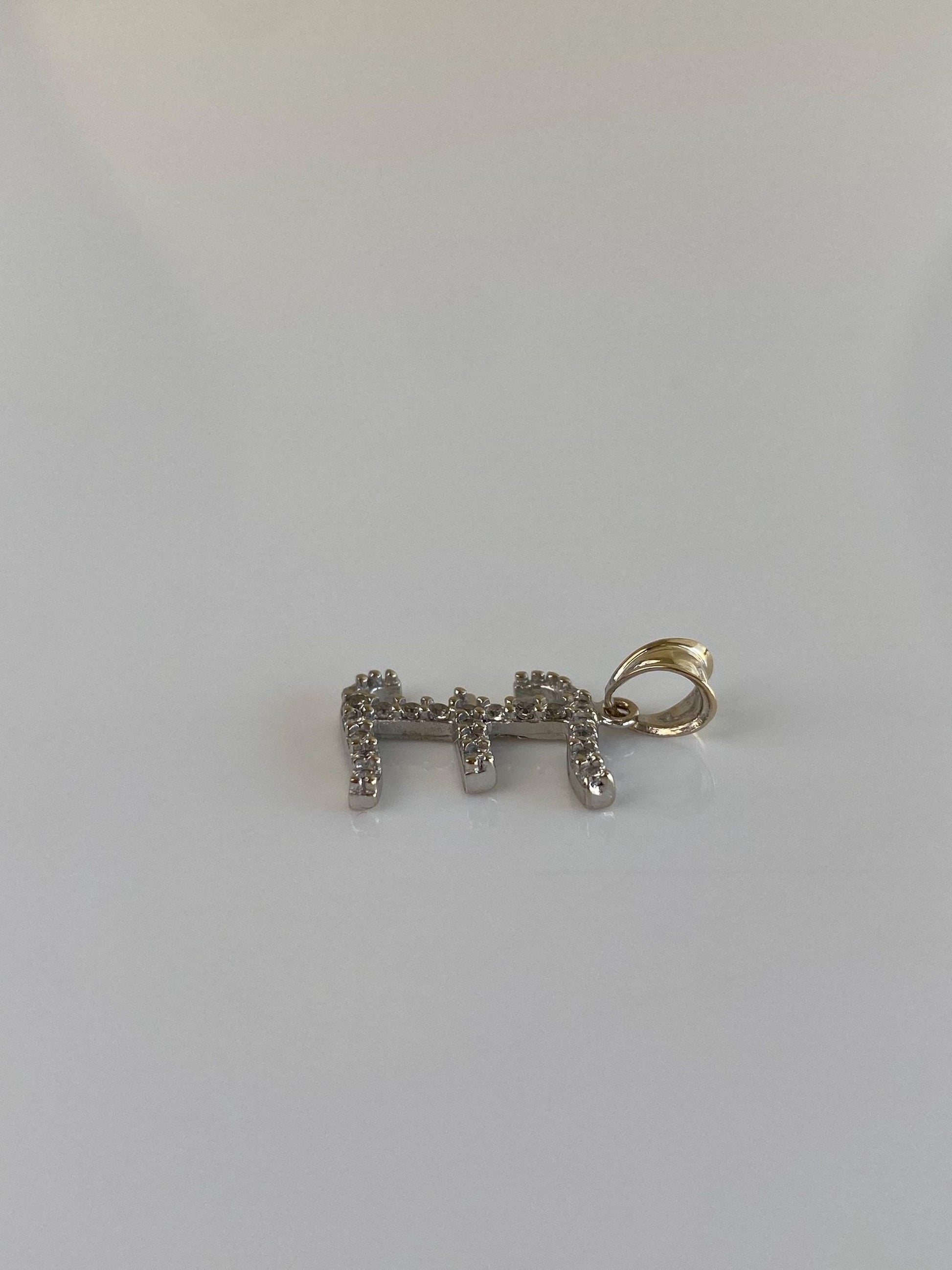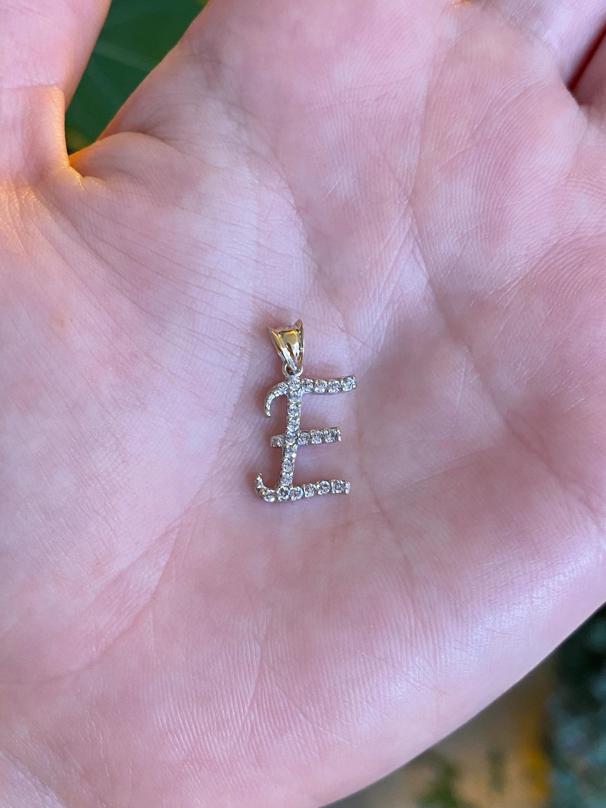 Vintage Solid 14k White Gold Cubic Zirconia Initial 'E' Charm