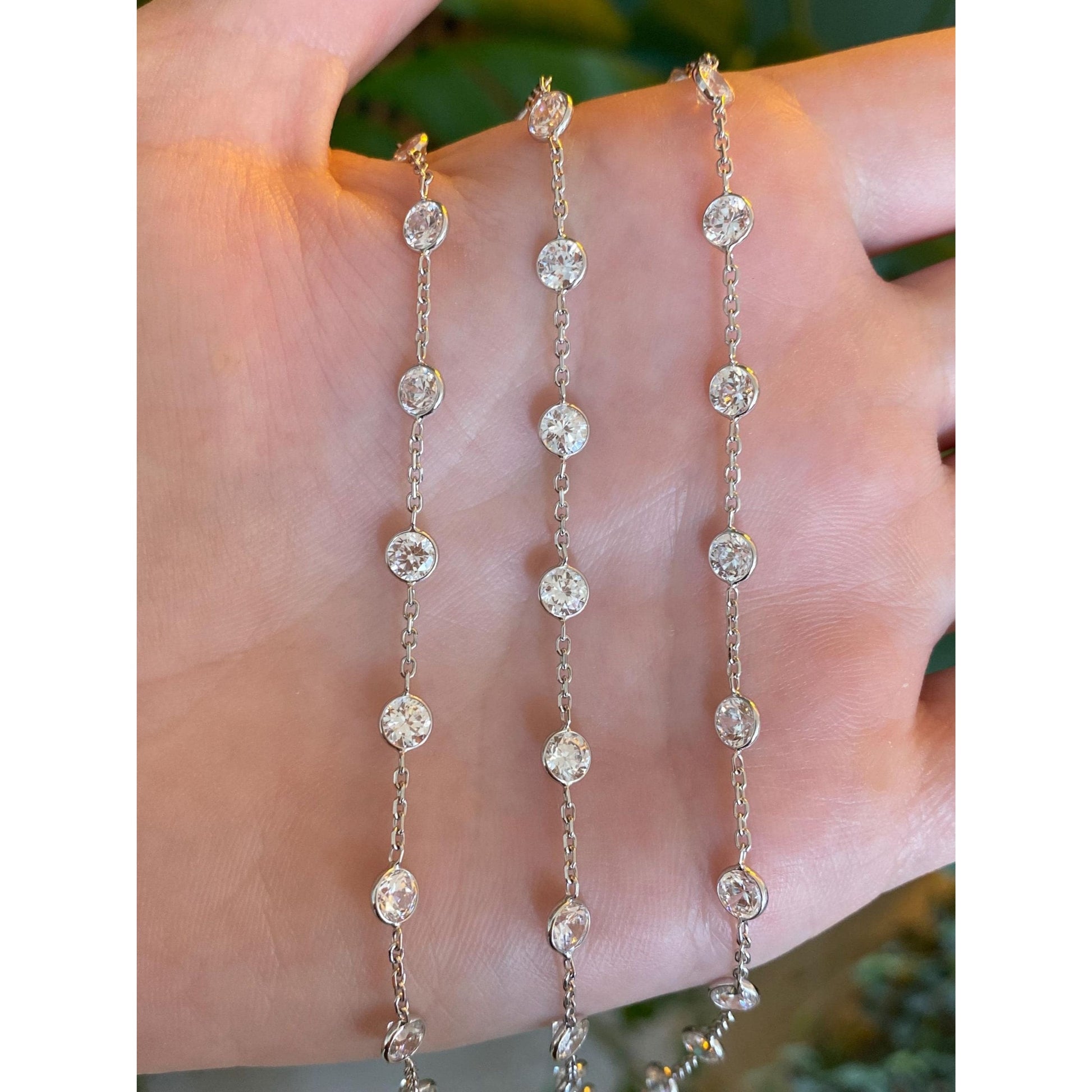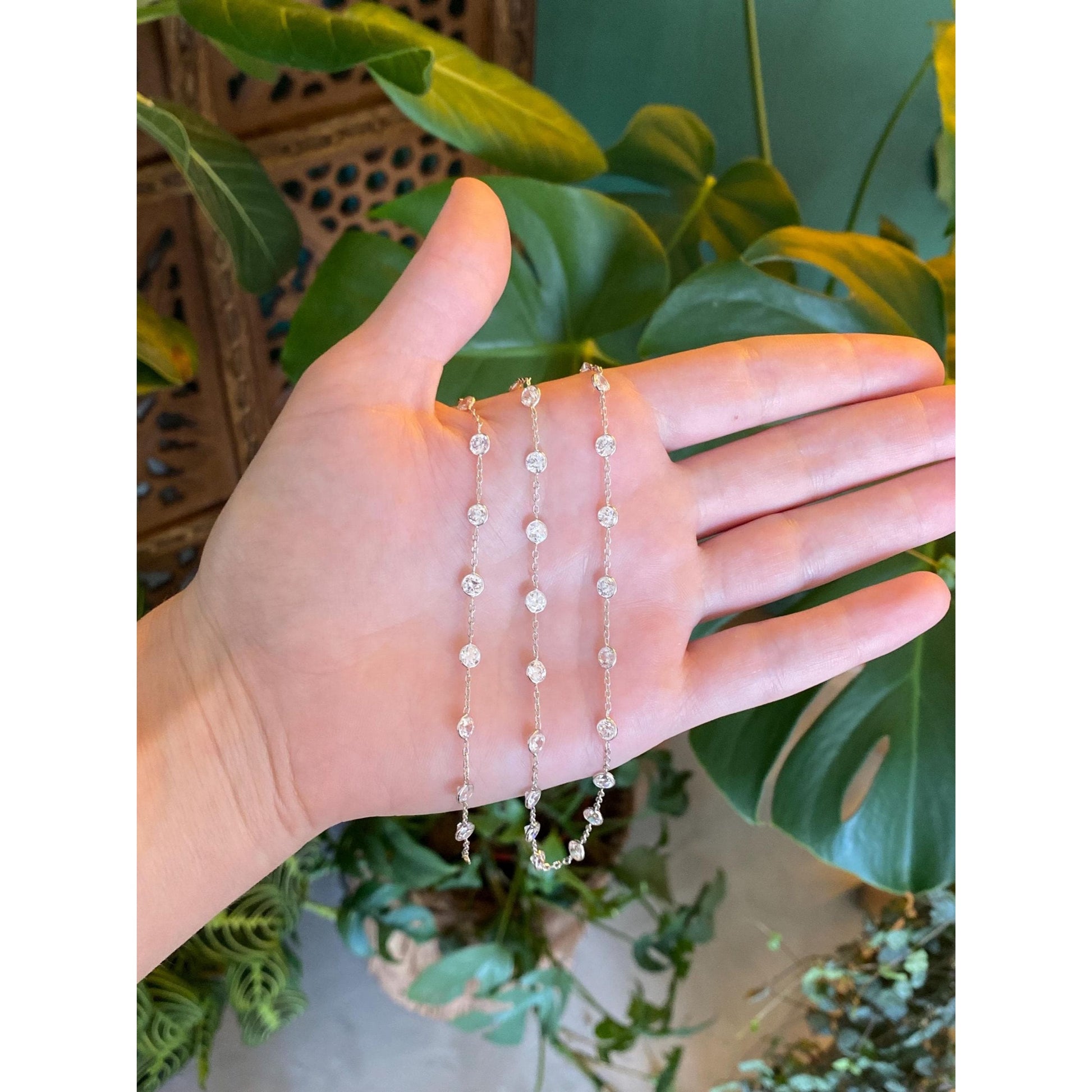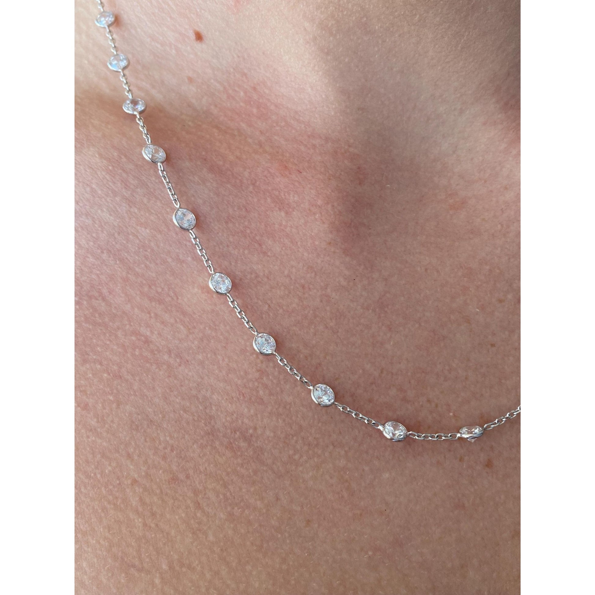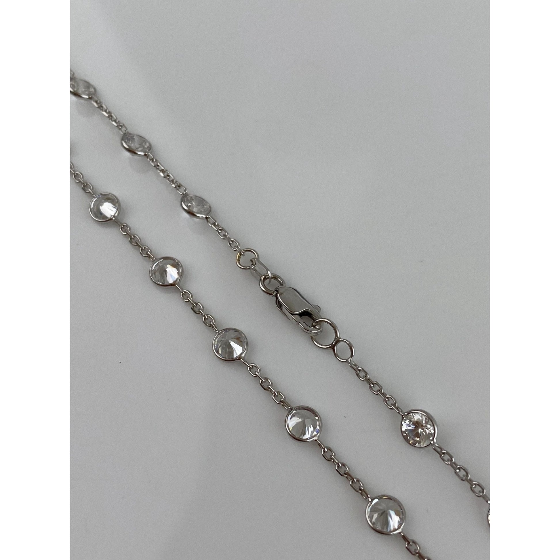 Vintage Solid 14k White Gold Cubic Zirconia Link Cable Chain Necklace - 18.25 inches