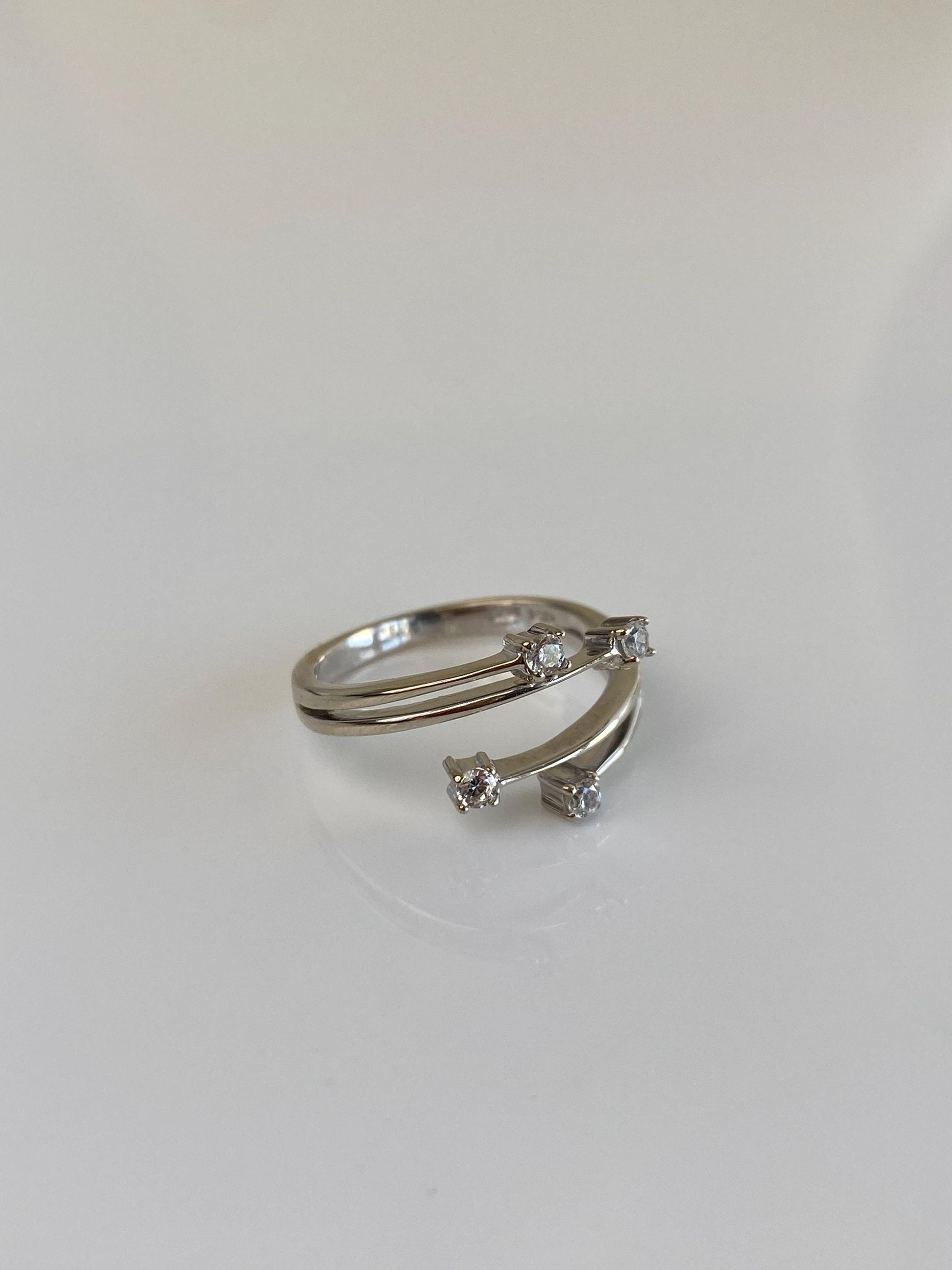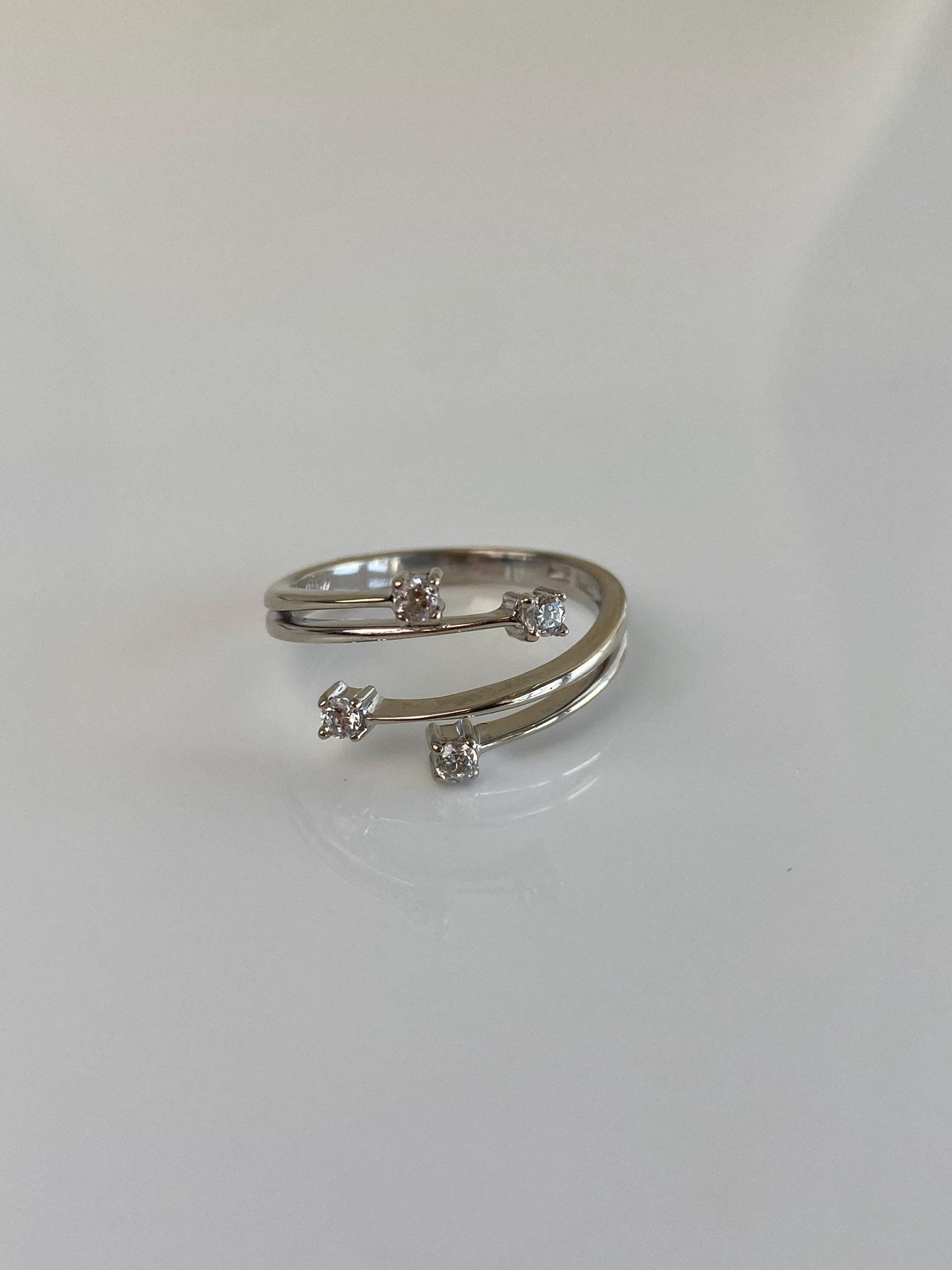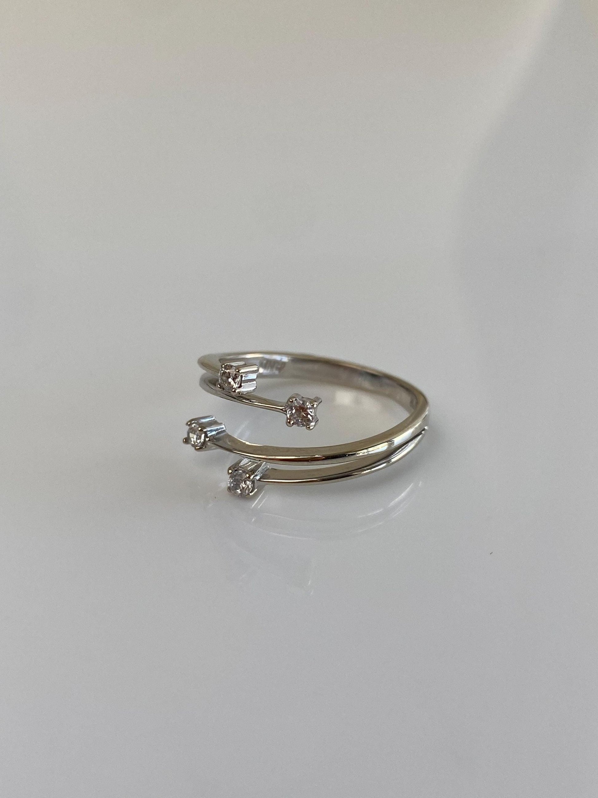 Vintage Solid 14k White Gold Cubic Zirconia Open Ring - Size 6