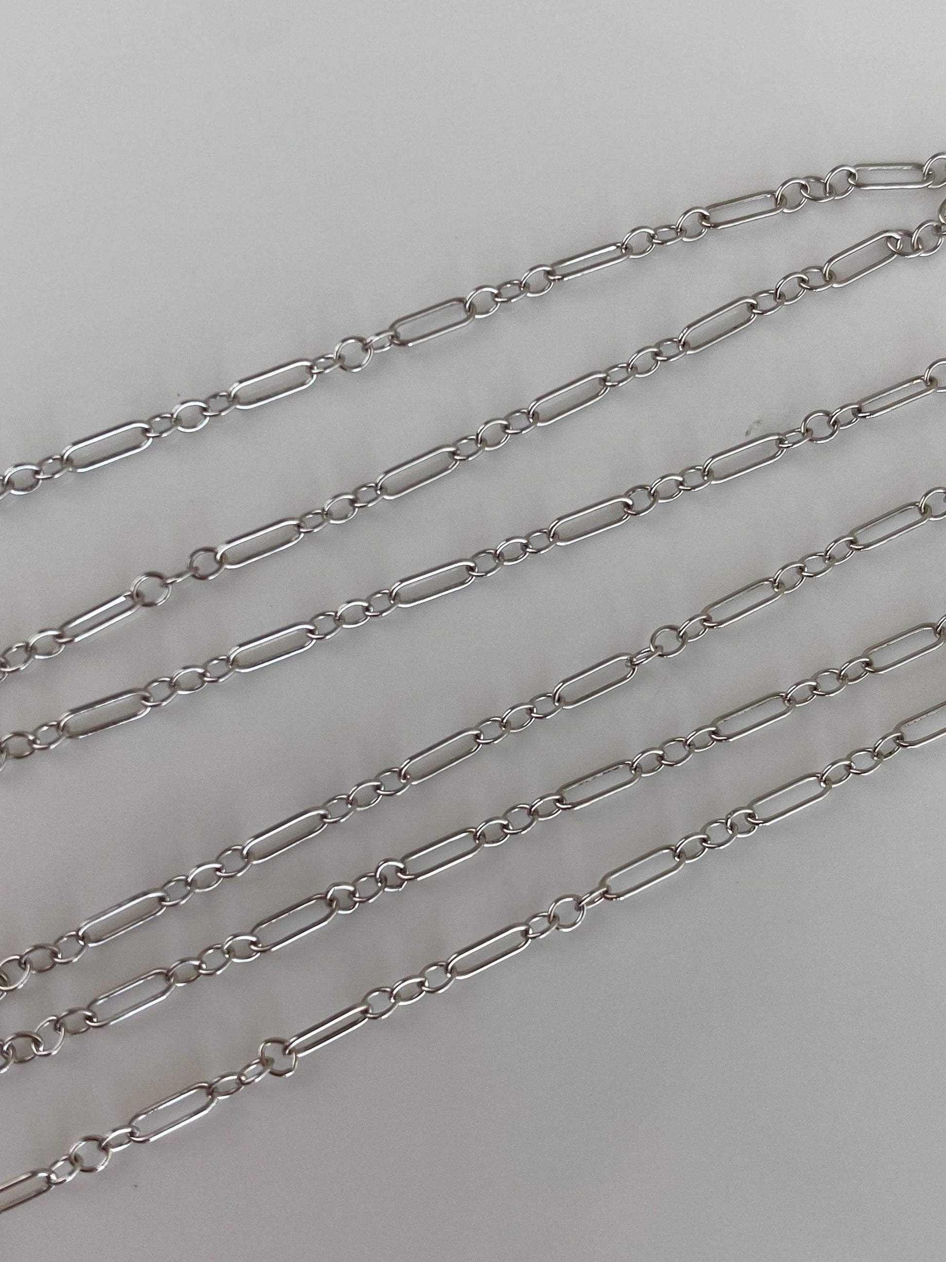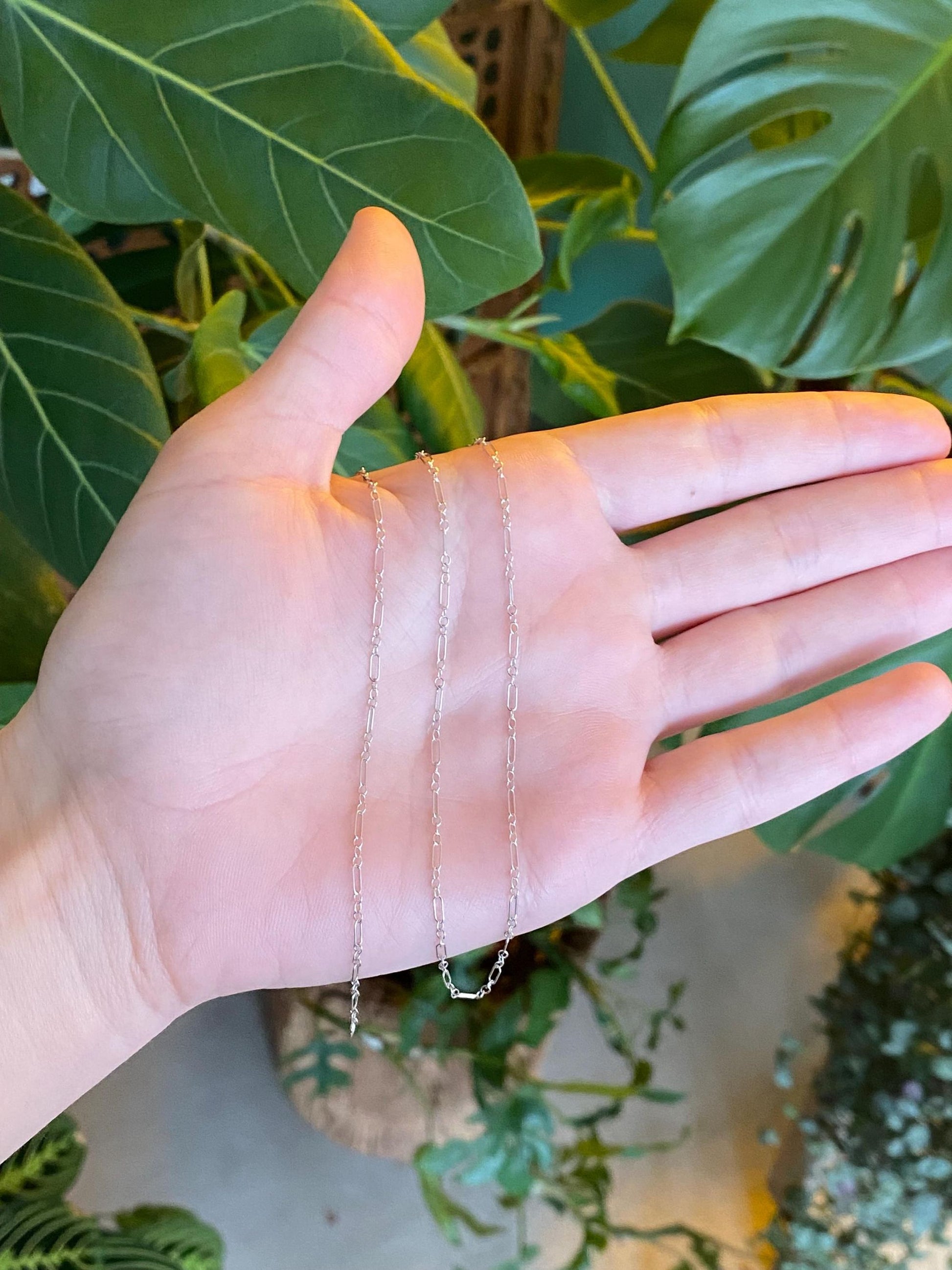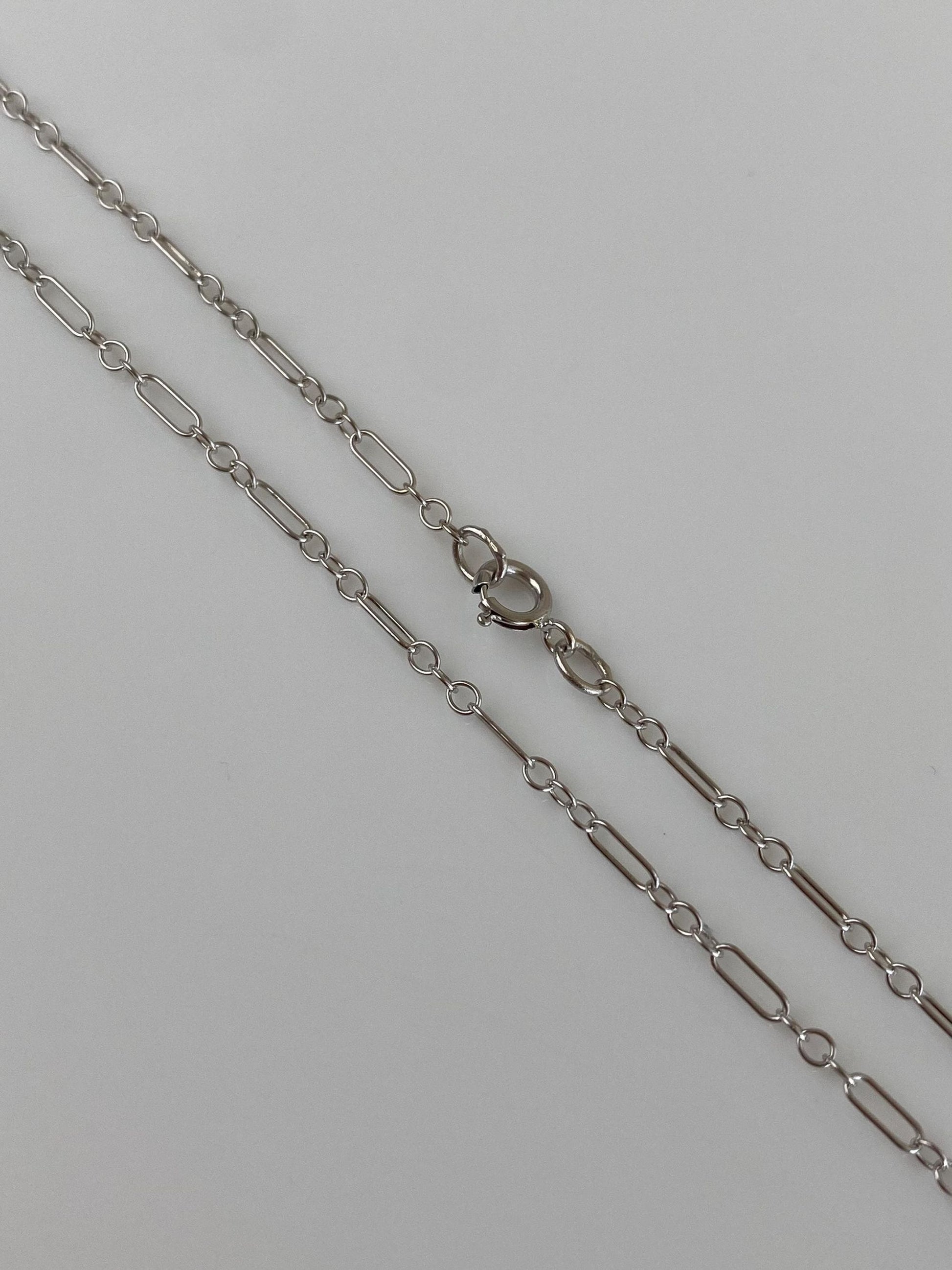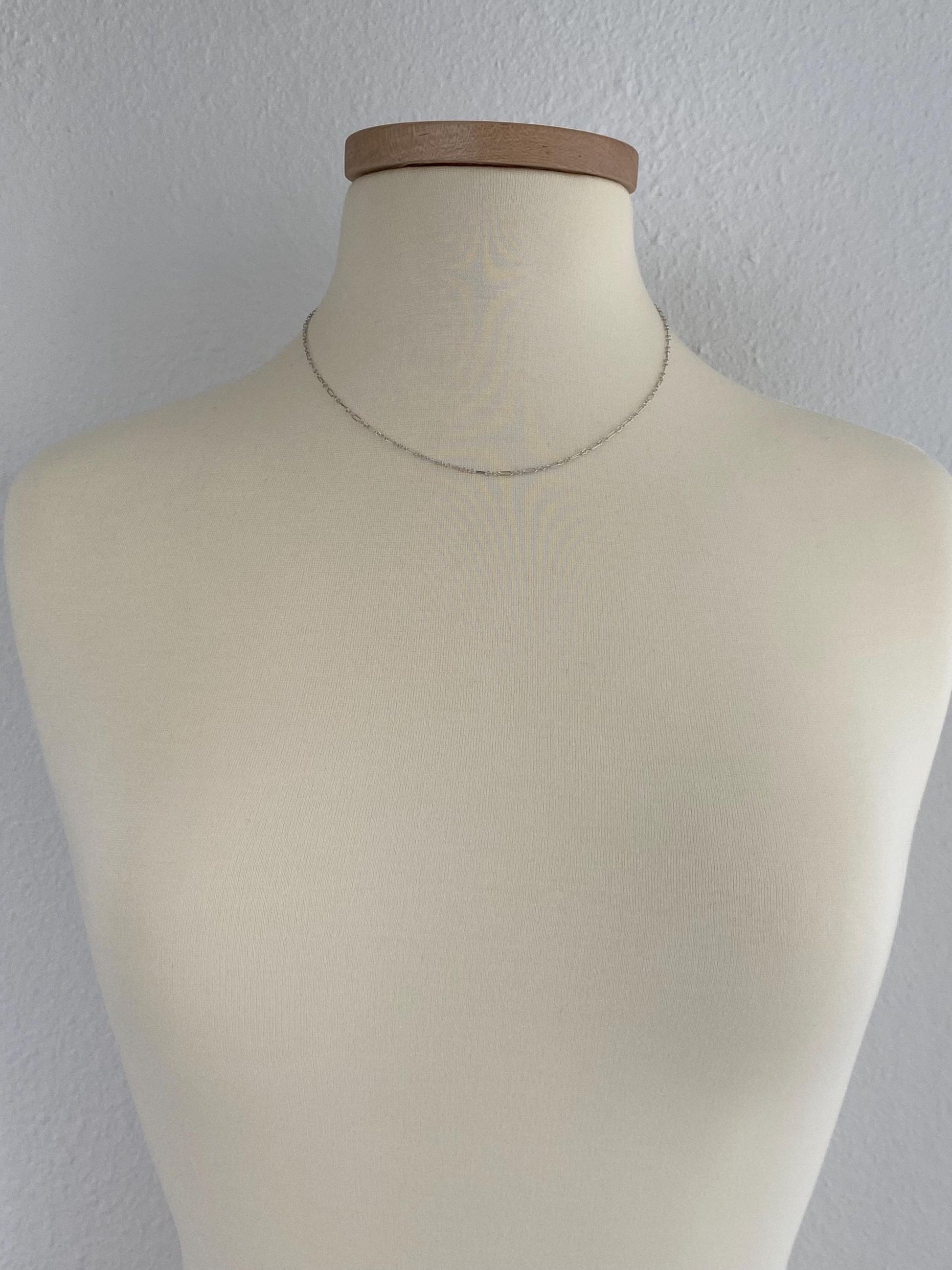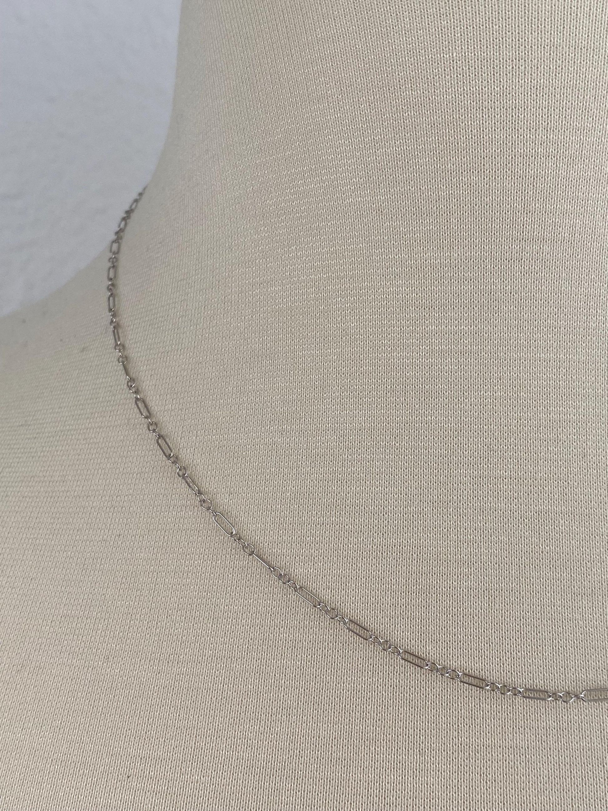 Vintage Solid 14k White Gold Dainty Albert Trombone Chain Necklace - 18.25 inches