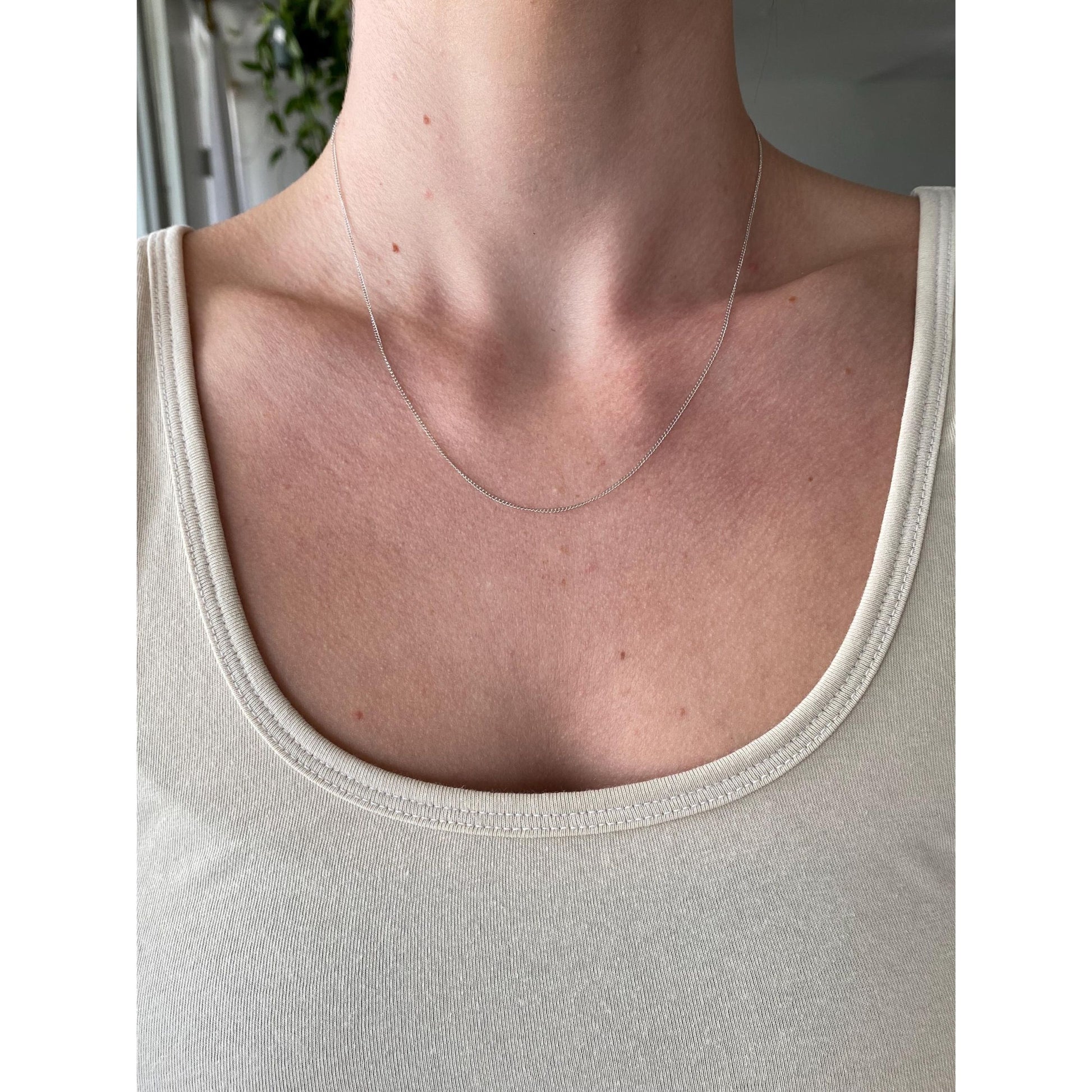 Vintage Solid 14k White Gold Dainty Curb Chain Necklace - 18 inches