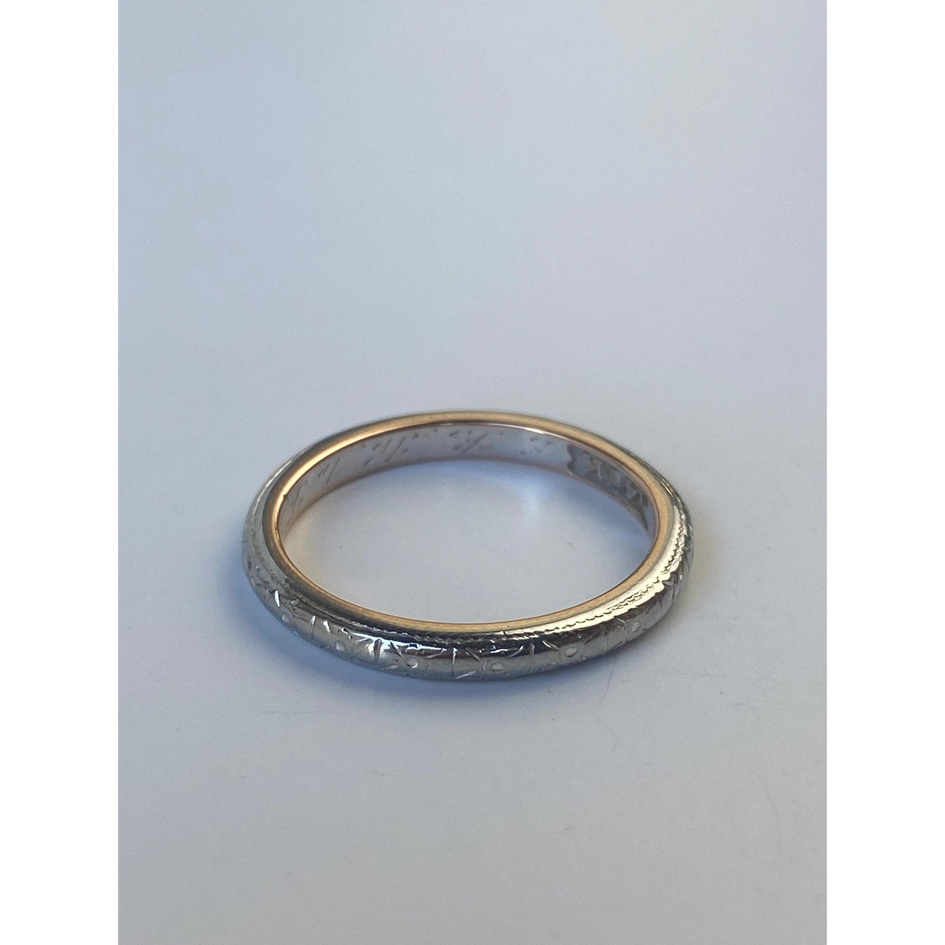 Vintage Solid 14k White Gold Designed Miligrain Ring Band - Size 7