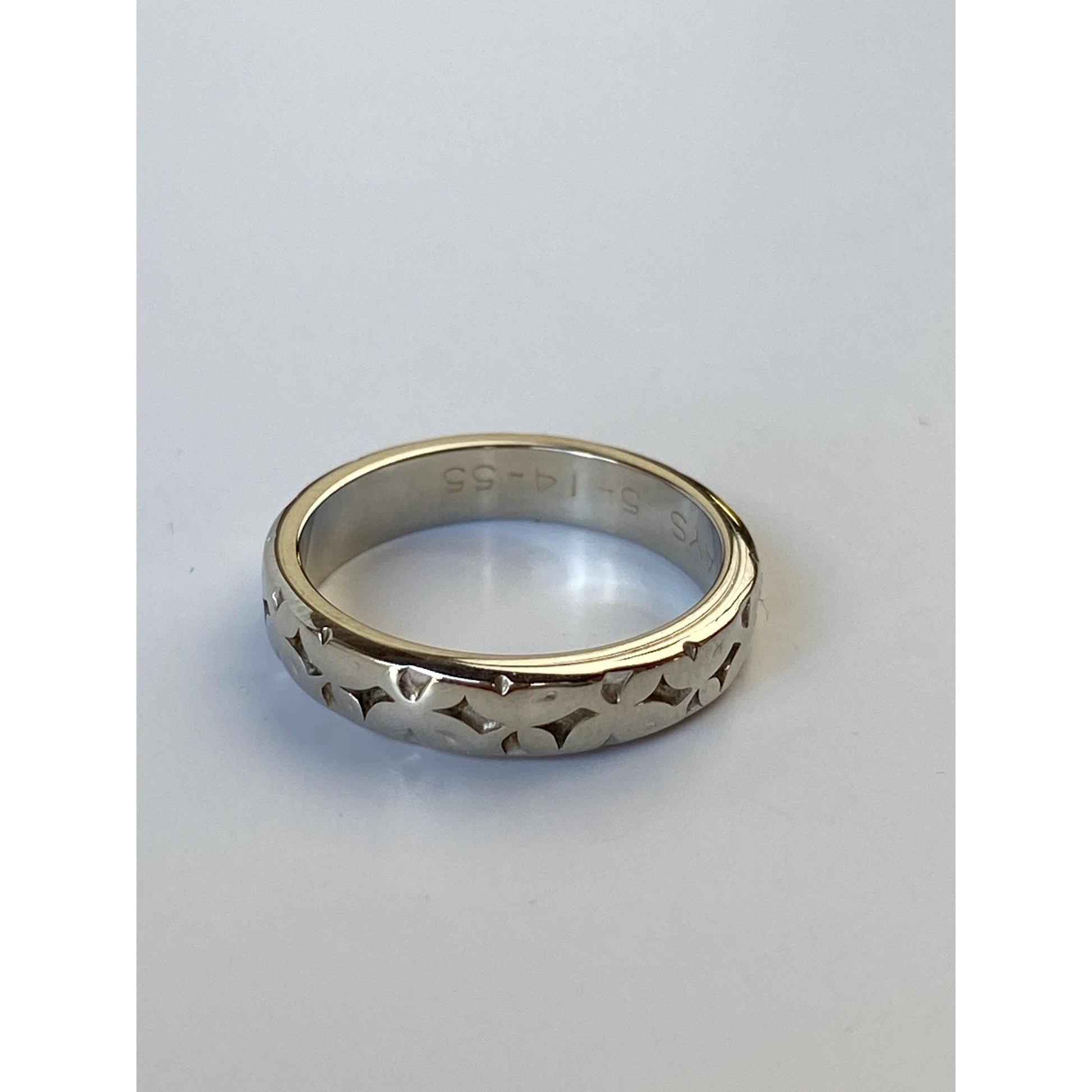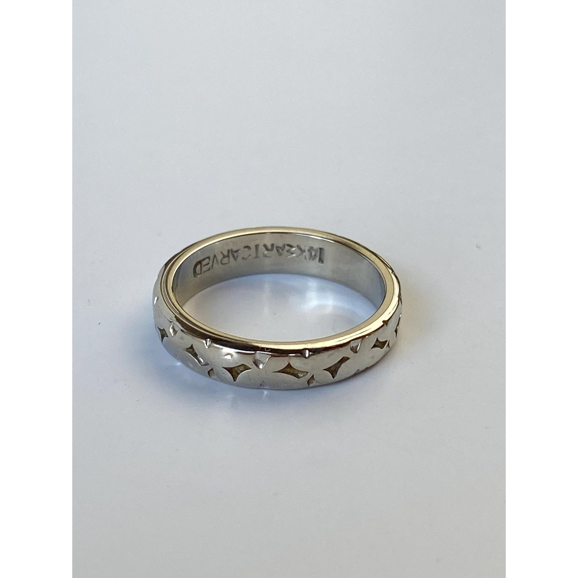Vintage Solid 14k White Gold Designed Ring Band - Size 3.75