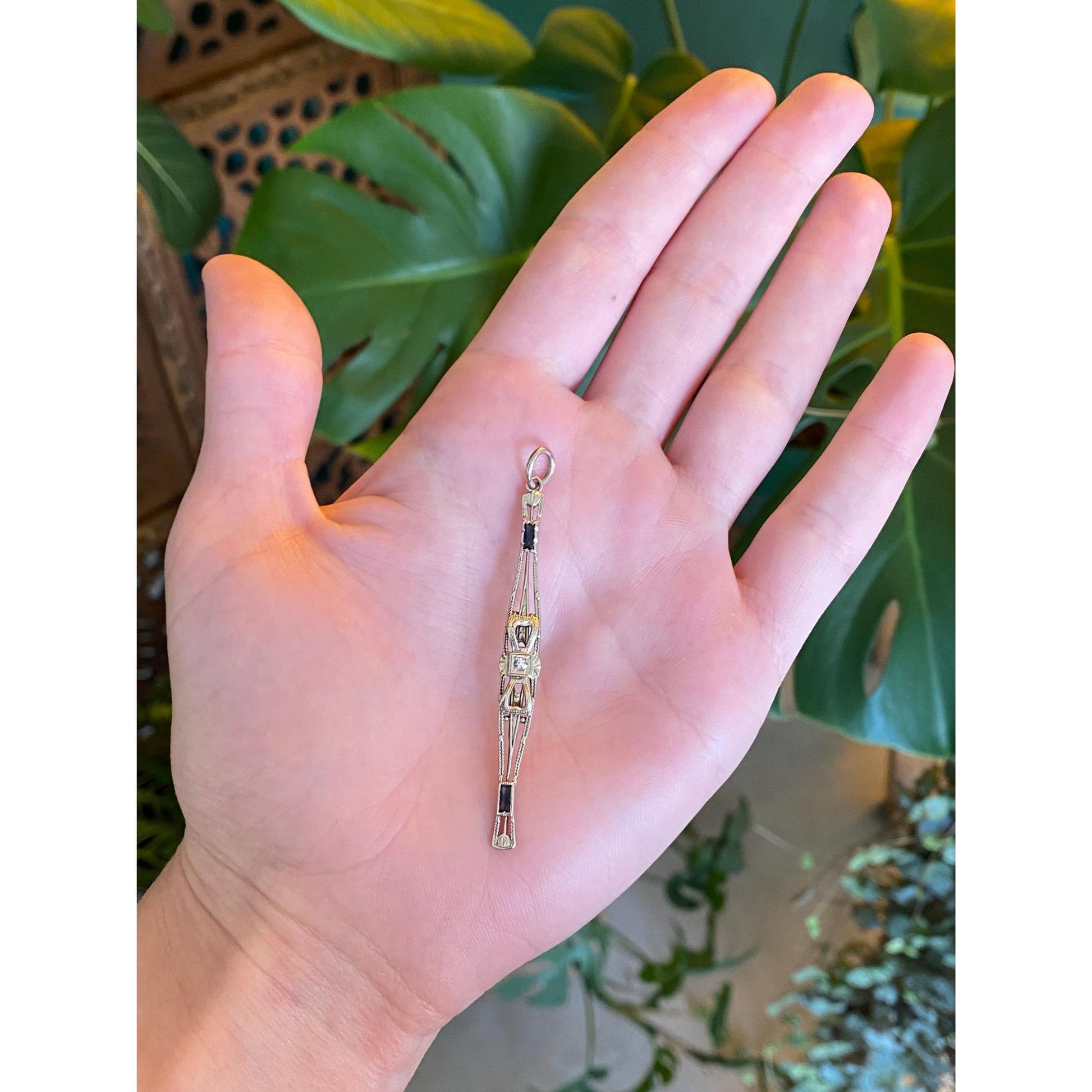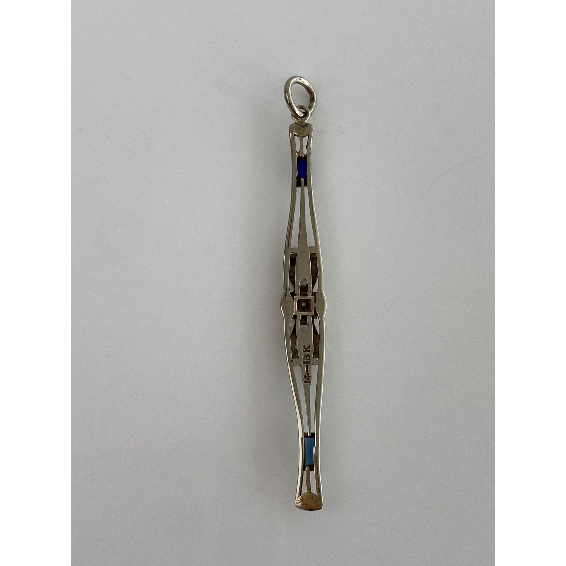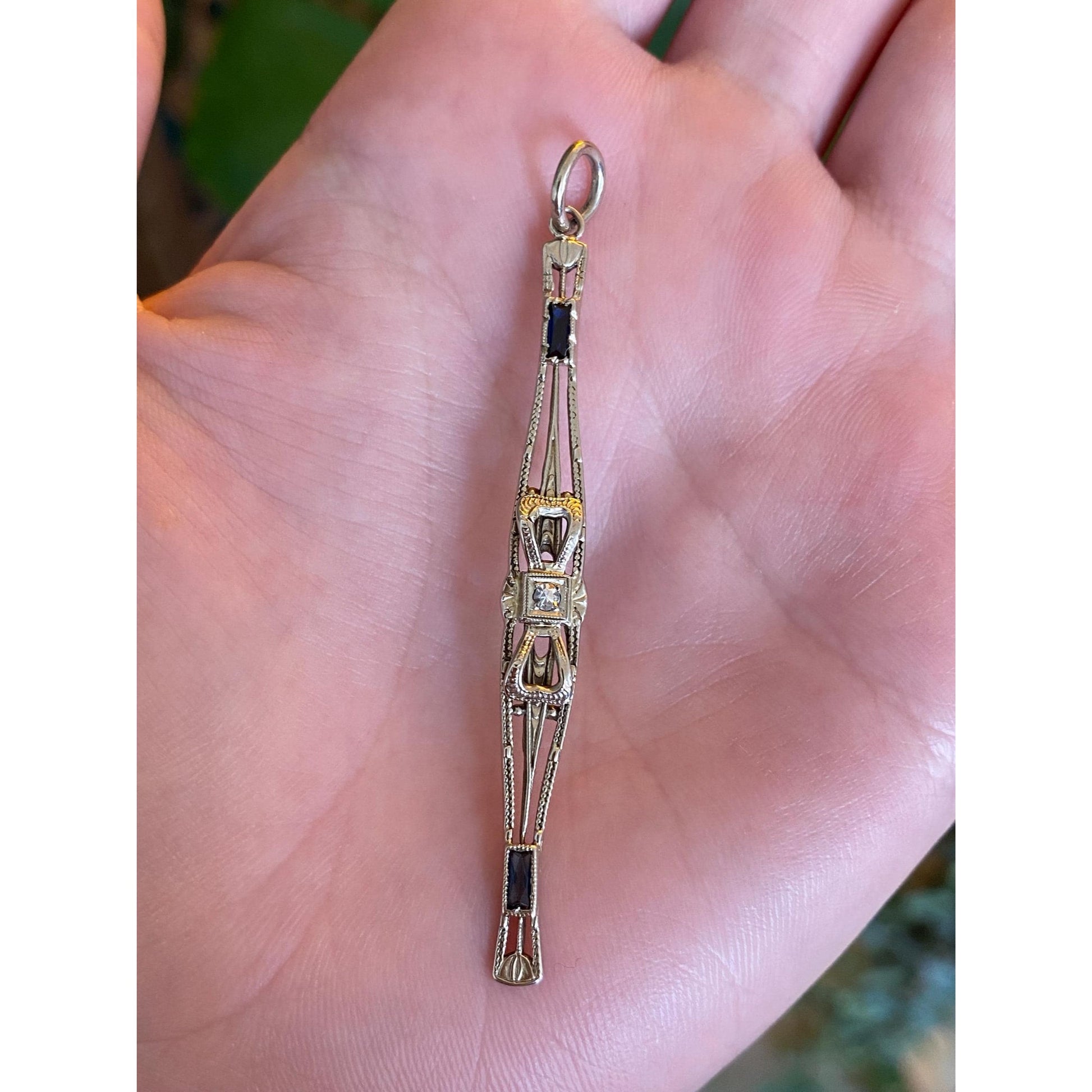 Vintage Solid 14k White Gold Diamond Blue Sapphire Art Deco Bar Pin Conversion Charm