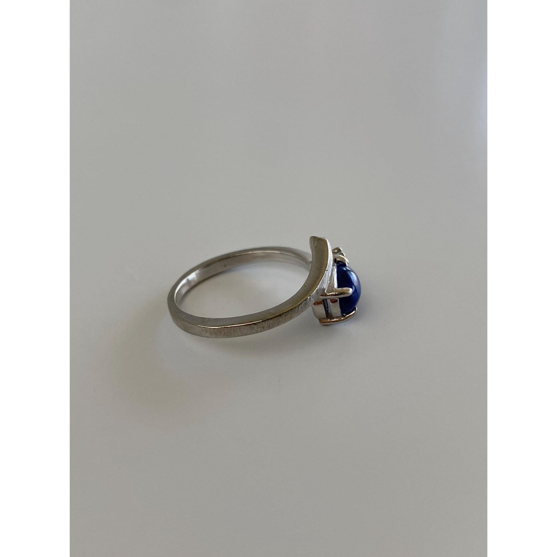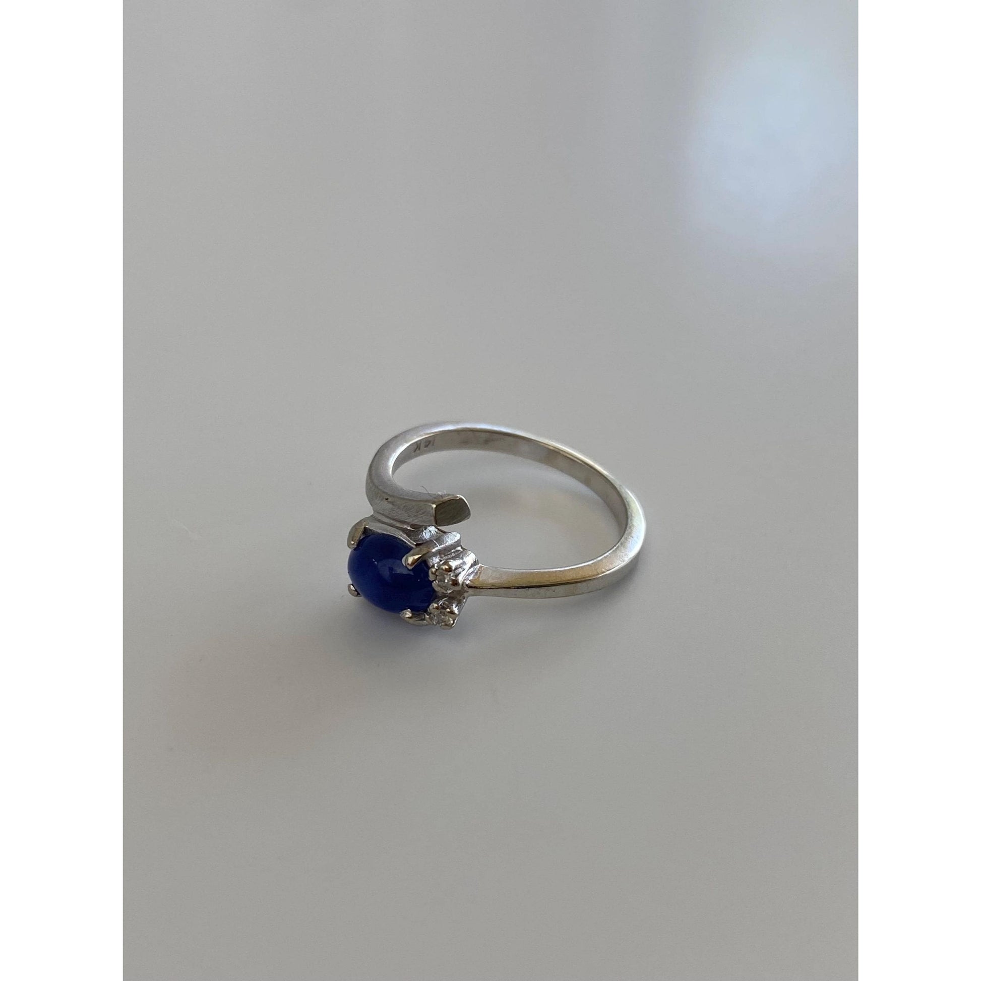 Vintage Solid 14k White Gold Diamond Blue Star Sapphire Ring - Size 5.5
